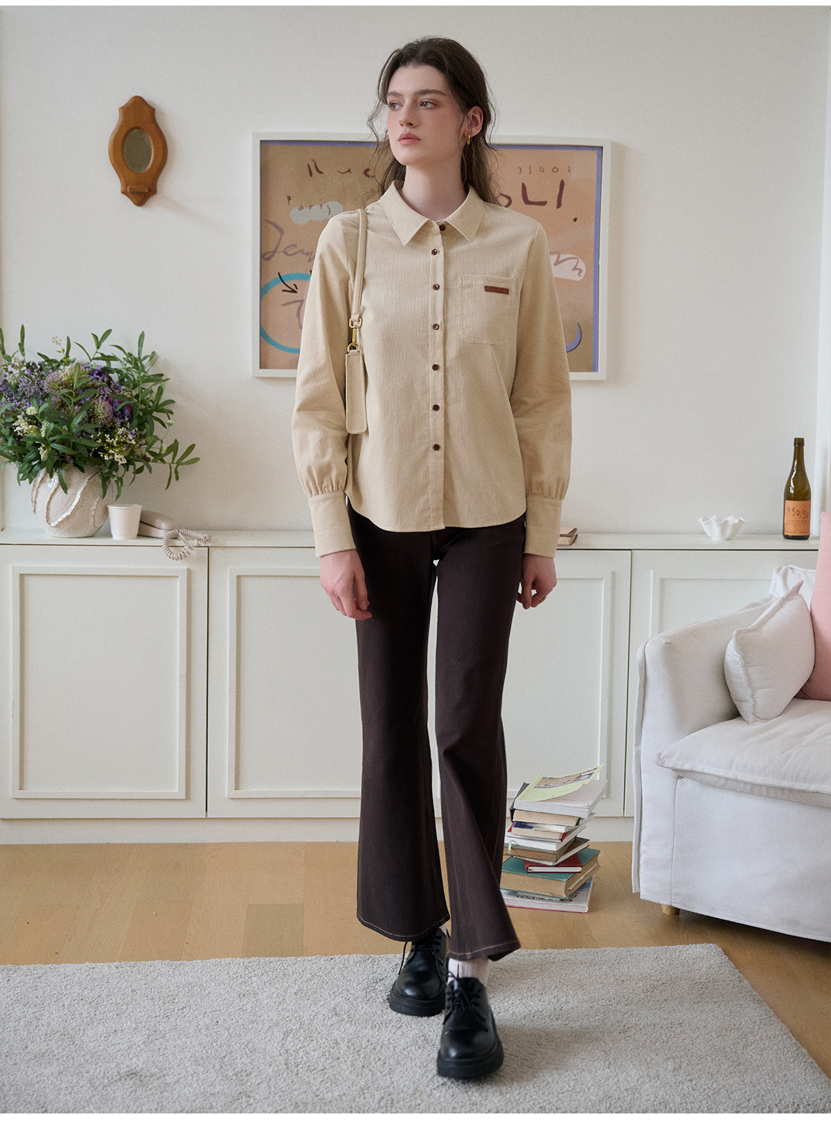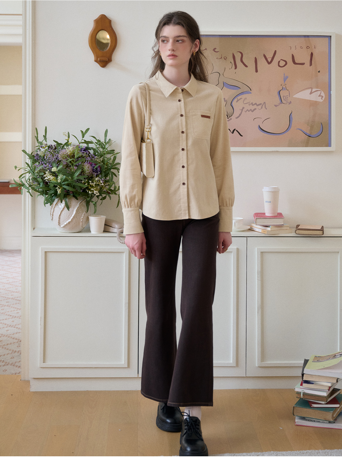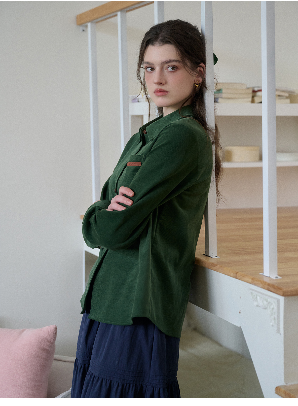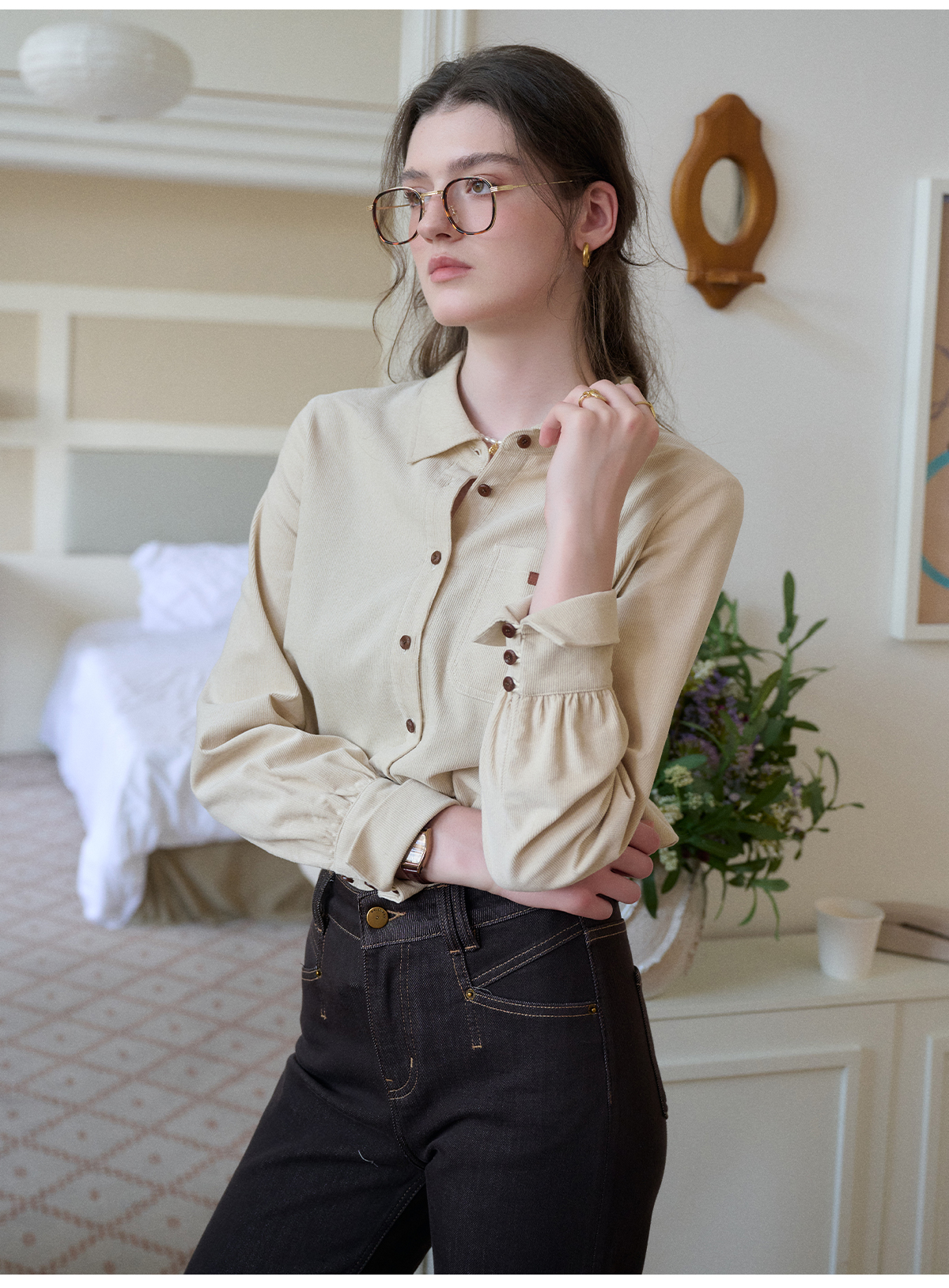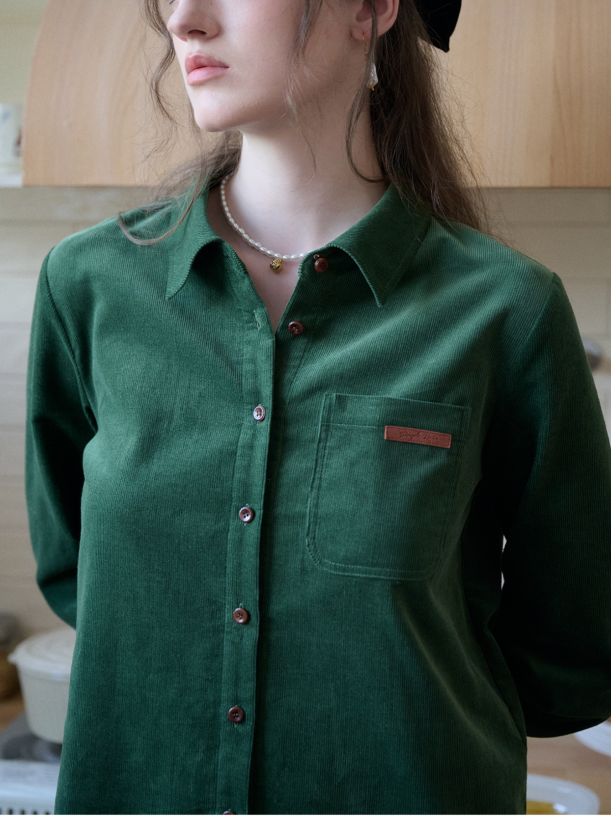 SimpleRetro法式复古百搭灯芯绒衬衫女上衣