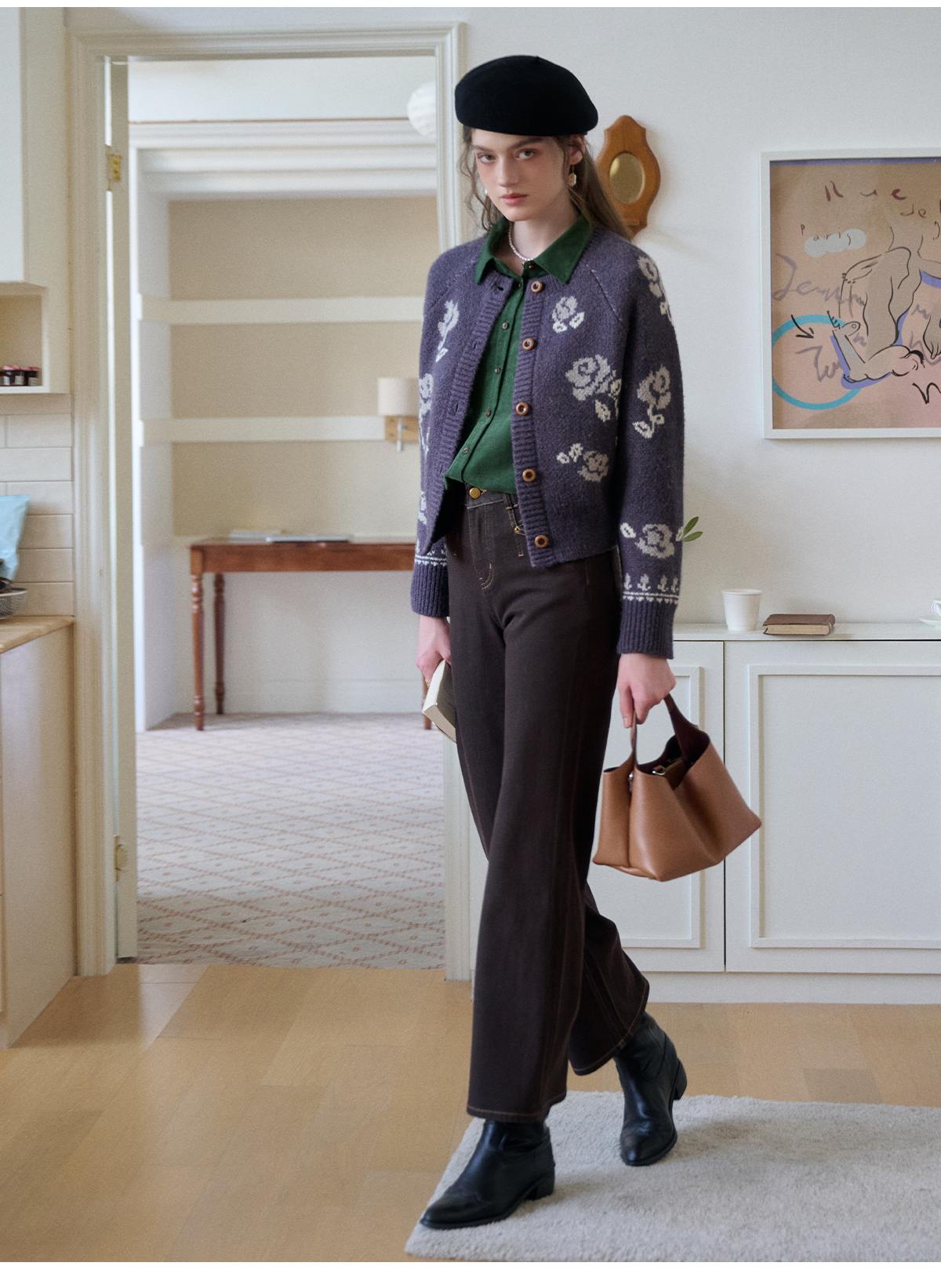 SimpleRetro法式复古高腰灯芯绒阔腿裤女