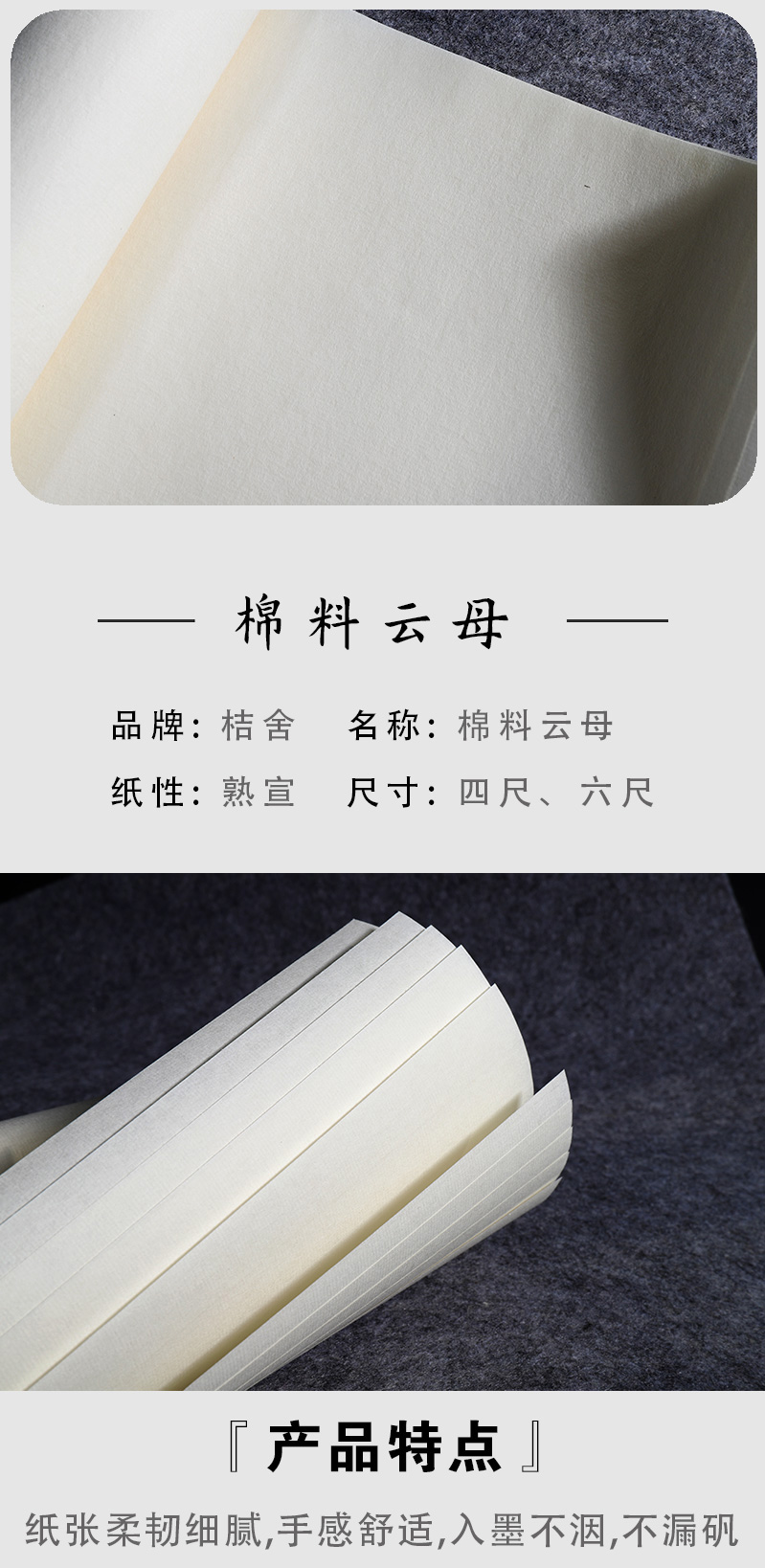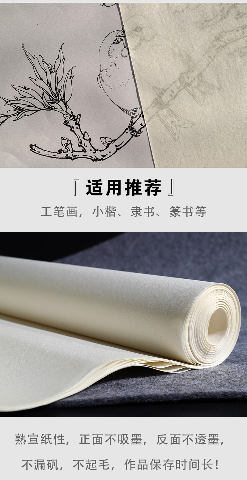 手工熟宣纸桔舍棉料云母书法专用纸国画作品纸毛笔练习书法练字纸四尺整张三开对开六尺云母矾宣工笔画初学者
