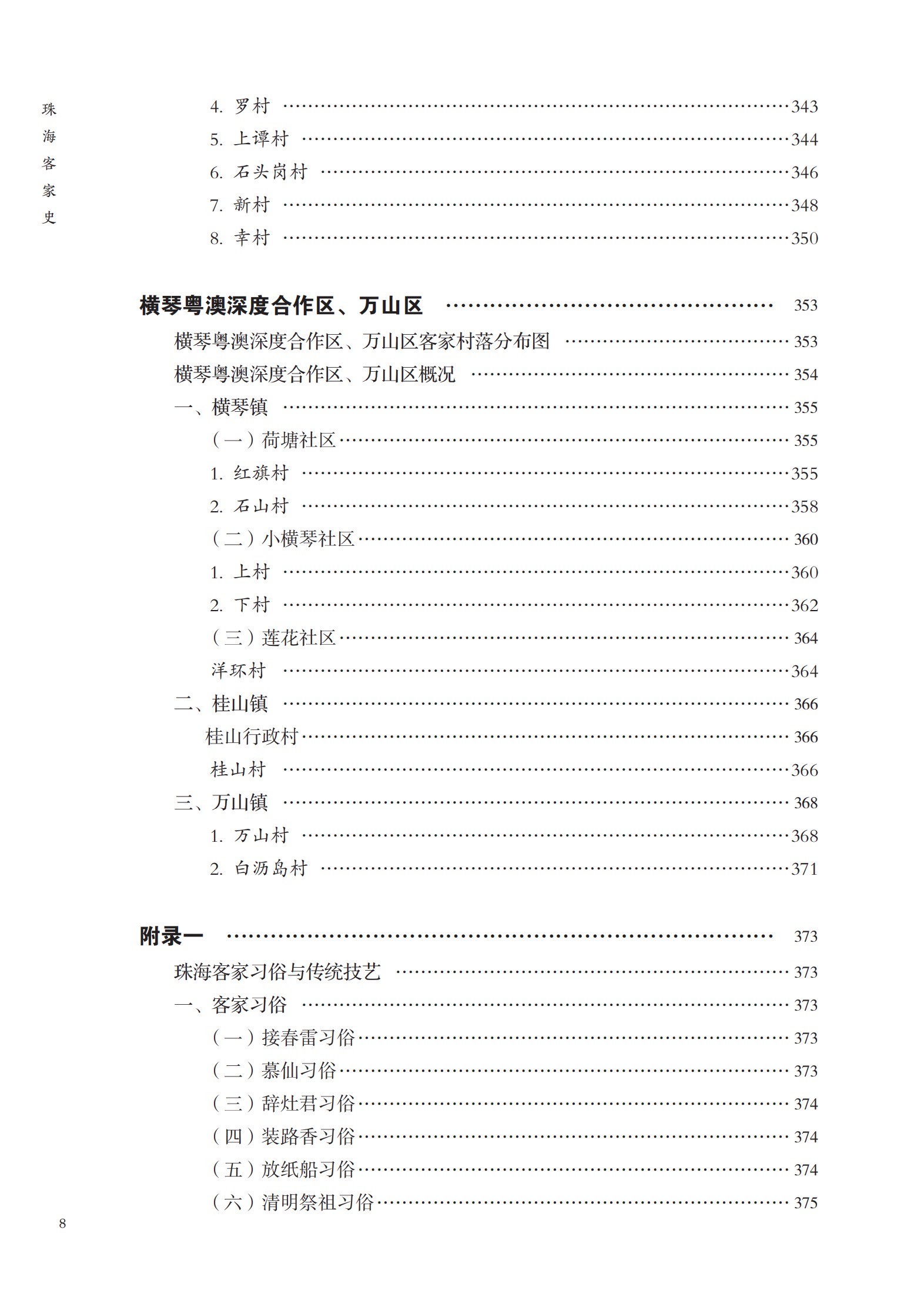 客家既是一个汉族民系的称谓,更是文化层面的概念,客家文化有古汉文化活化石之誉。一代代客家人在万里迁徙中孕育、扎根、绵延、播迁着客家文化,可以说客家人走到哪里便将客家文化播迁到哪里。珠海是一个新移民城市,随着城市建设的发展,珠海市原住民中存有的117个客家村落逐渐被城市化,为了留住城市的多元文化和记忆,珠海市客家文化研究会从2022年起通过走访、调查、访谈、查阅地方志等方式,用方志的写法记录珠海市现存117个客家村落的历史沿革、人文风俗、教育经济等概况,具有一定社会学、经济学、人类学价值。