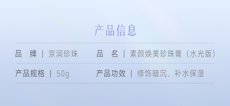 【超值2瓶装】京润珍珠 焕美珍珠膏素颜霜 一抹冷白皮 养肤美白 50g*2瓶(水光版)