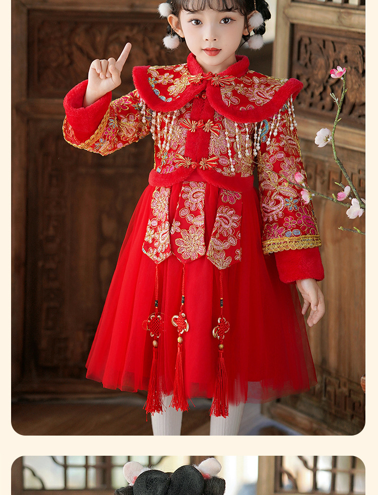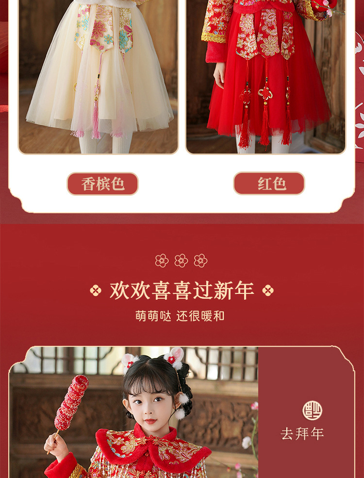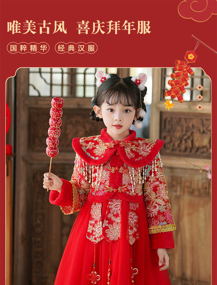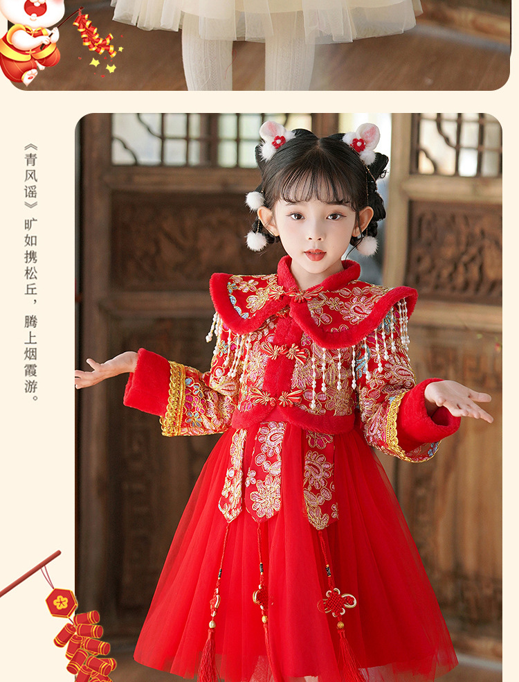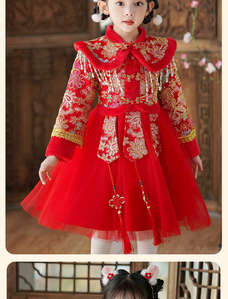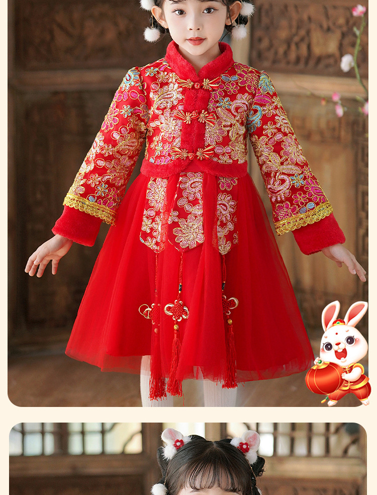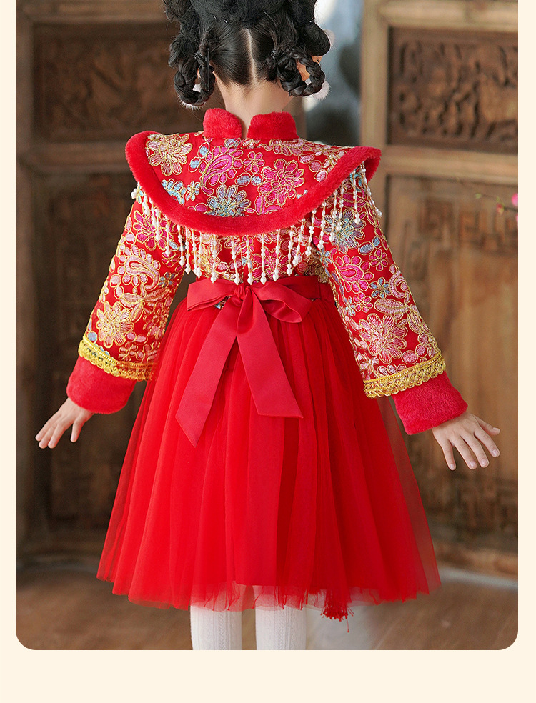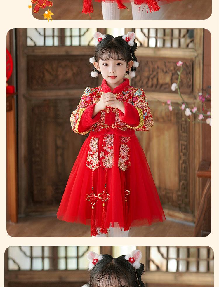 ST-HP366R女童唐装连衣裙2024新款冬季儿童加厚喜庆拜年服小女孩洋气公主裙