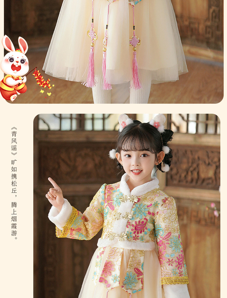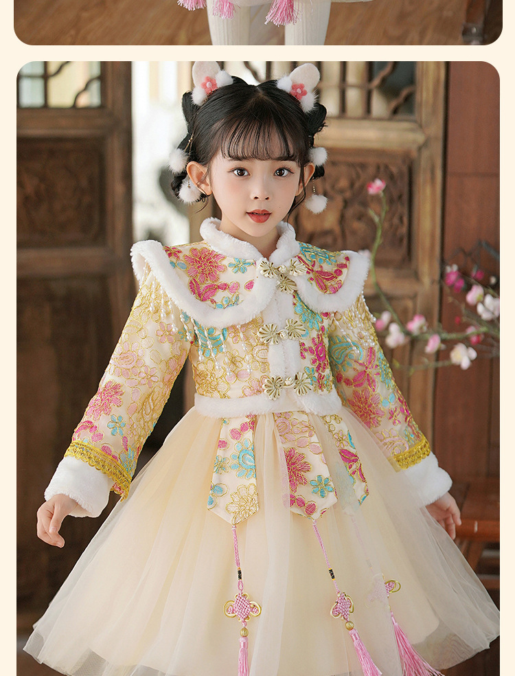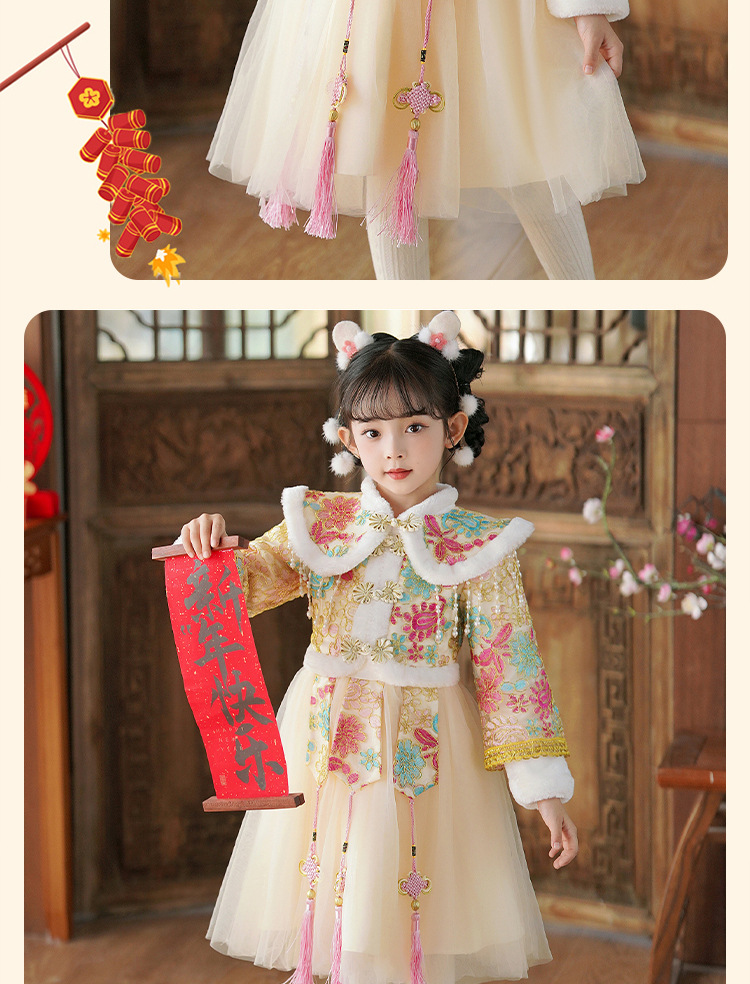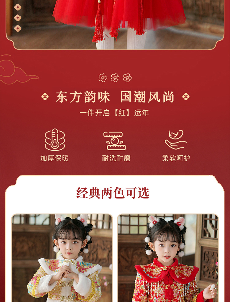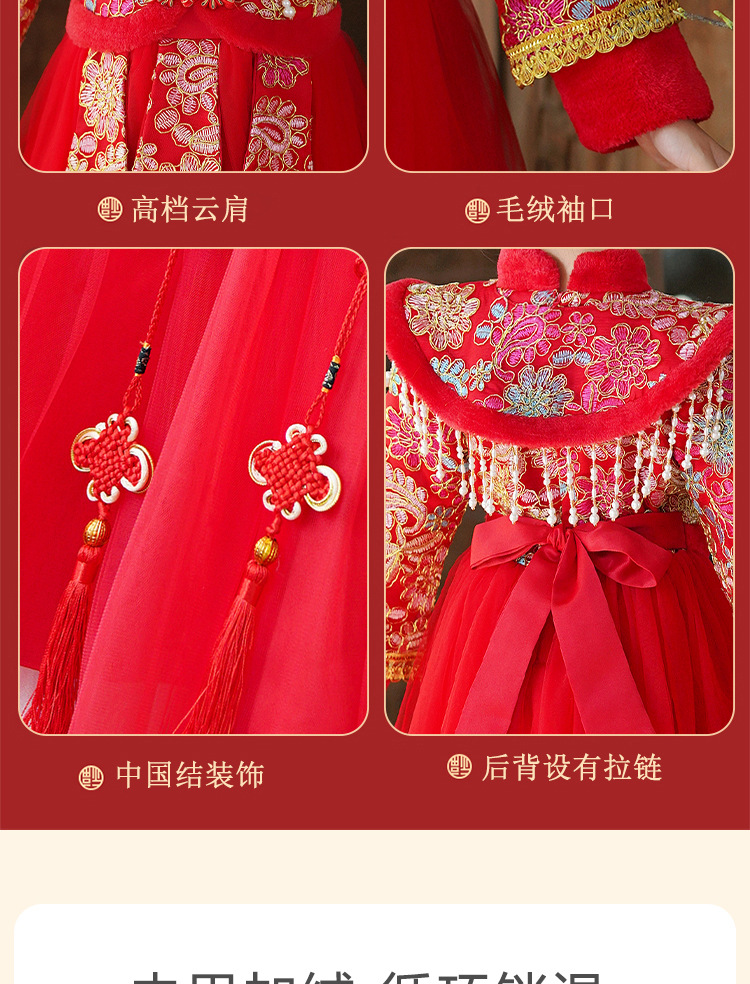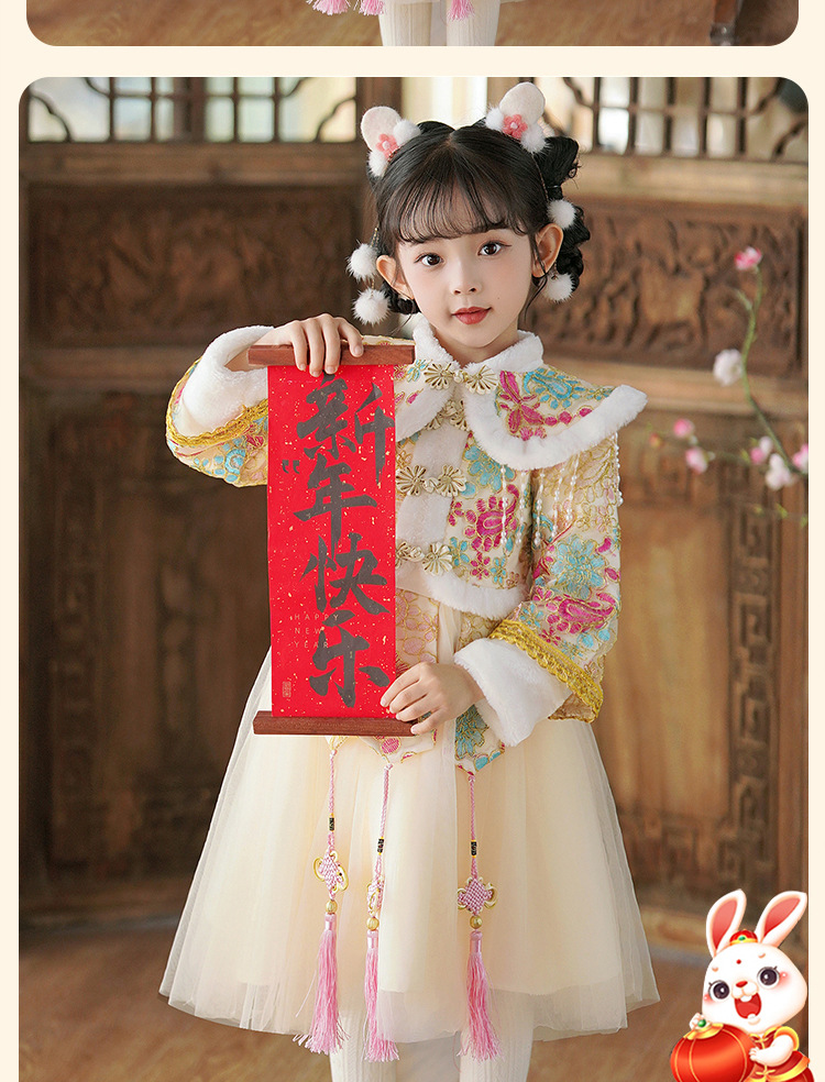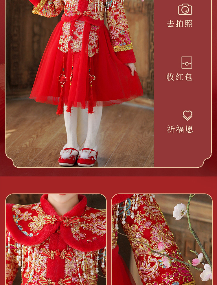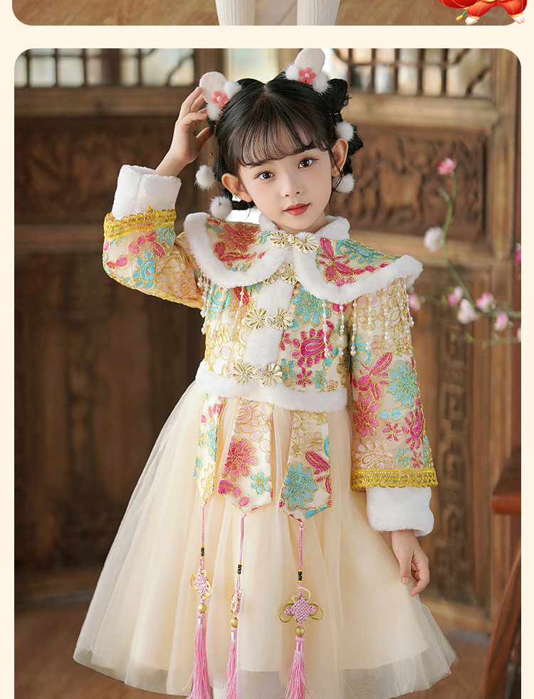 ST-HP366R女童唐装连衣裙2024新款冬季儿童加厚喜庆拜年服小女孩洋气公主裙
