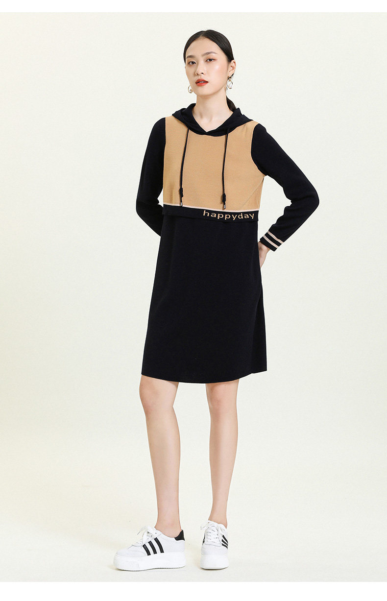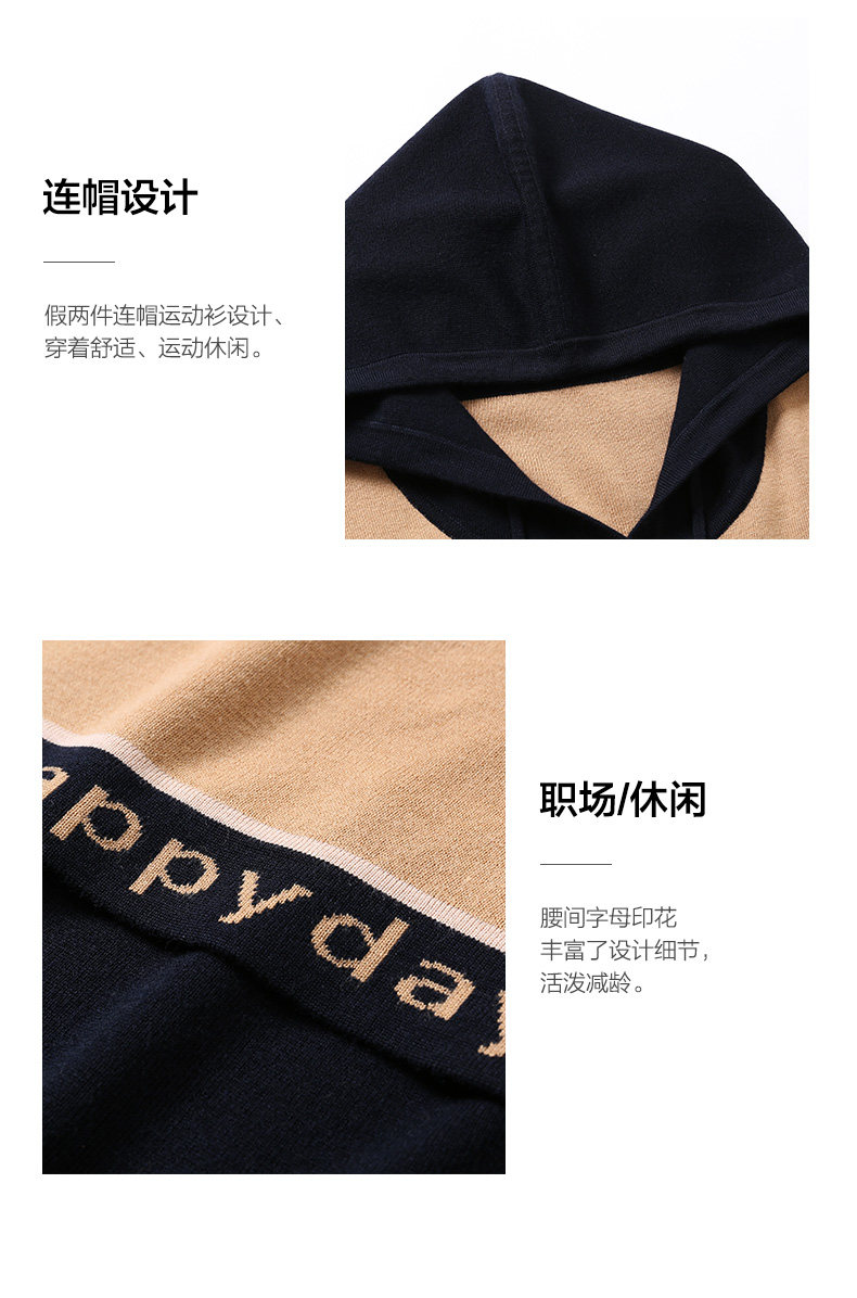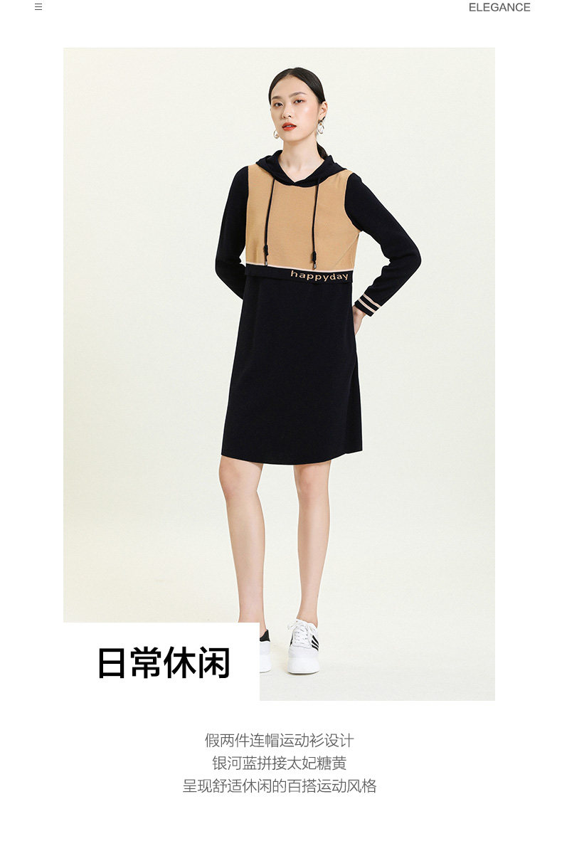 乔万尼新款假两件连帽拼接设计师款舒适运动百搭休闲连衣裙ES3M591