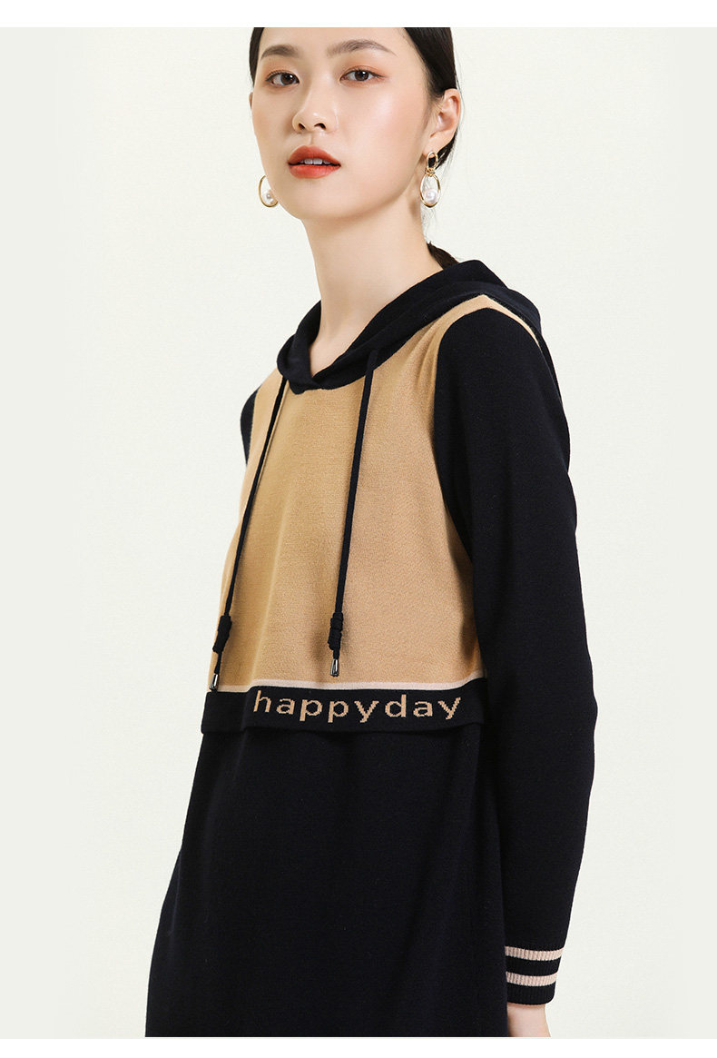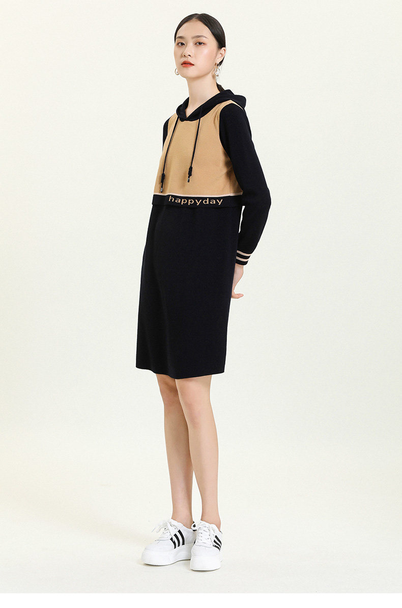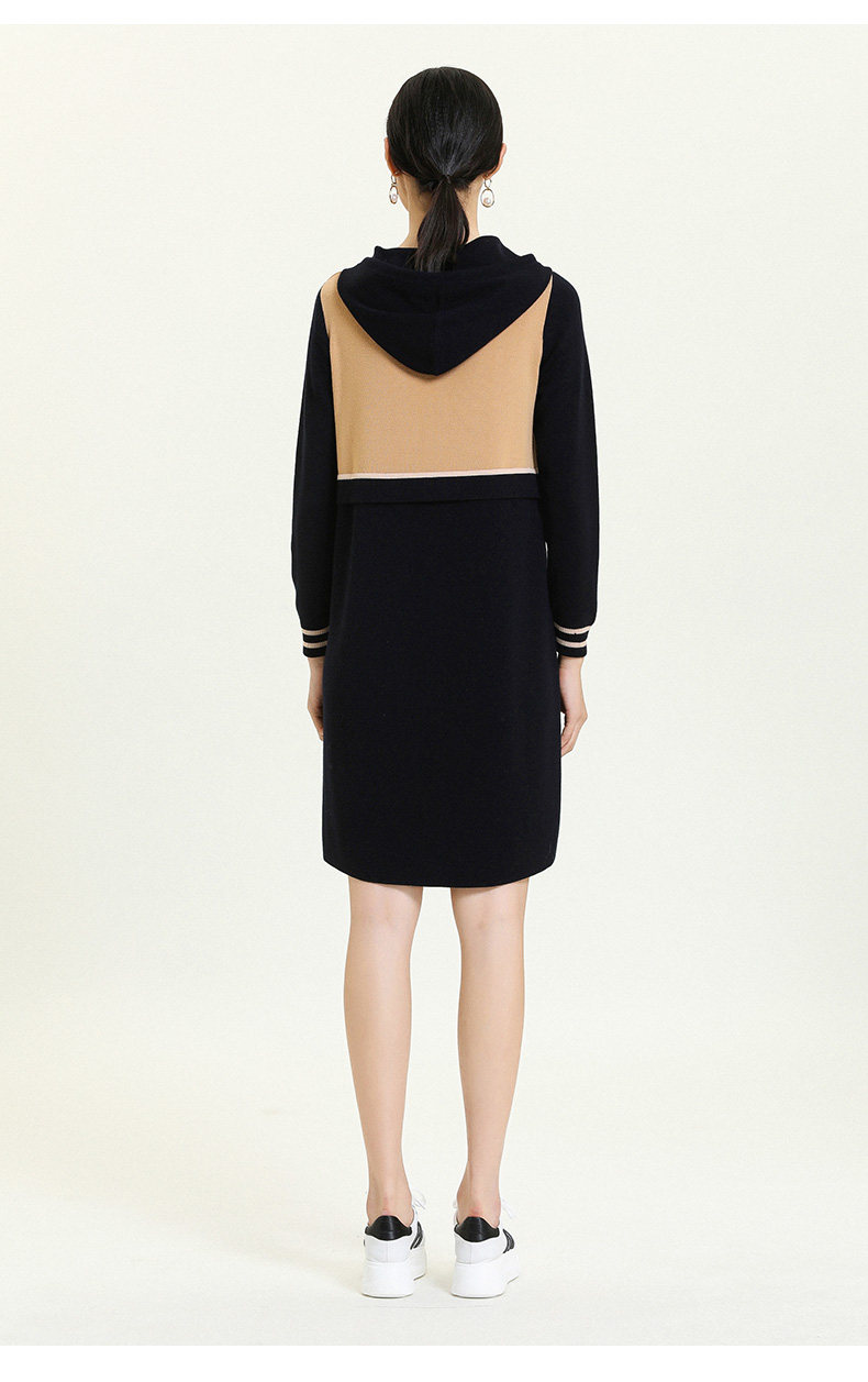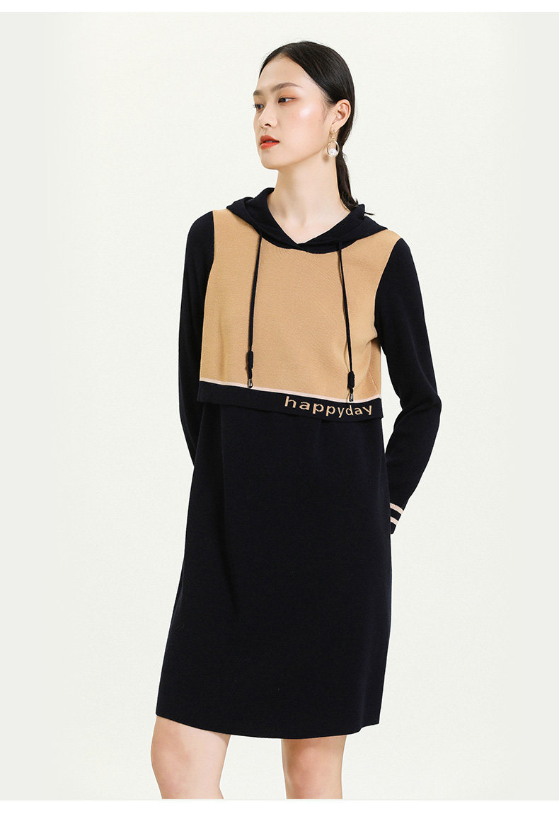 乔万尼新款假两件连帽拼接设计师款舒适运动百搭休闲连衣裙ES3M591