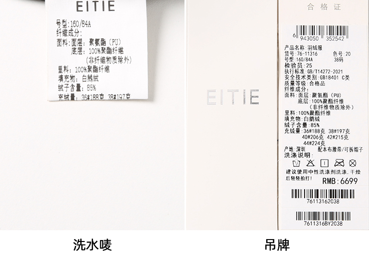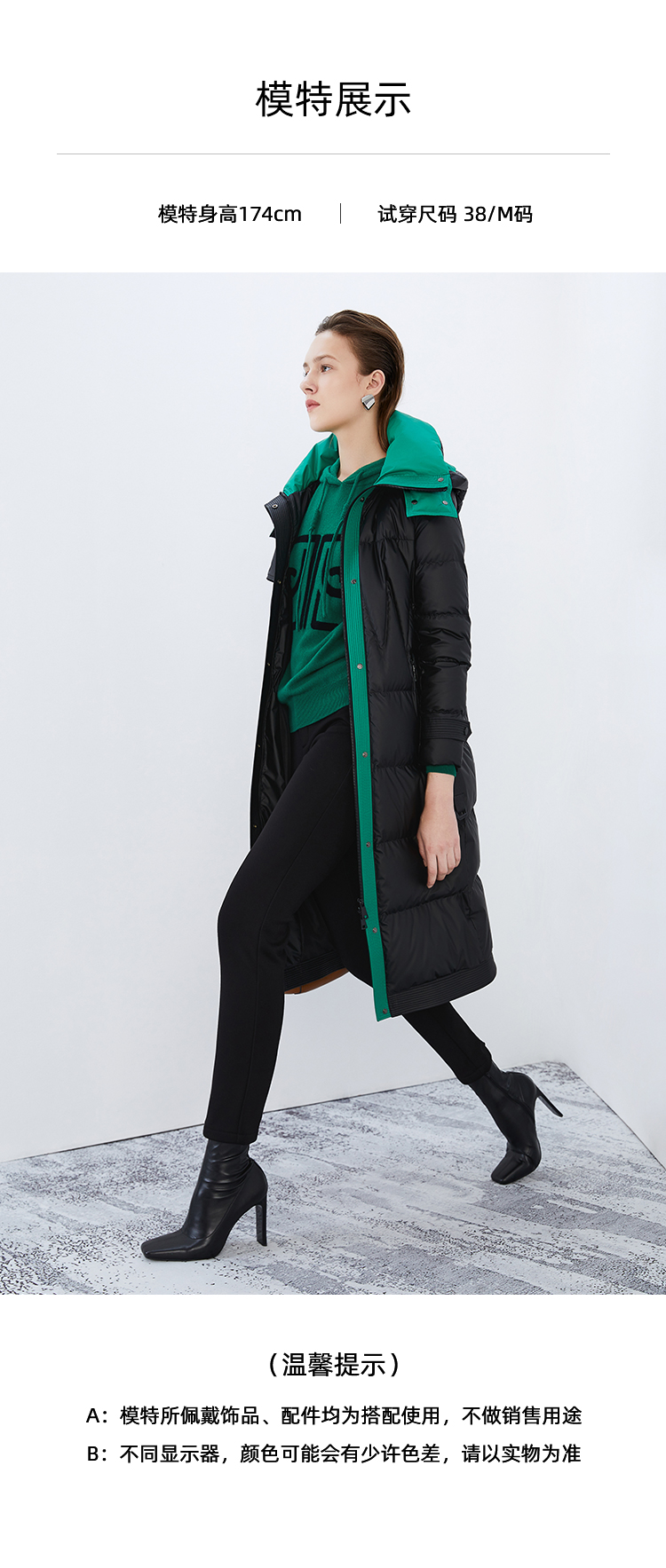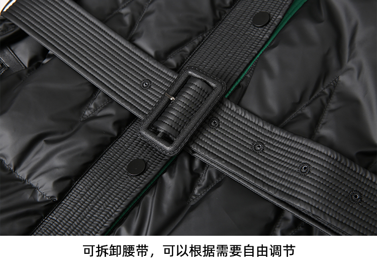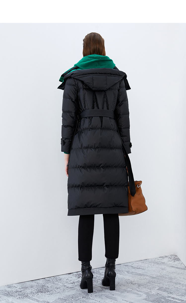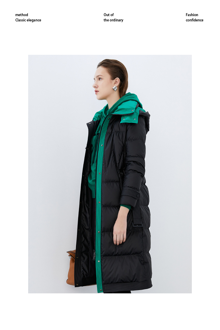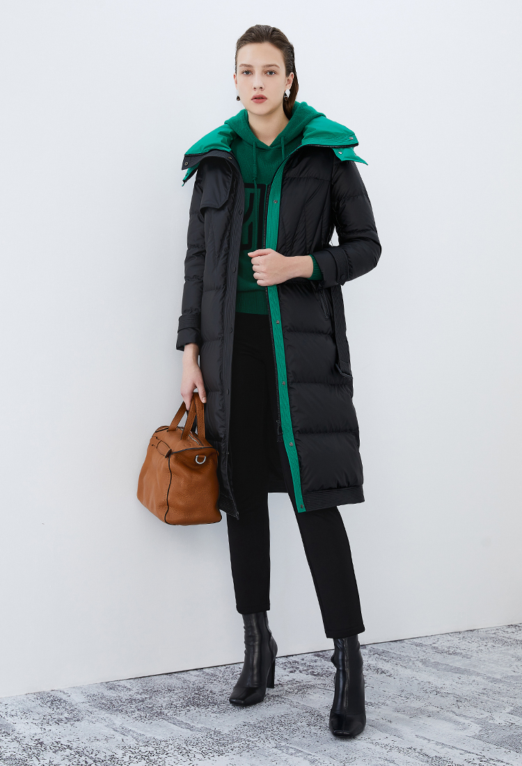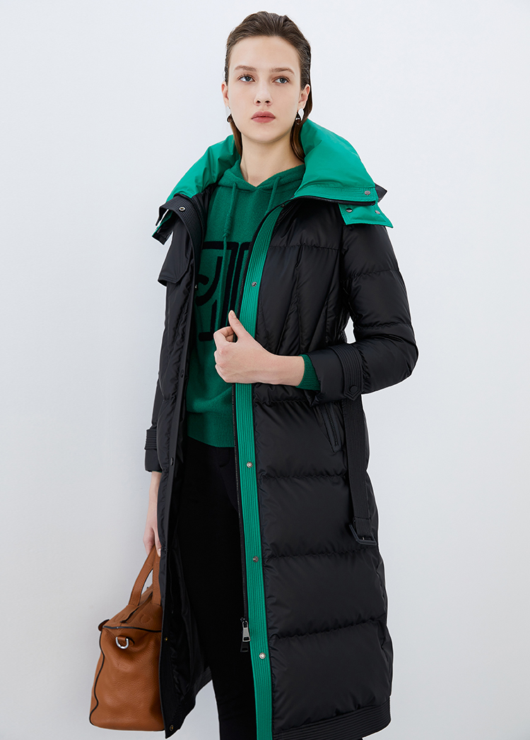 EITIE爱特爱冬季新款撞色收腰显瘦连帽加厚长款羽绒服女7611316