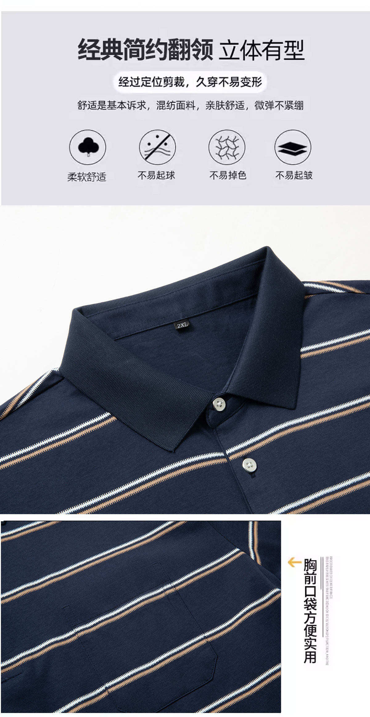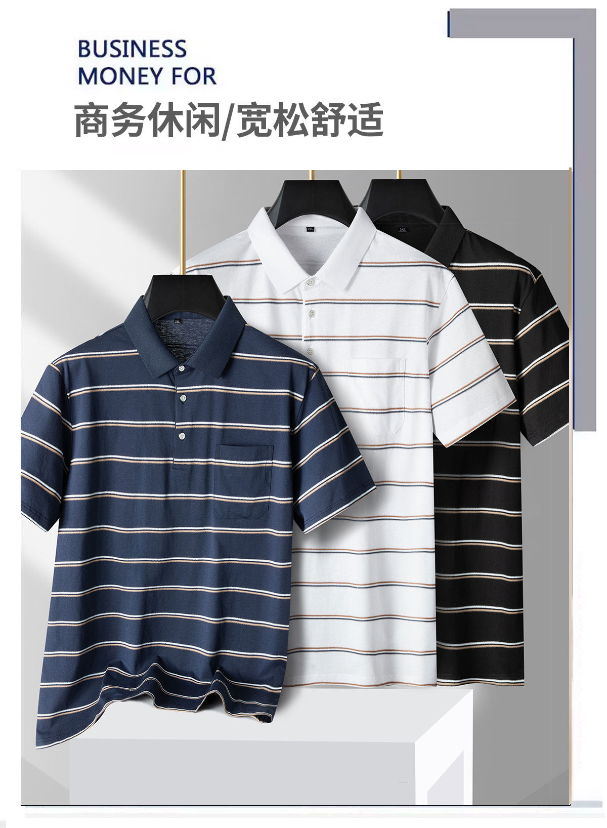 【DPS】【纯棉】大依优型大码男装夏季翻领条纹polo衫短袖舒适休闲上衣