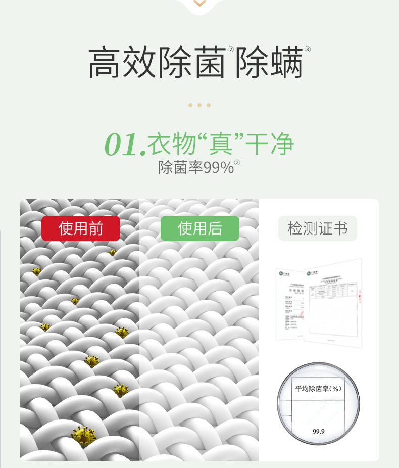清洁力好,可以将国标检测专用的油脂污布和蛋白质污布的白度值分别增加39%和36%