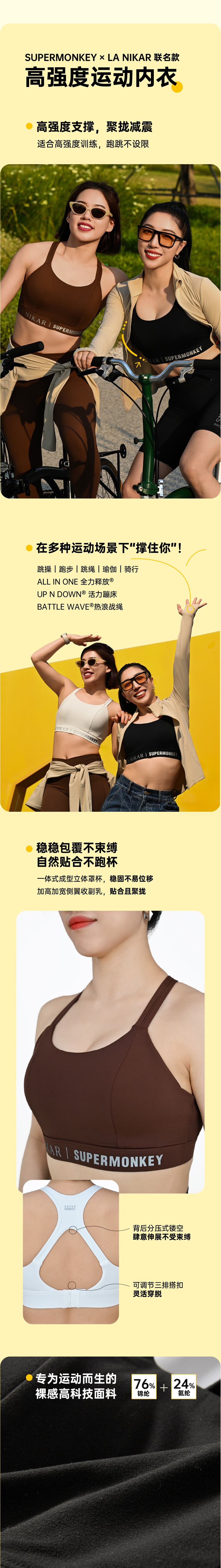 超级猩猩 x LaNikar 联名高强度运动内衣 跑步健身跳绳蹦床高强度有搭扣