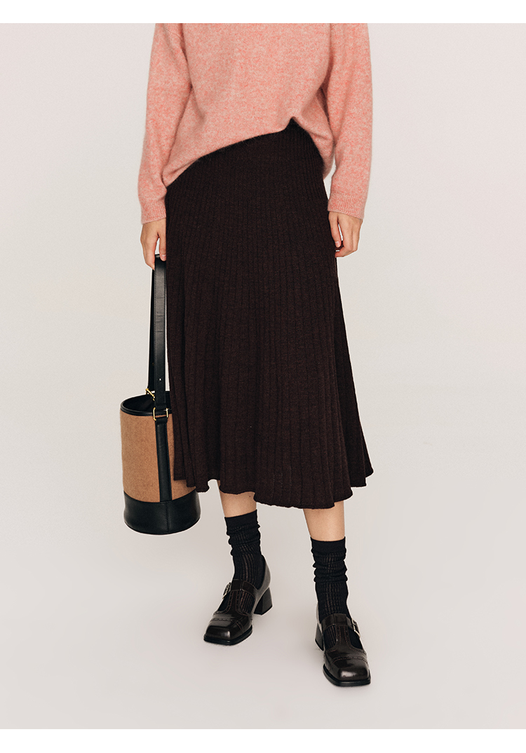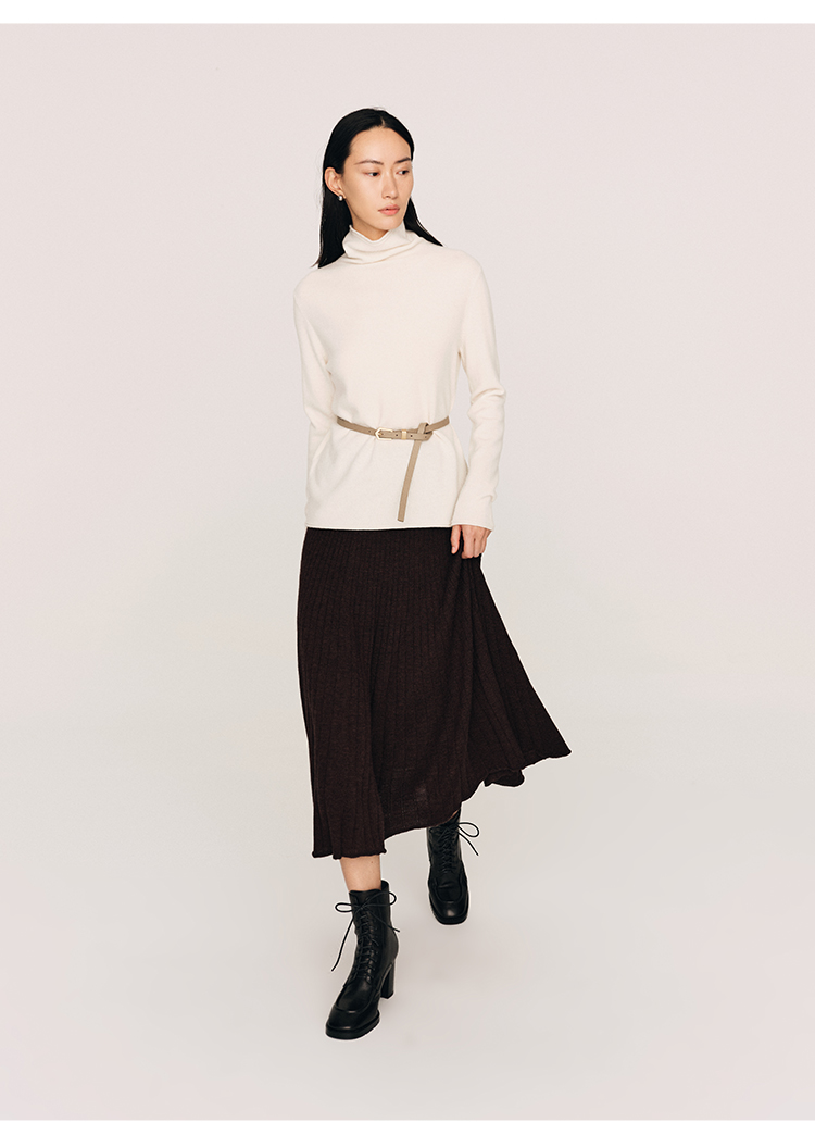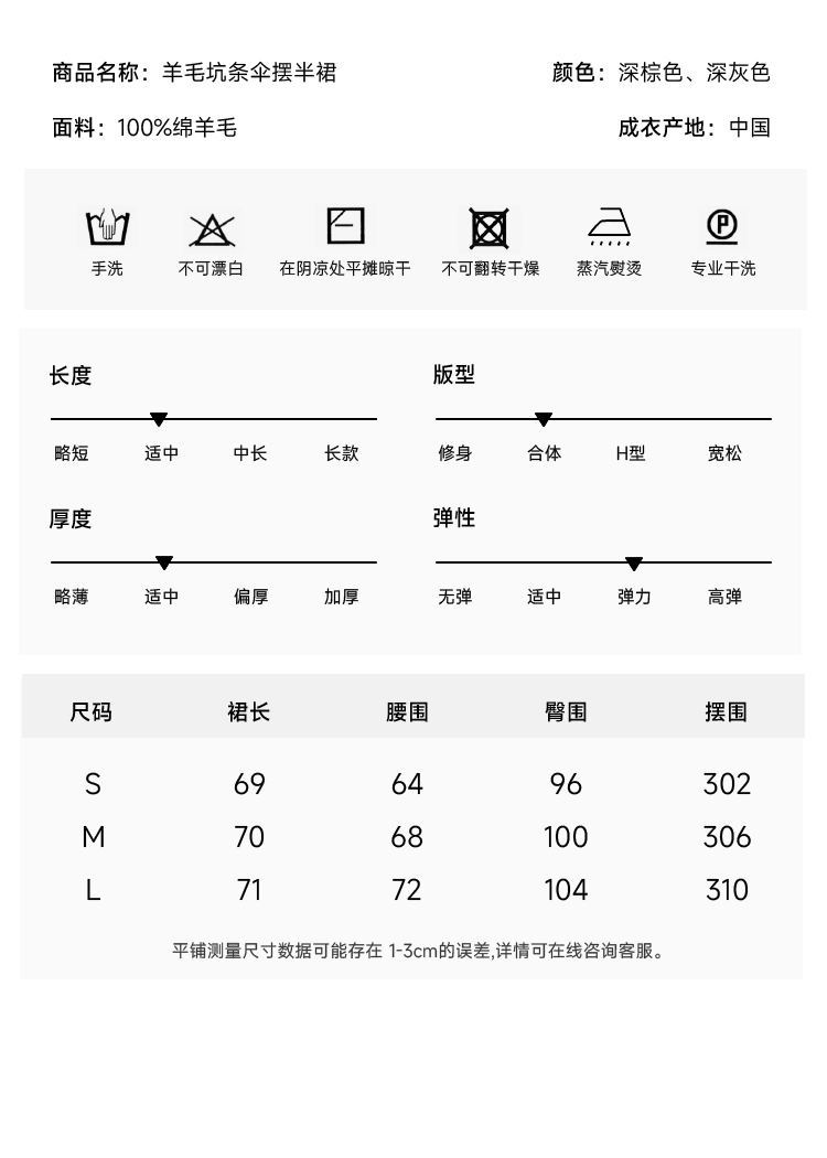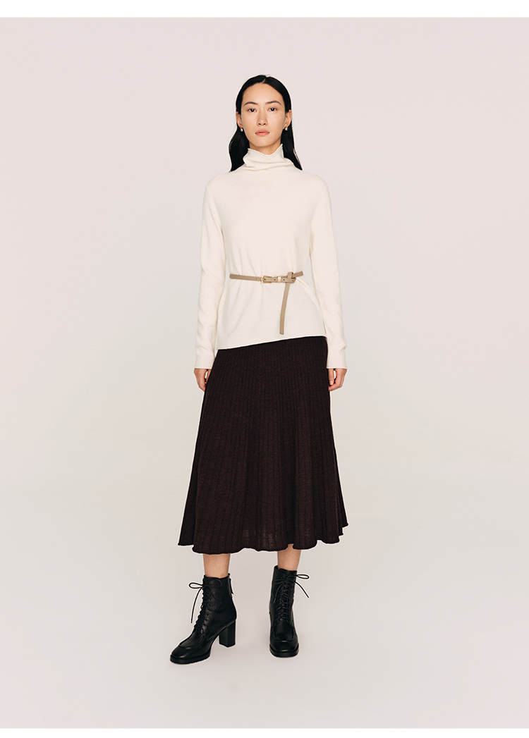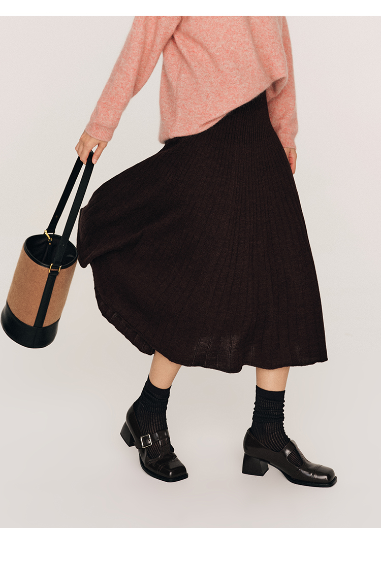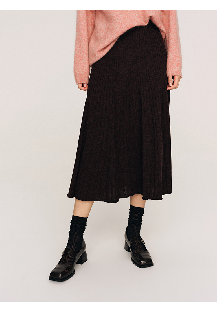 超细48支100%美丽诺羊毛坑条伞摆半裙FB465823N