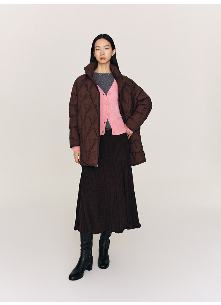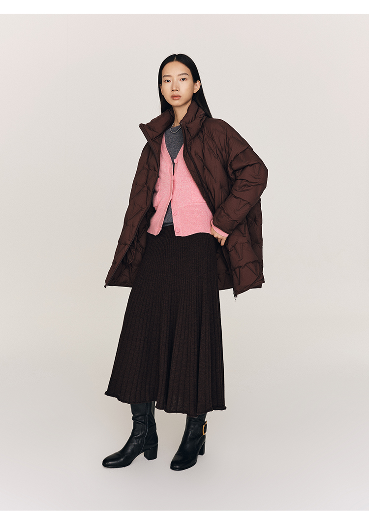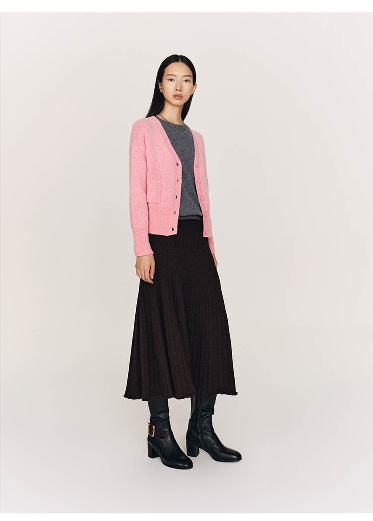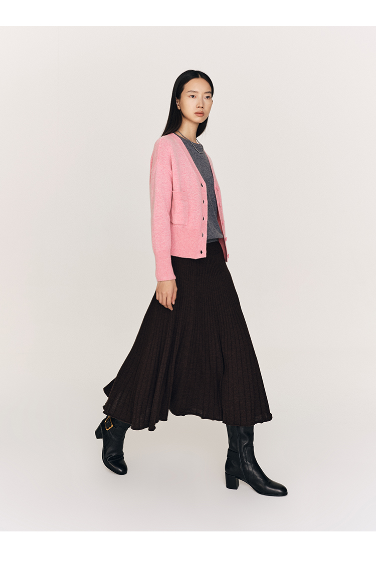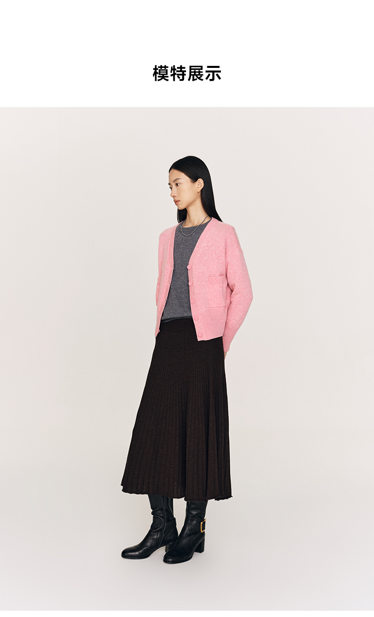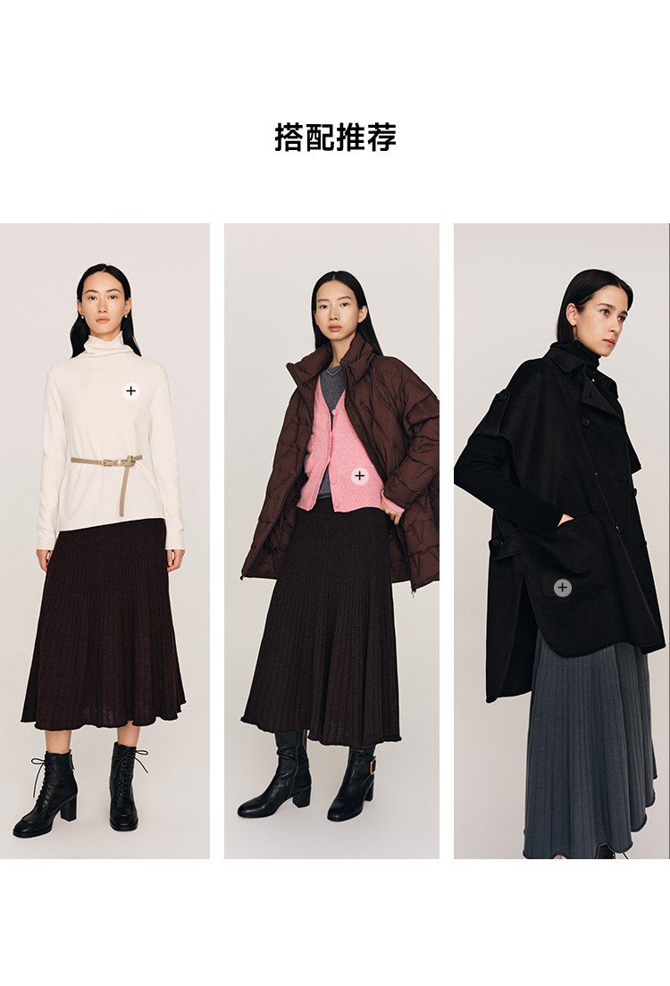 超细48支100%美丽诺羊毛坑条伞摆半裙FB465823N