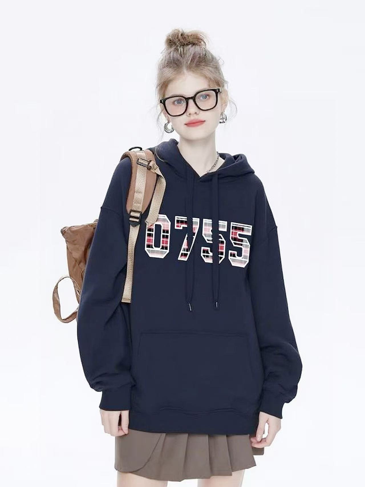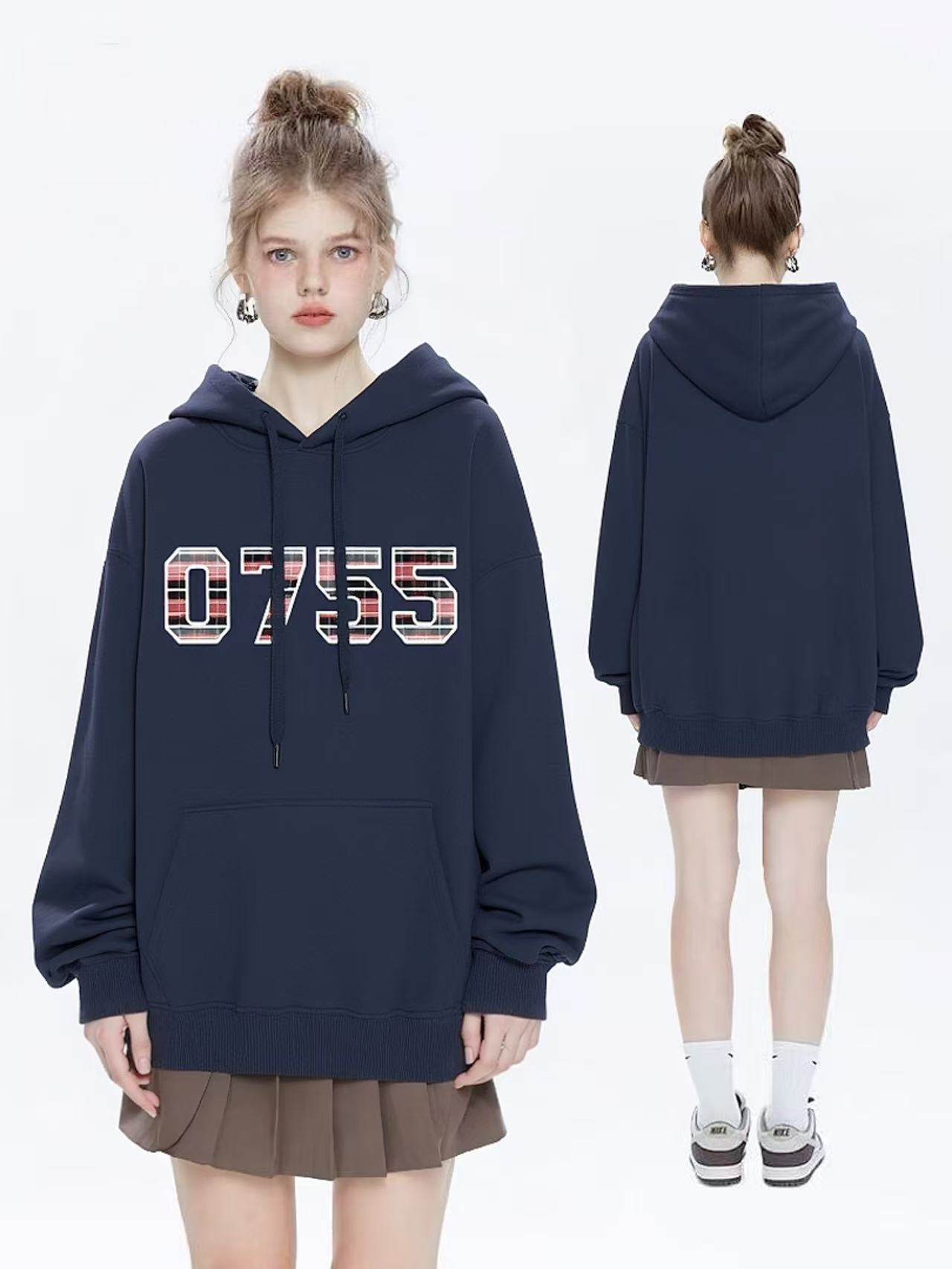 🔥🔥【潮牌卫衣】连帽牛奶绒~情侣款0755格子印花加绒卫衣-喜出