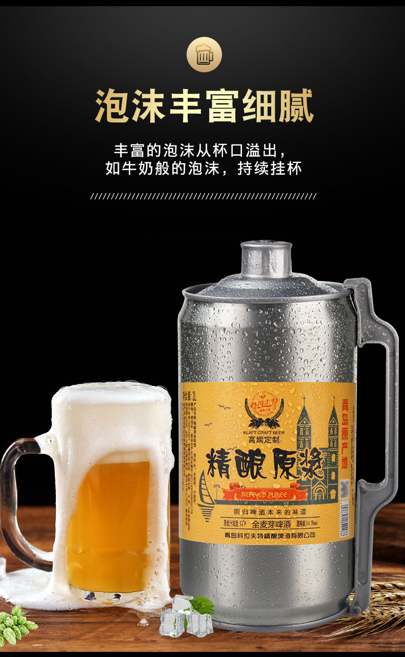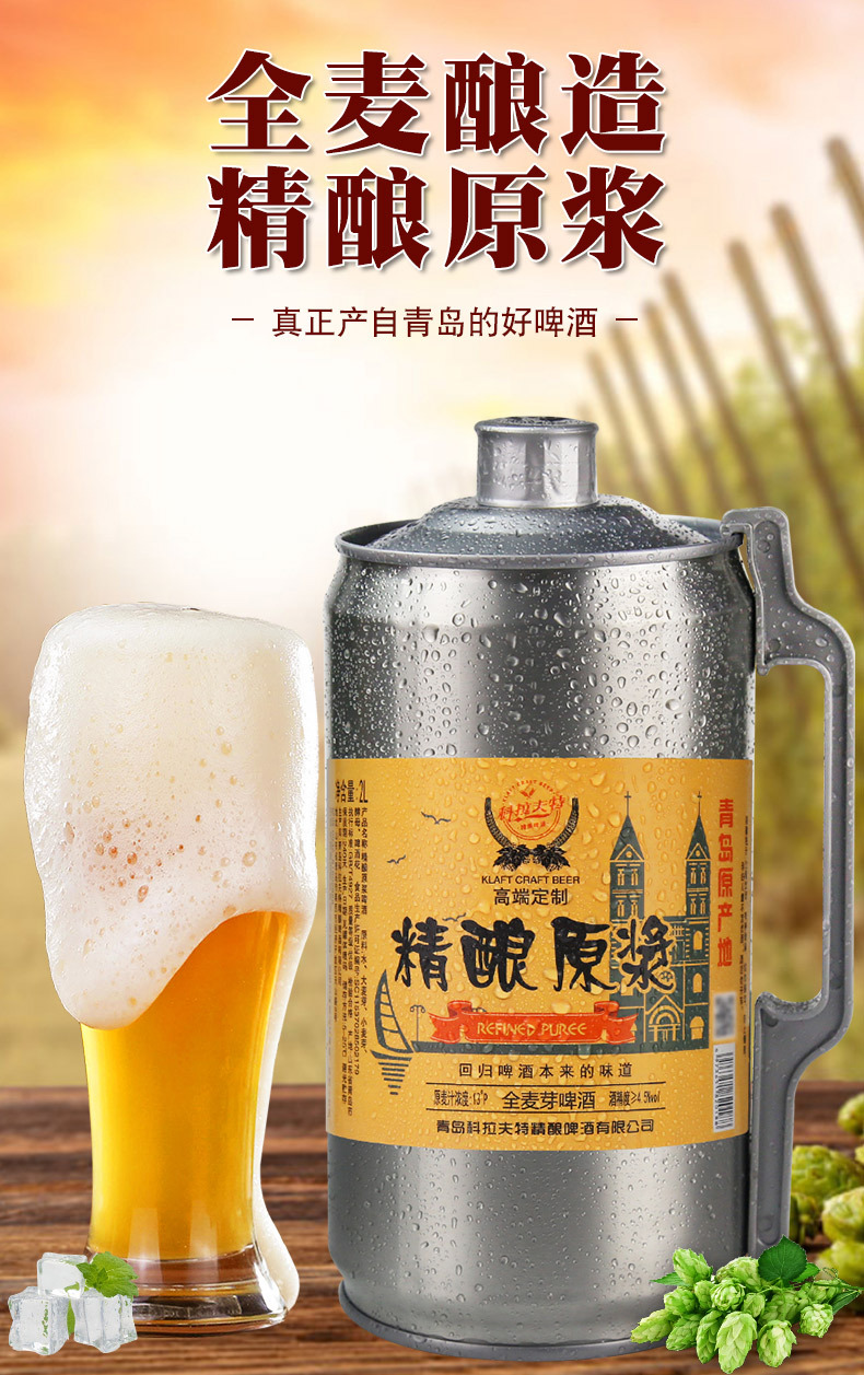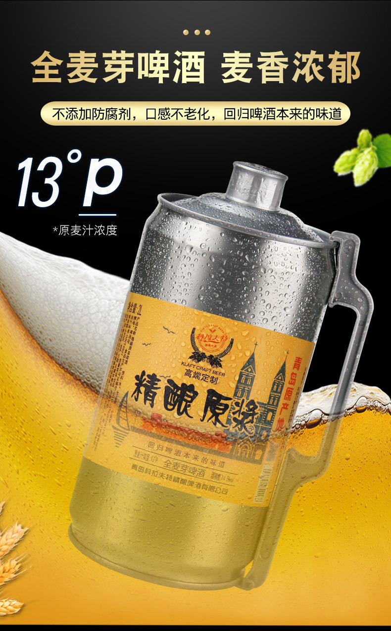 【原浆精酿啤酒】青岛原产地麦芽发酵啤酒原液 新鲜现发2L