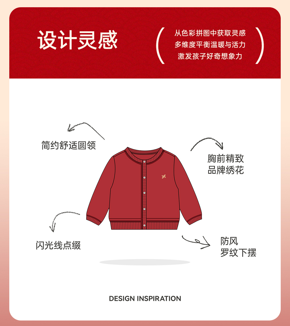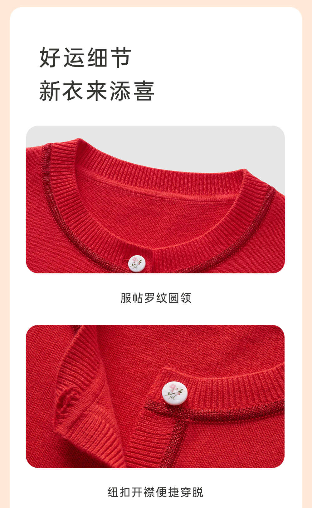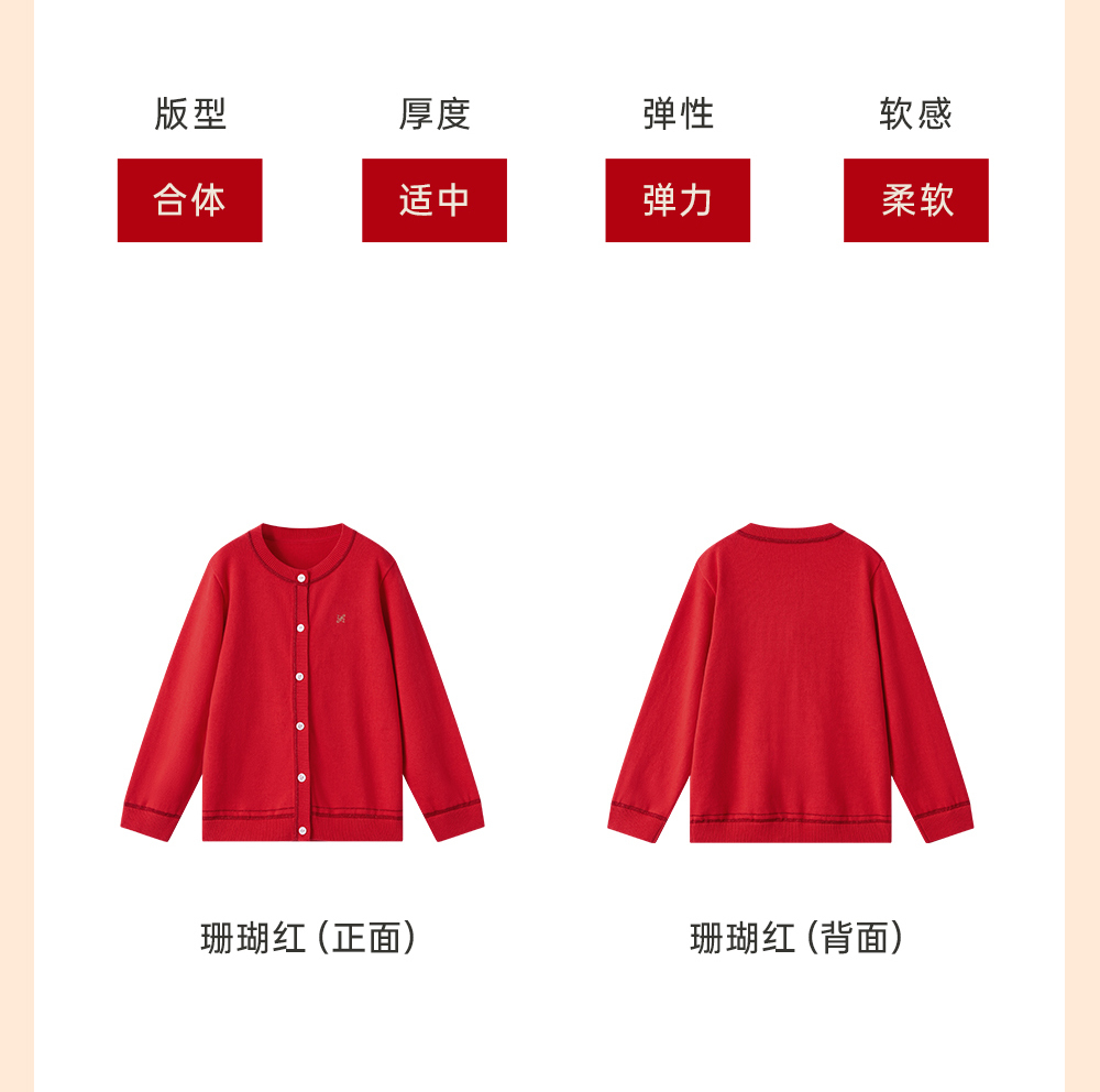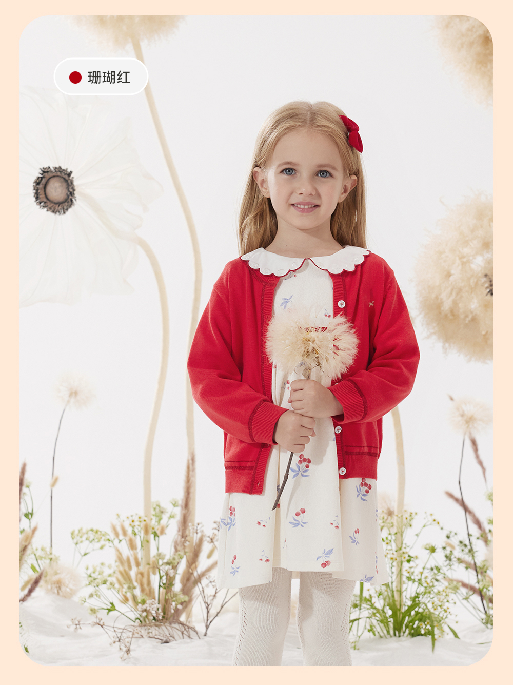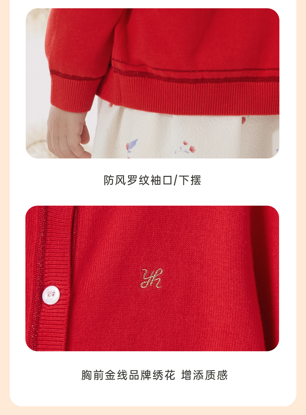 【商场同款】英氏贺新年系列纯棉开衫外套女宝针织衫春季新品