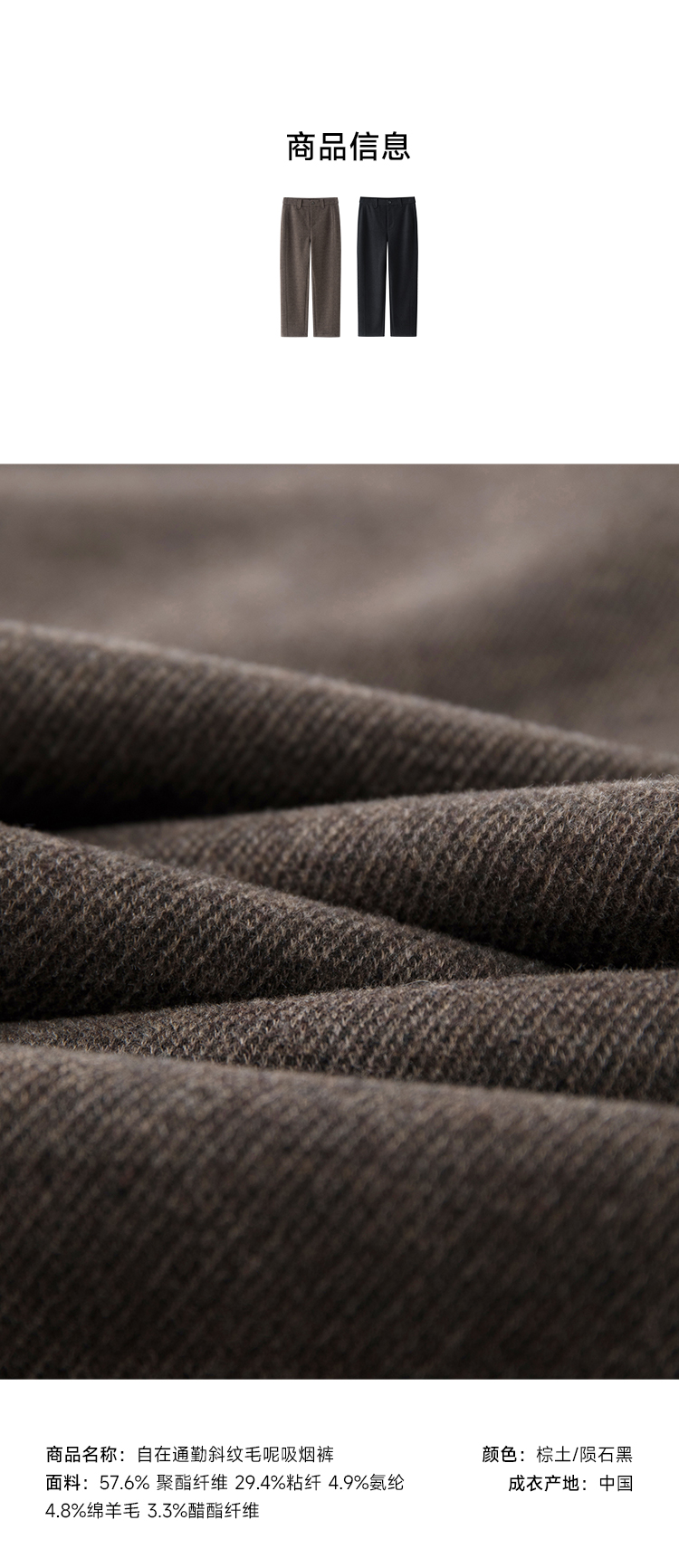 自在通勤斜纹毛呢吸烟裤FCE3PAT204
