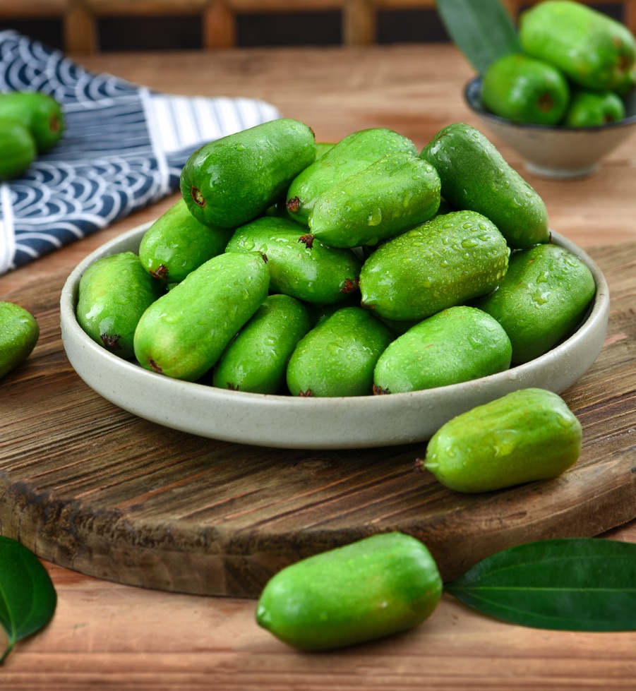 他的果实像一颗颗绿色的大枣光滑无毛,可以直接吃,果肉也是翠绿的,芝麻一样的籽酷似猕猴桃🥝