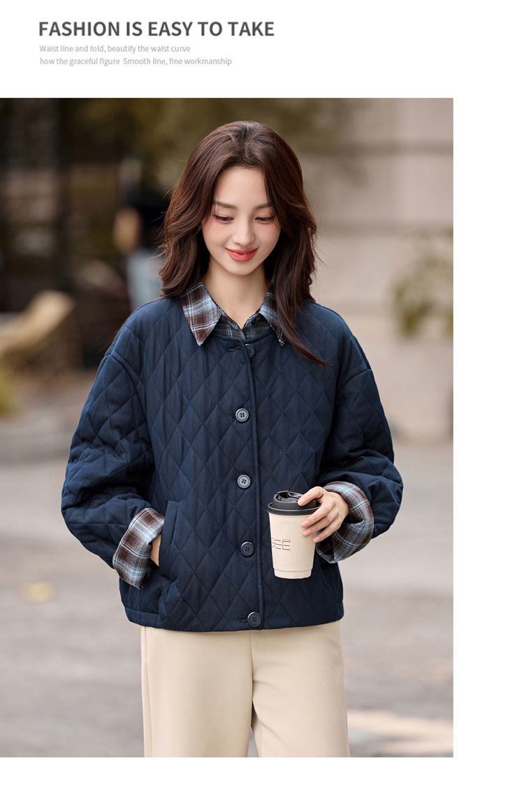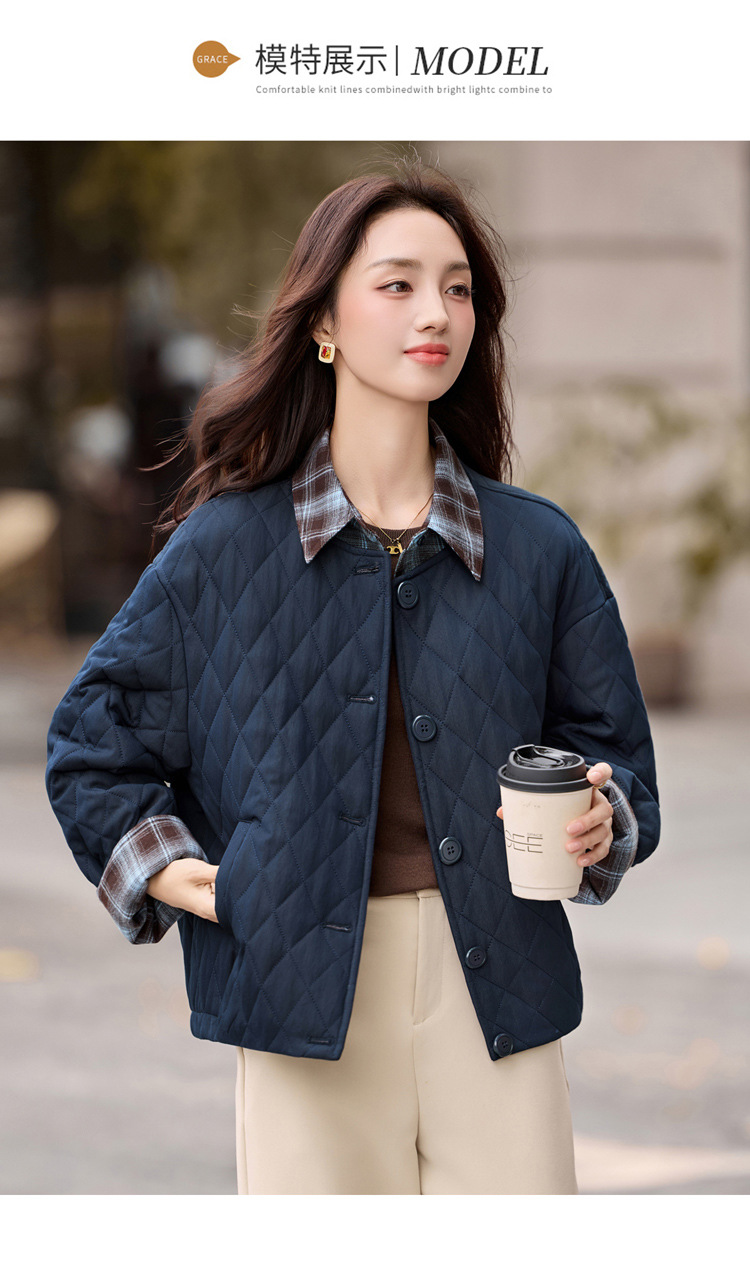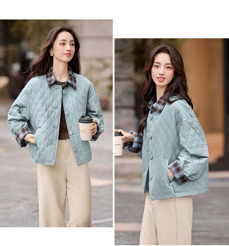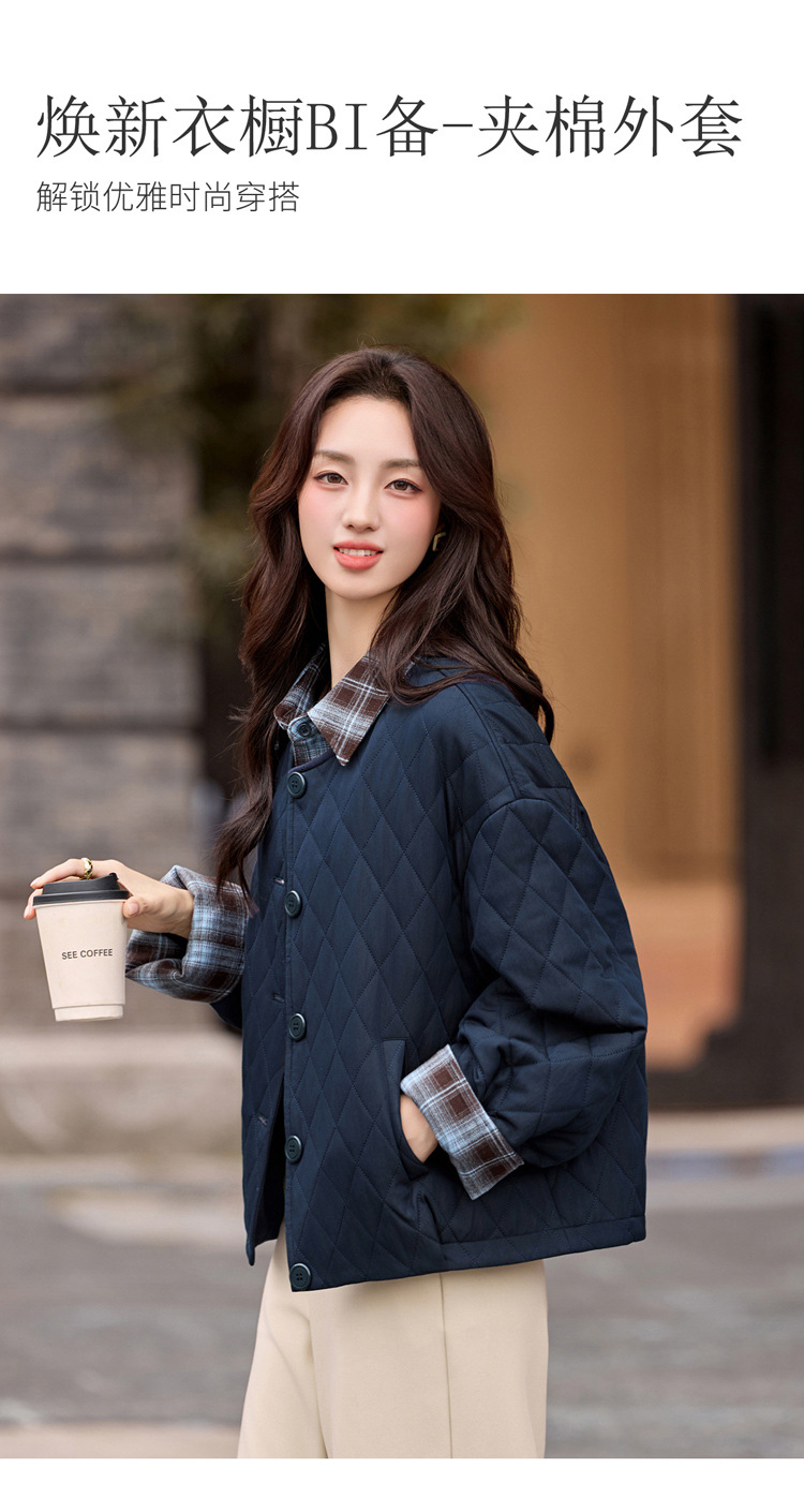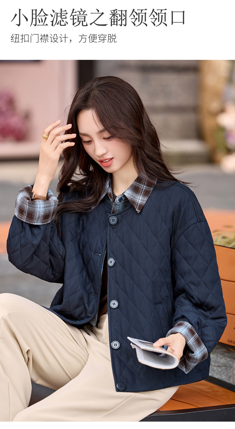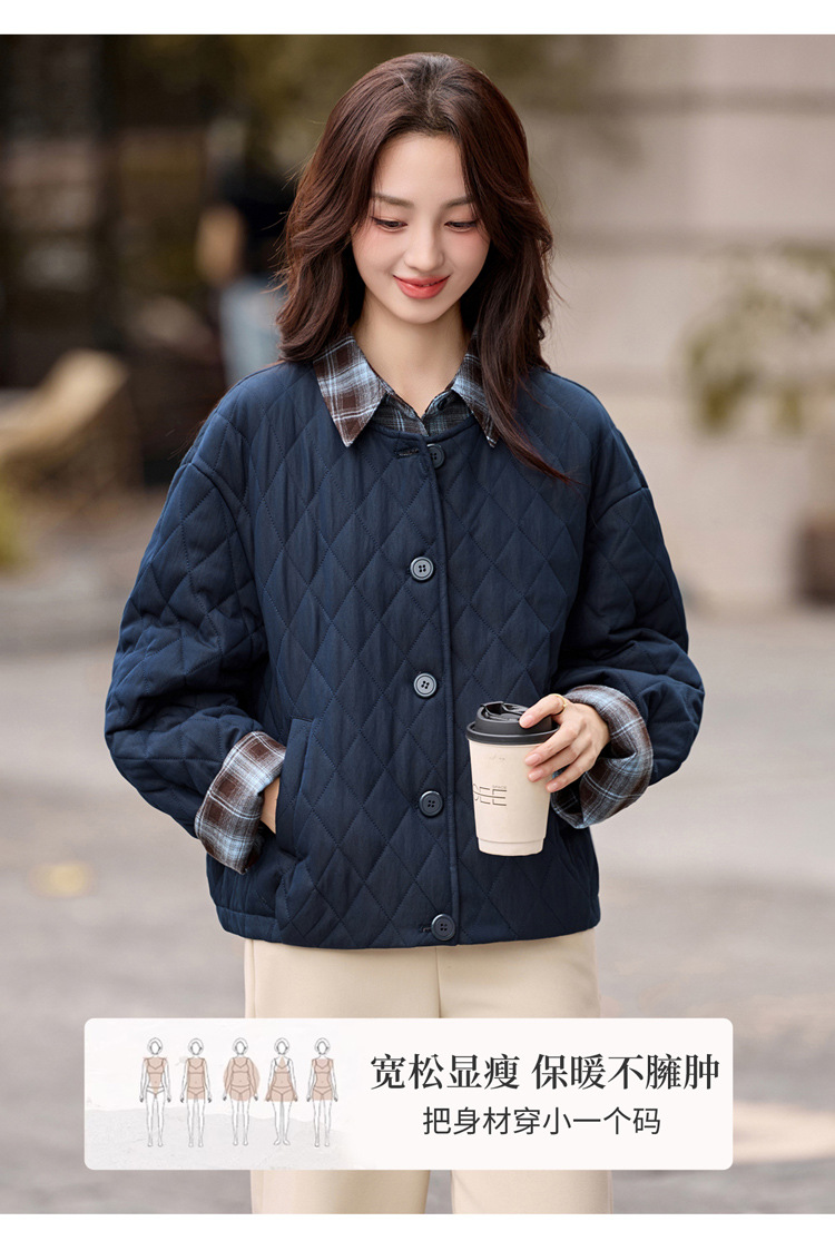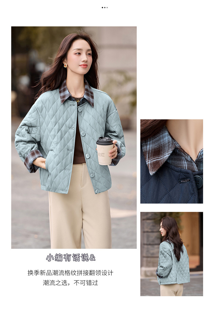 雀说格子领菱格轻薄棉服夹棉外套女短款新款小个子拼接棉衣AL25113 商品图0