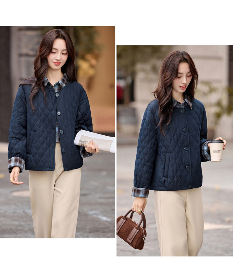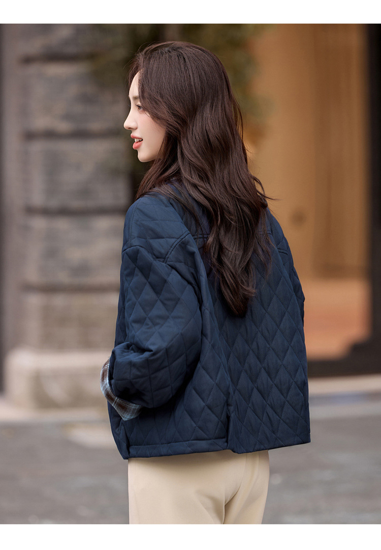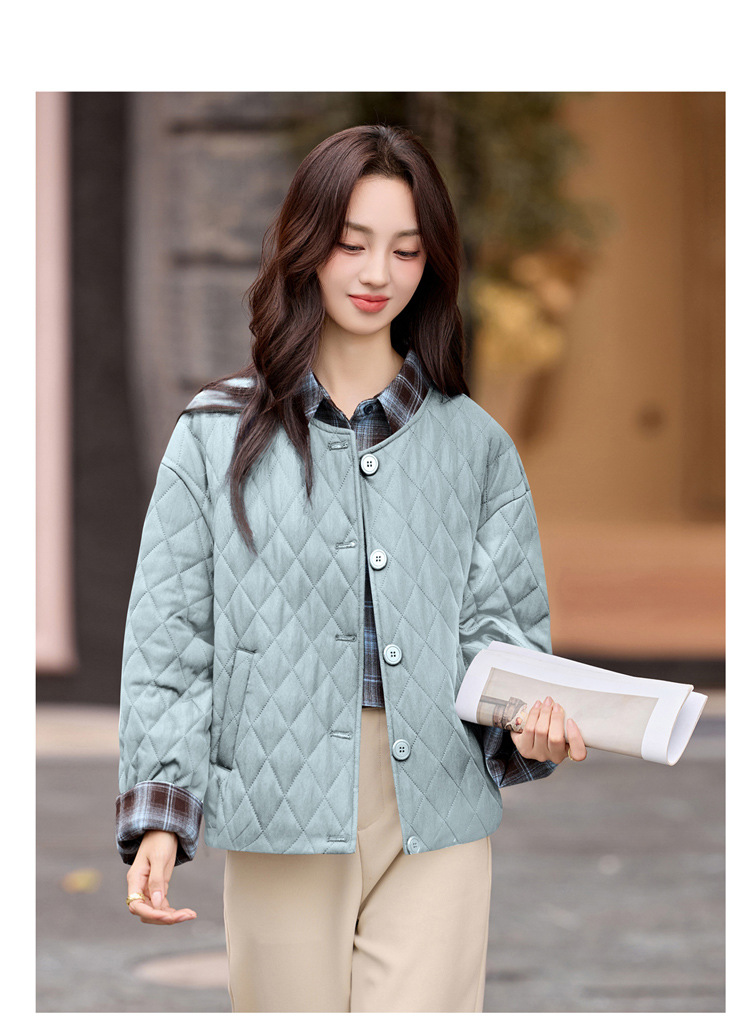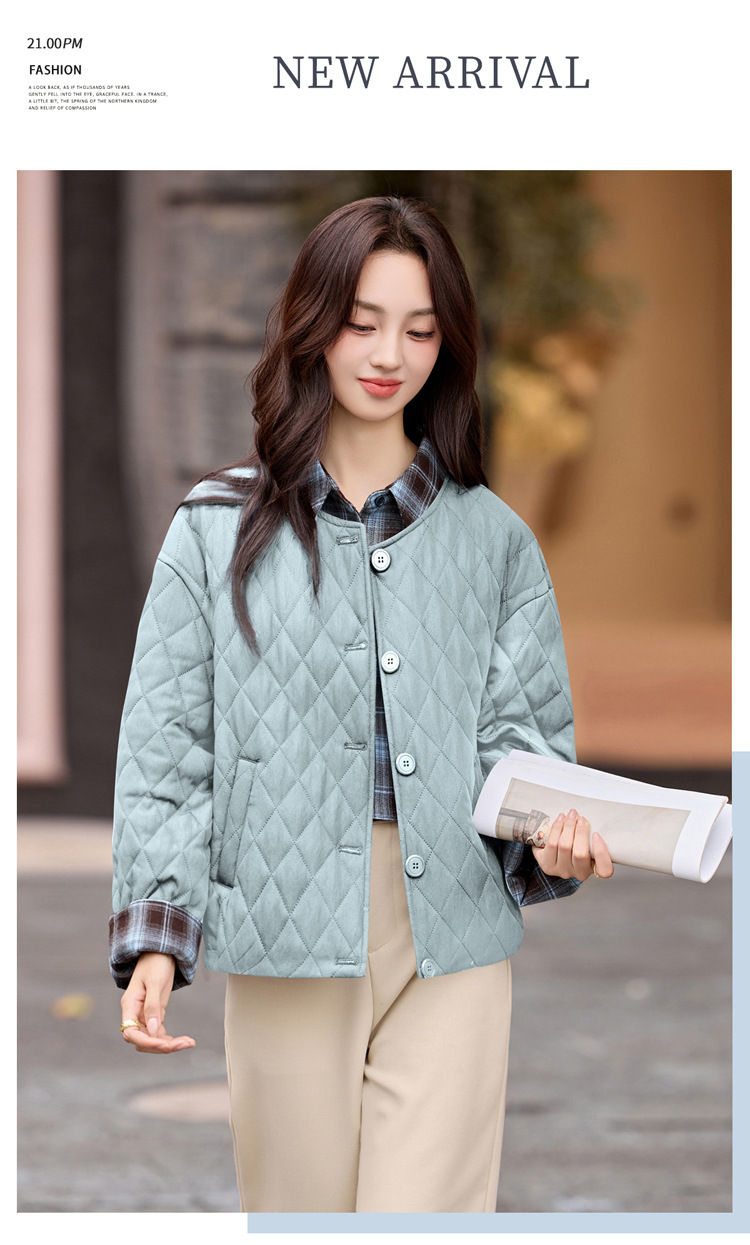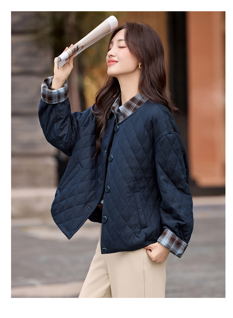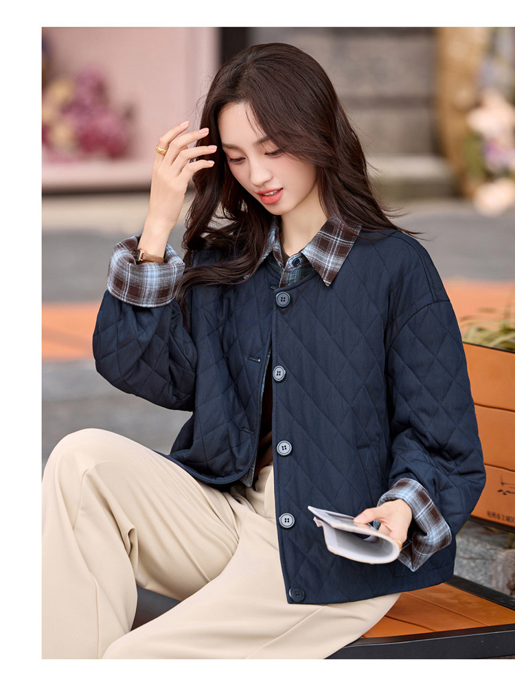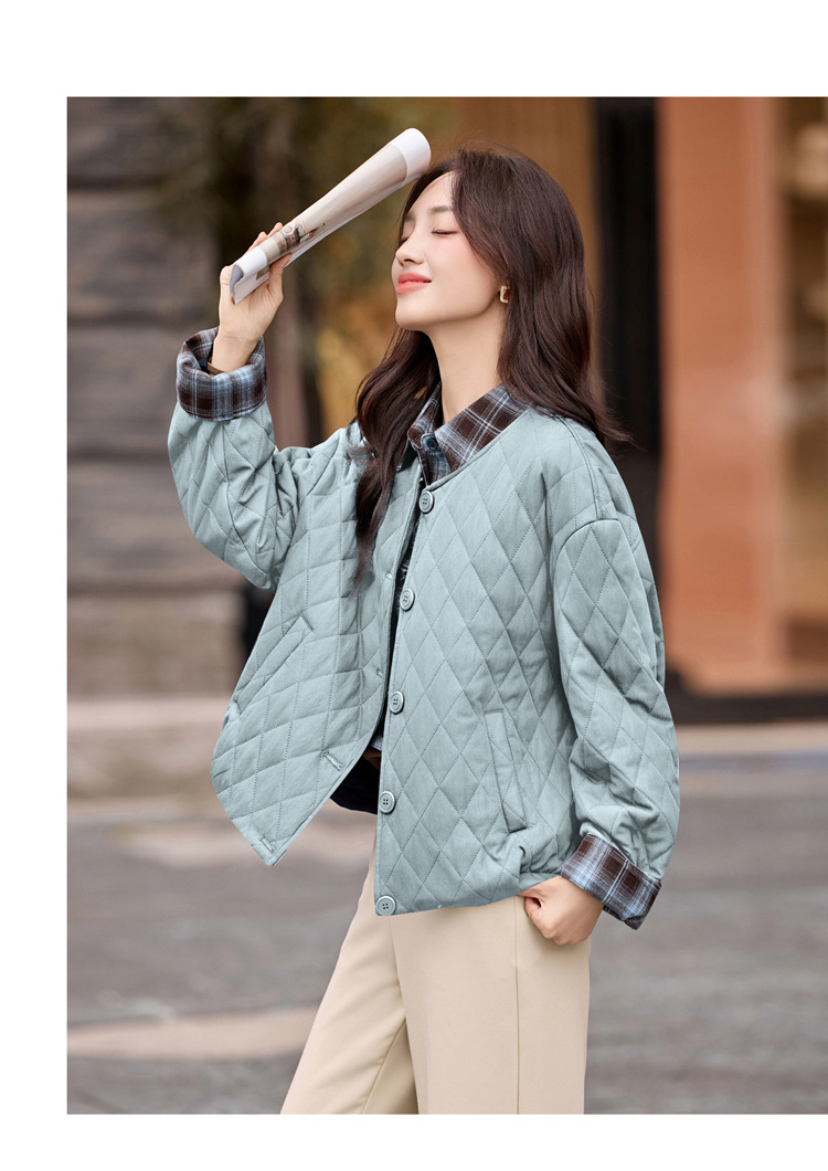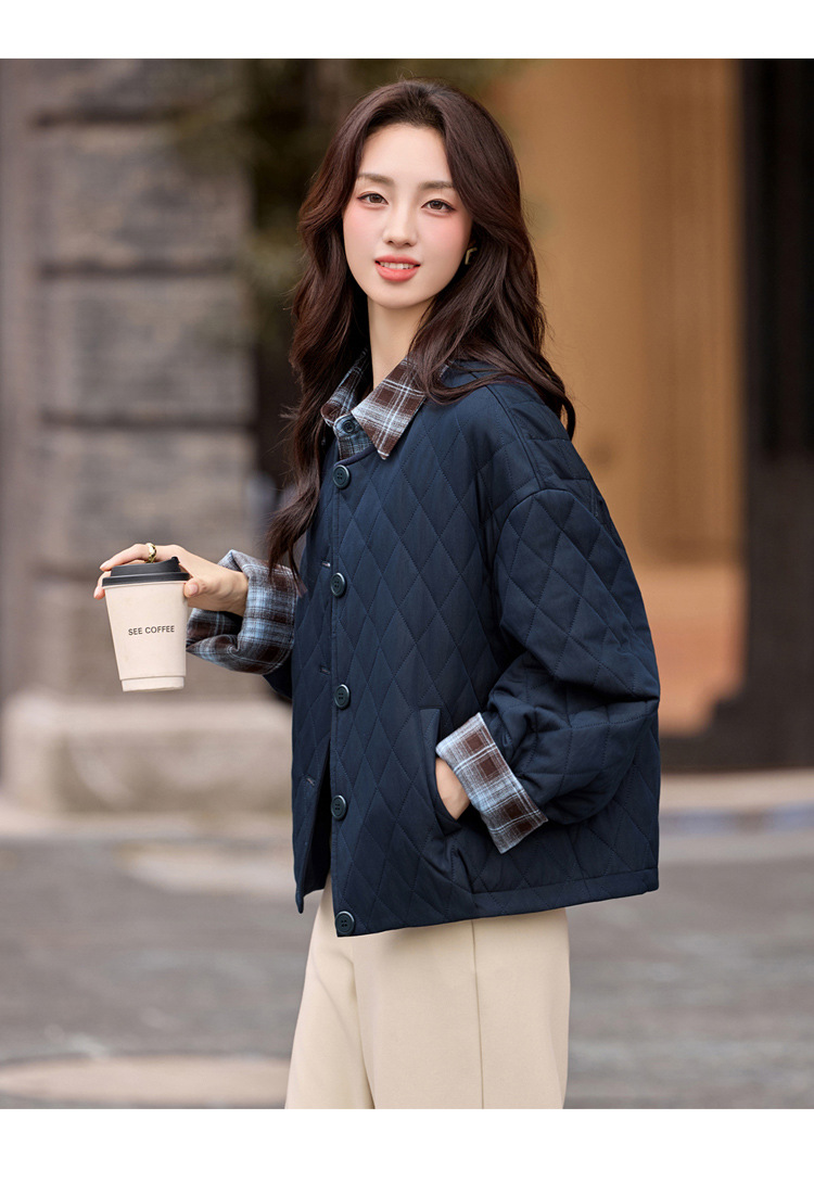 雀说格子领菱格轻薄棉服夹棉外套女短款新款小个子拼接棉衣AL25113 商品图0