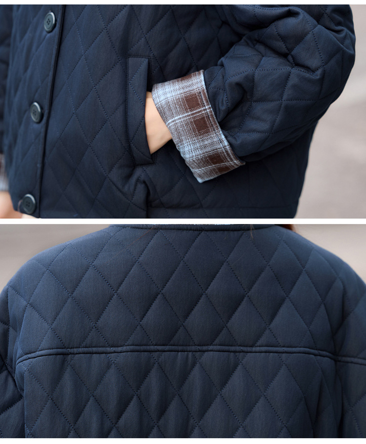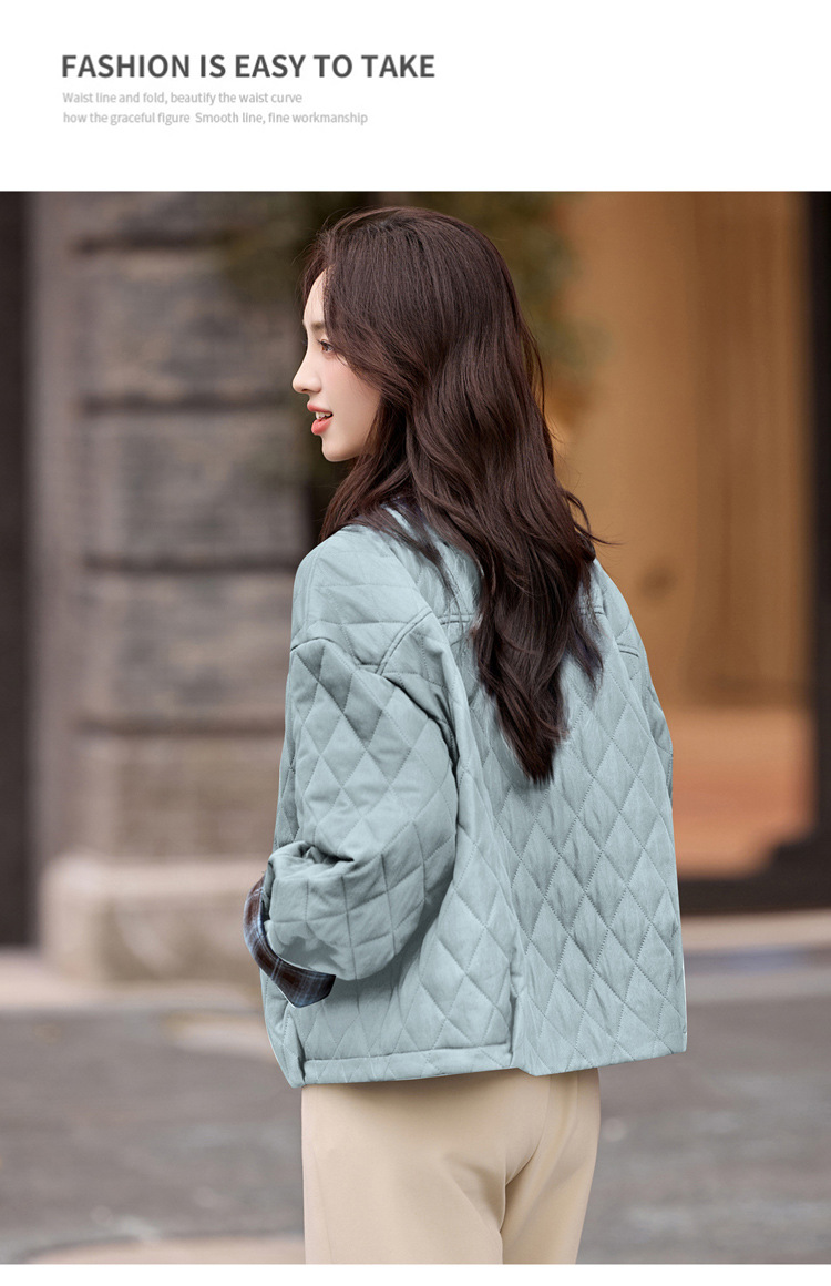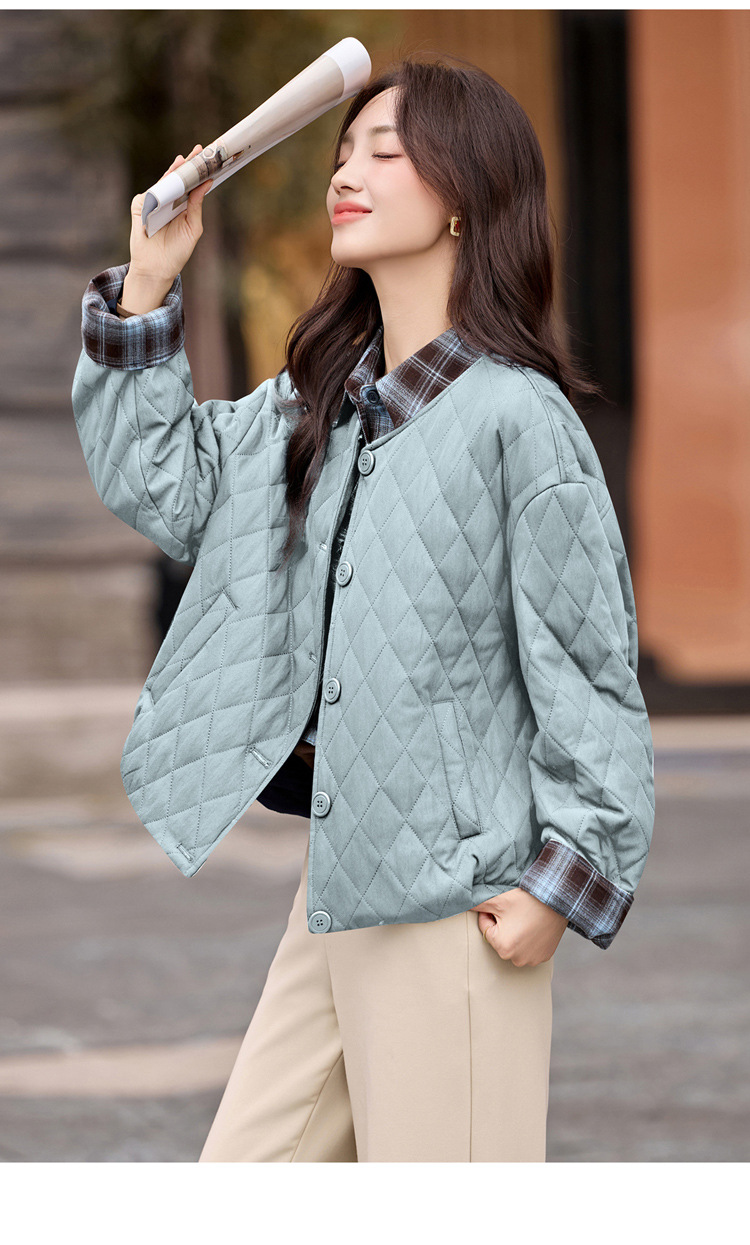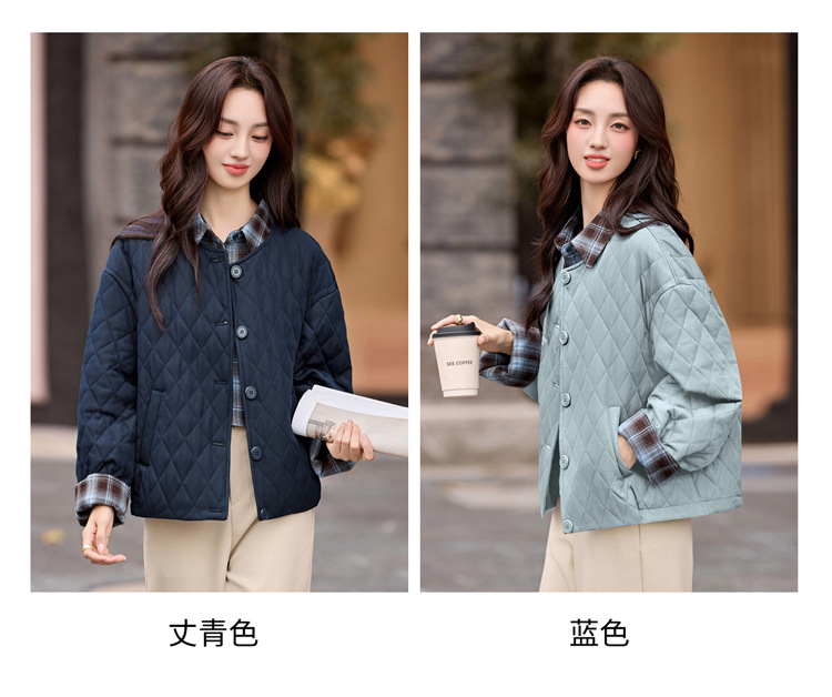 雀说格子领菱格轻薄棉服夹棉外套女短款新款小个子拼接棉衣AL25113 商品图4