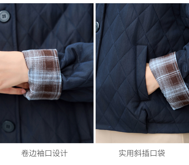 雀说格子领菱格轻薄棉服夹棉外套女短款新款小个子拼接棉衣AL25113 商品图3