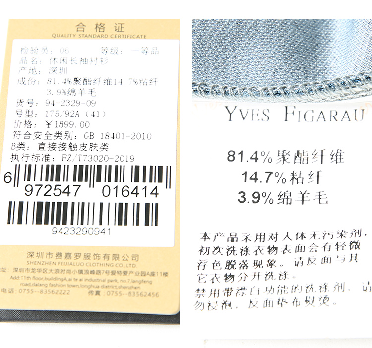 YvesFigarau伊夫·费嘉罗秋冬新款休闲长袖衬衫942329