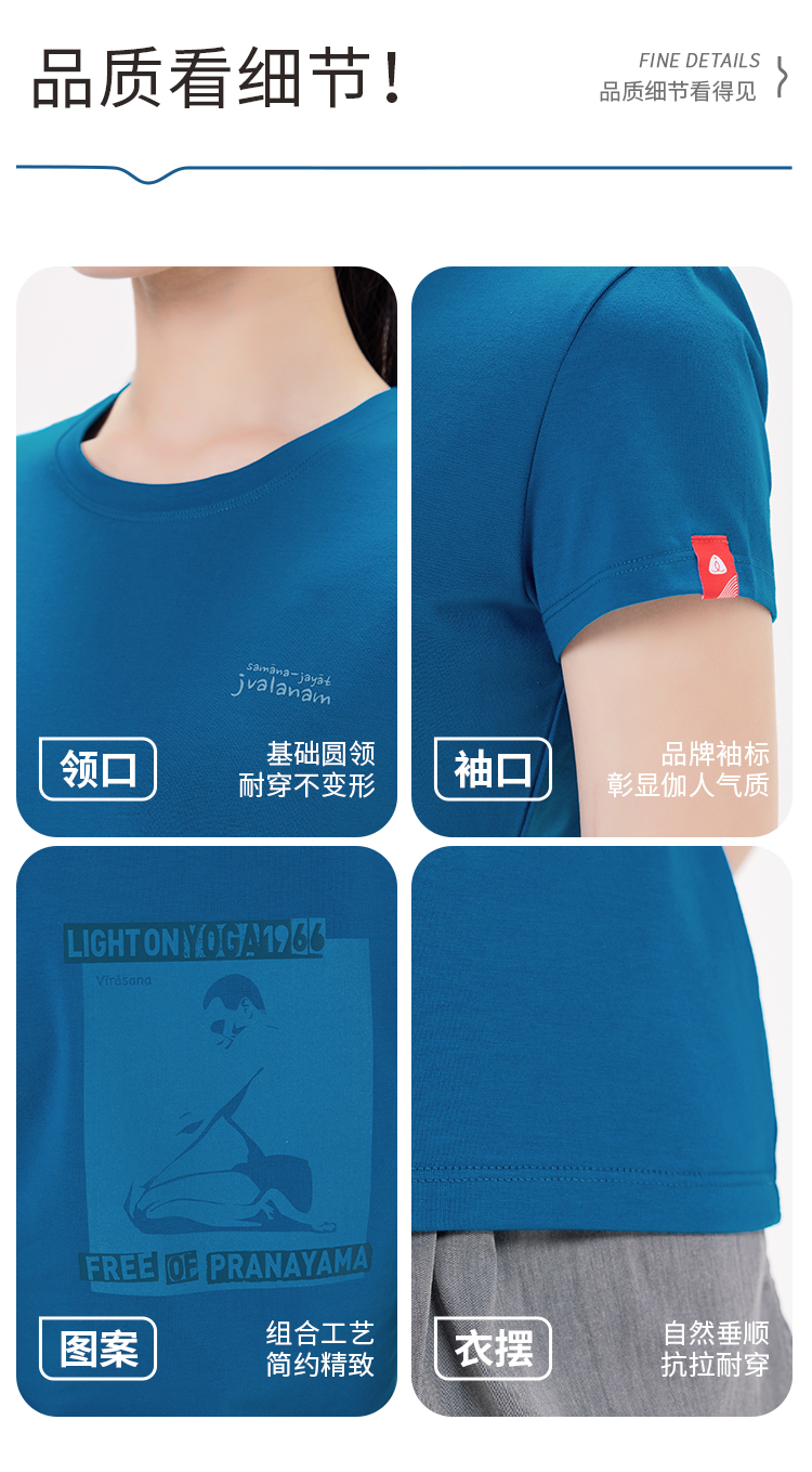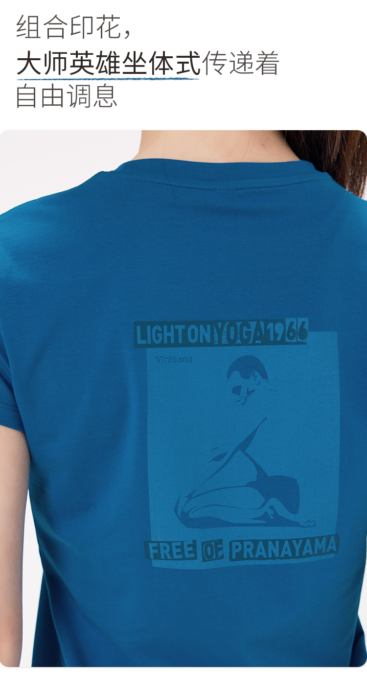 艾扬格 life C1196大师英雄坐女装瑜伽T恤短袖 不易闷汗 组合印花,大师英雄坐体式传递着自由调息