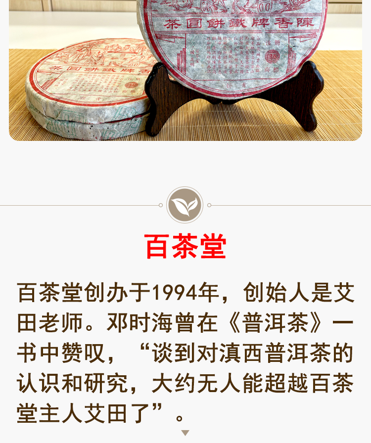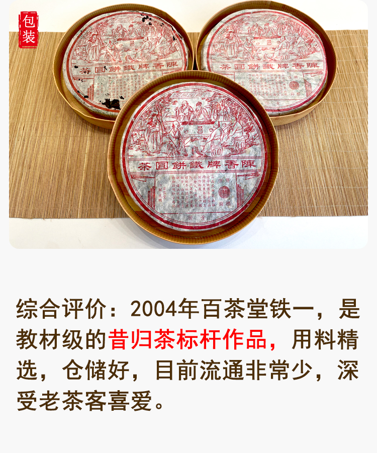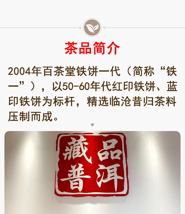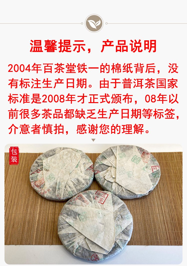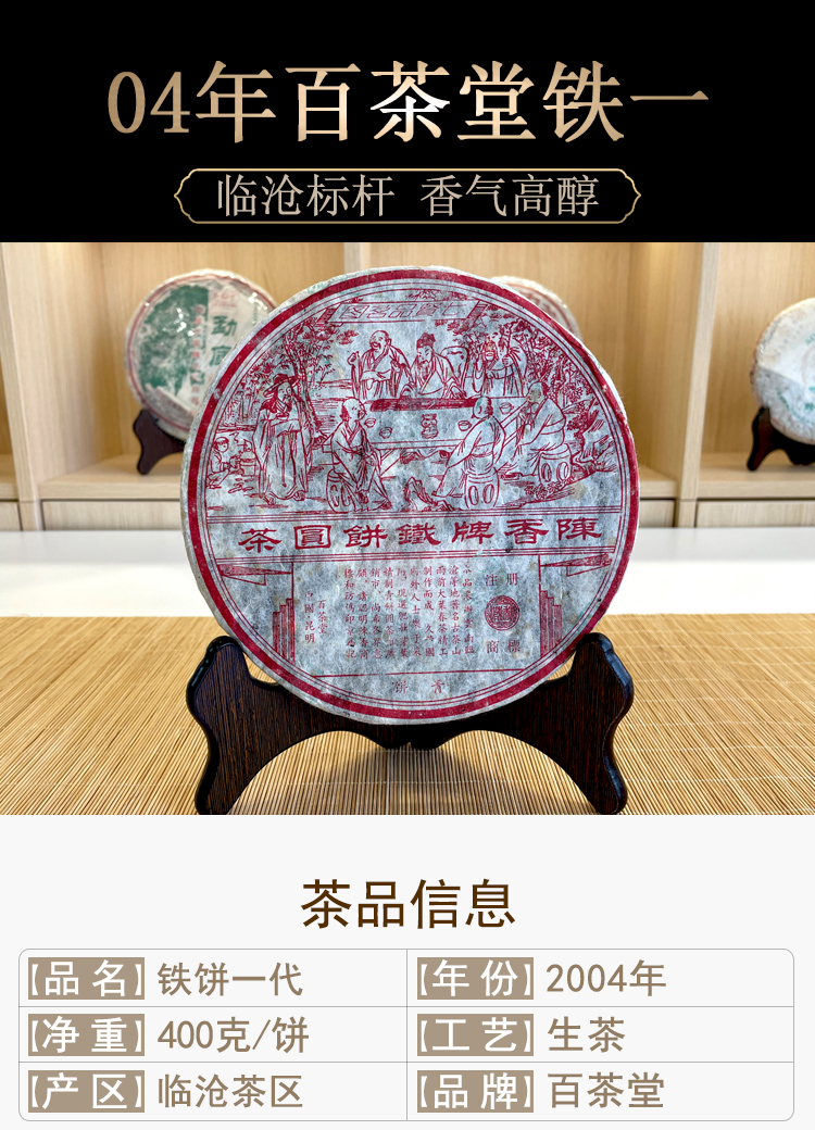 百茶堂铁一2004年百茶堂铁饼一代普洱老生茶 现货 干仓真品支持鉴定 单片标价