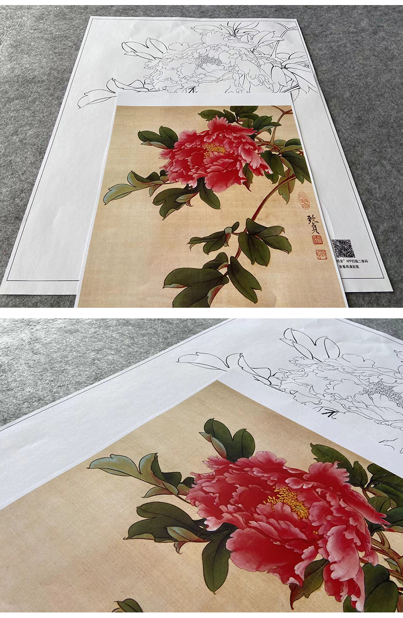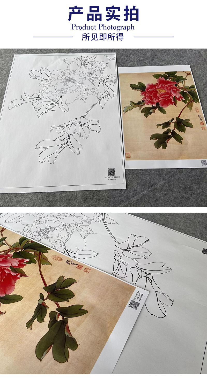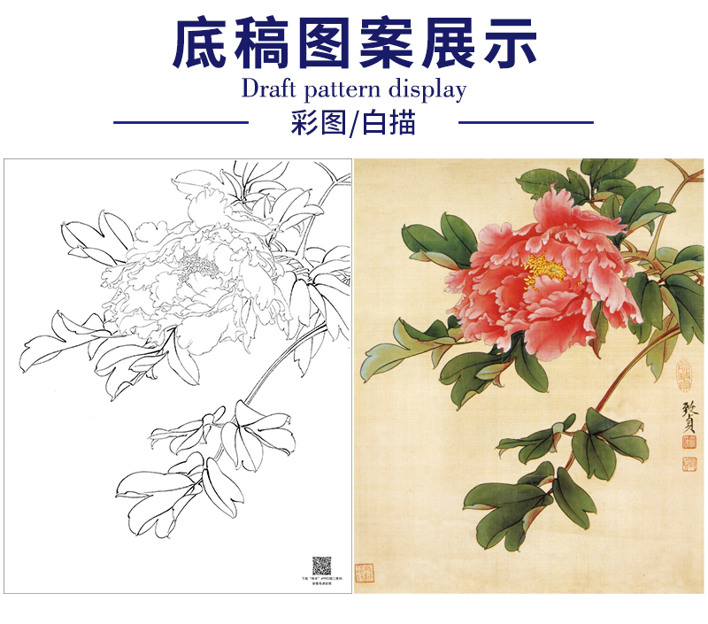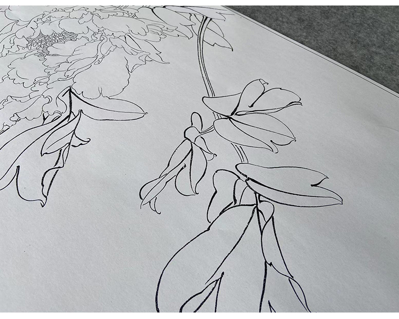 俞致贞工笔画白描底稿牡丹《墨撒金》临摹勾线高清打印稿JV21