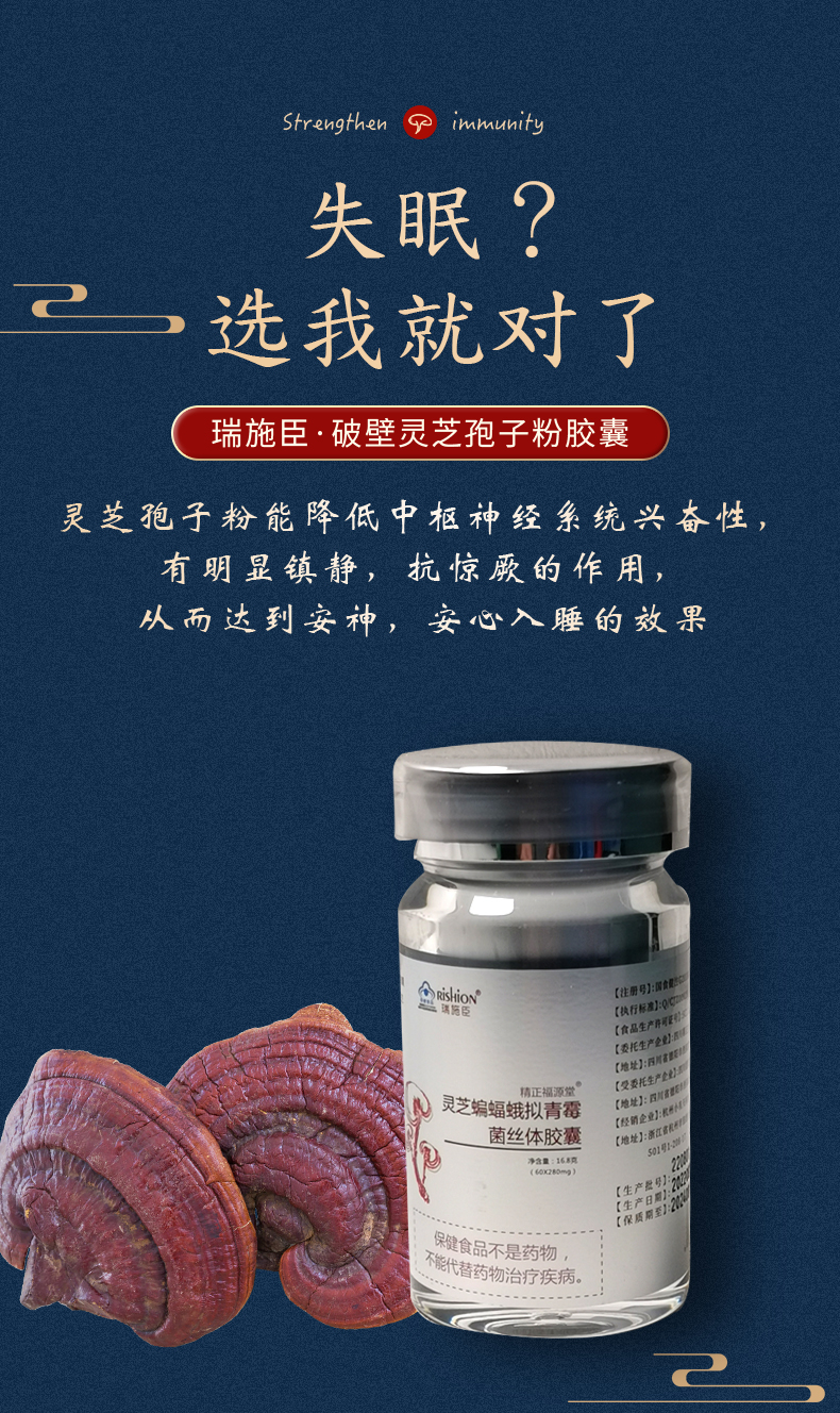 它含有灵芝和冬虫夏草的精华,能提高免疫力,改善睡眠~睡不着,就吃它~