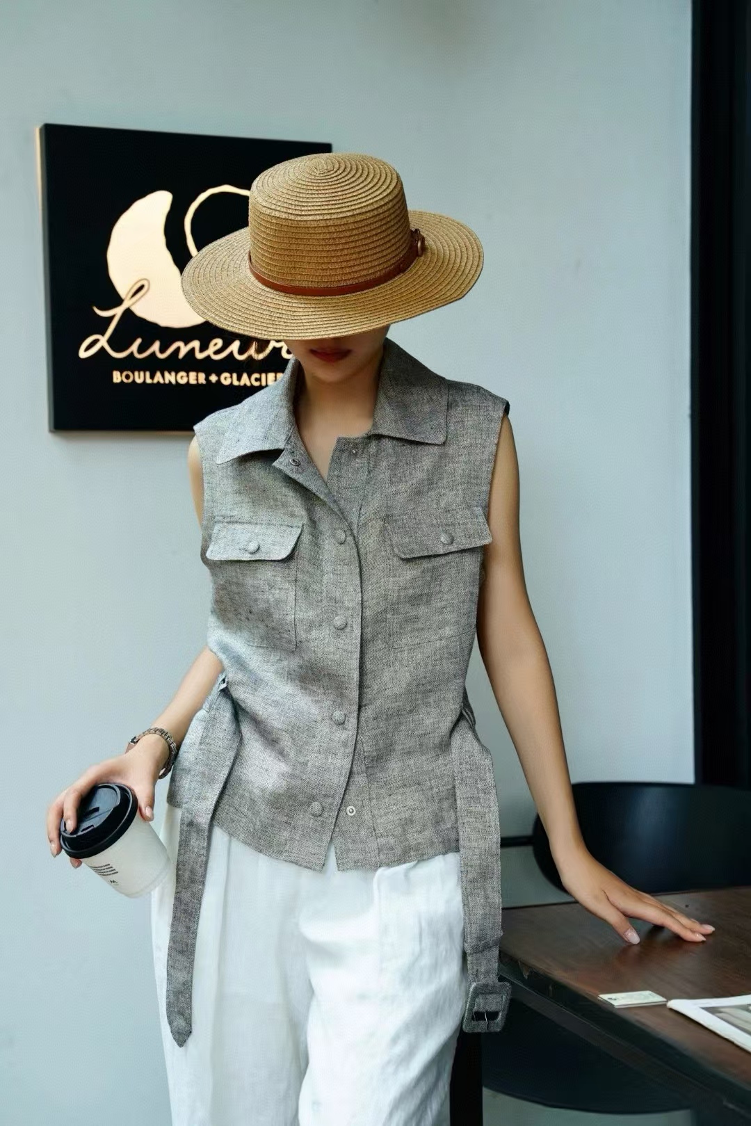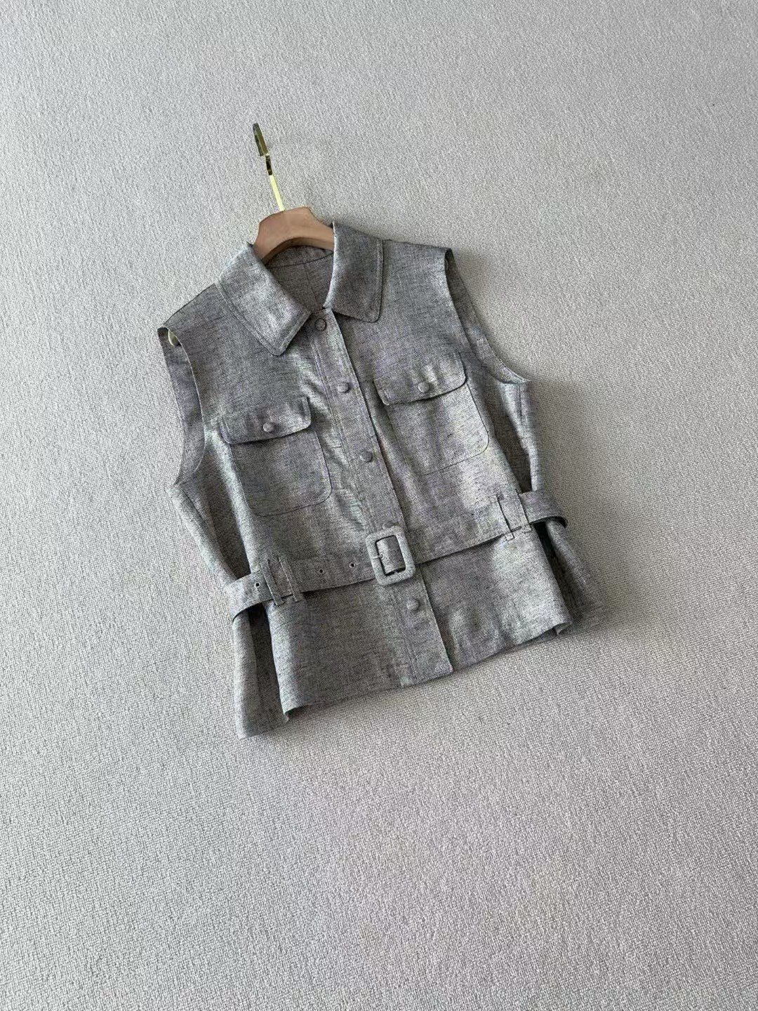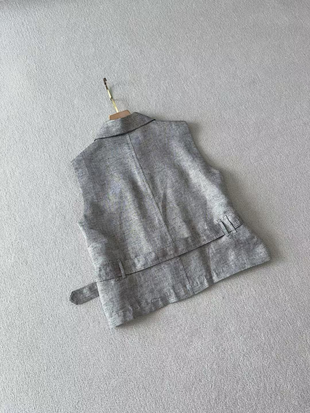 LP*重工亚麻+金丝线无袖腰带马甲,客供进口斜纹亚麻,经过天/然的酵素水洗,织面更纤薄细腻,柔软有筋骨,亚麻纤维织品被誉为"天/然空调",舒适凉爽,天/然特性使其具有良好的吸汗透气性,值得一提的是,面料中加入金丝纱线相互交织而成,布面如繁星闪烁,视觉丰富,质感优雅且篙级,亚麻本身自带的老钱风属性与亮丝的华丽相碰撞 成衣呈现肉眼可见的高奢质感。上身效果chao好看。