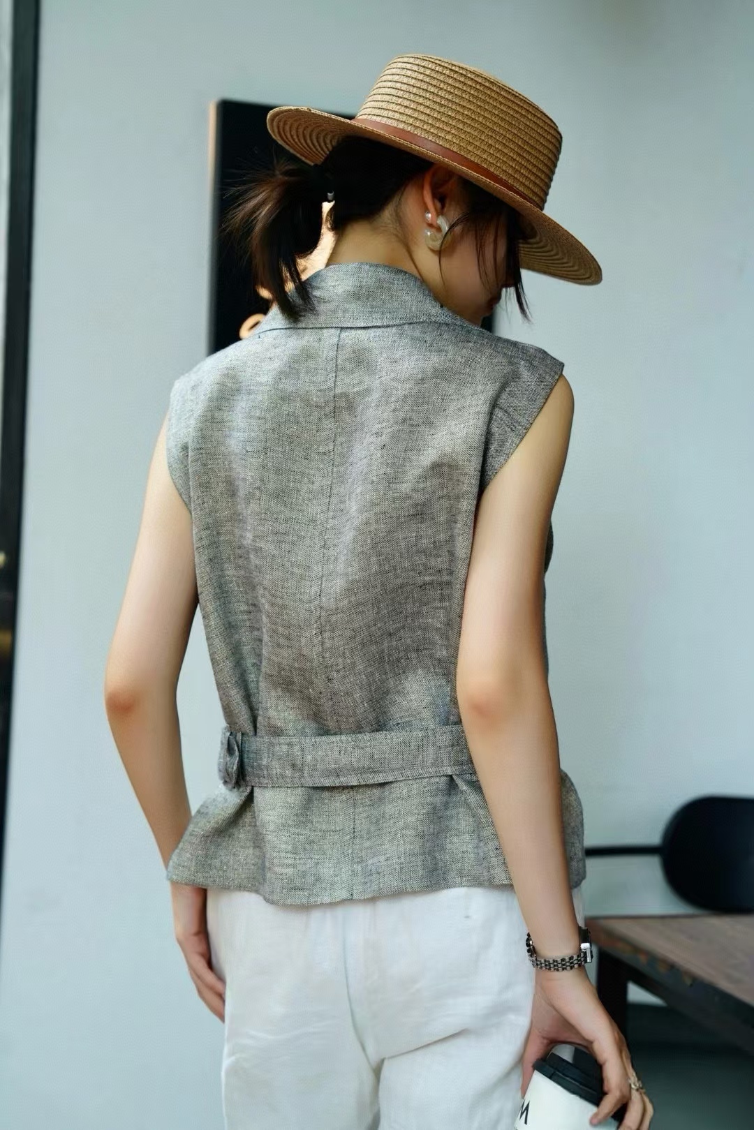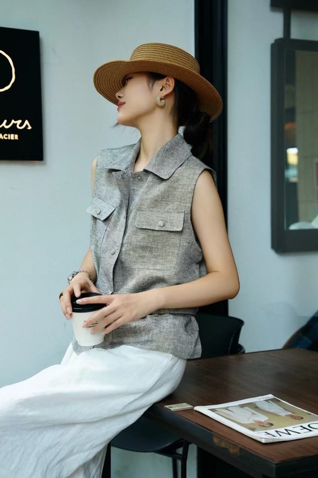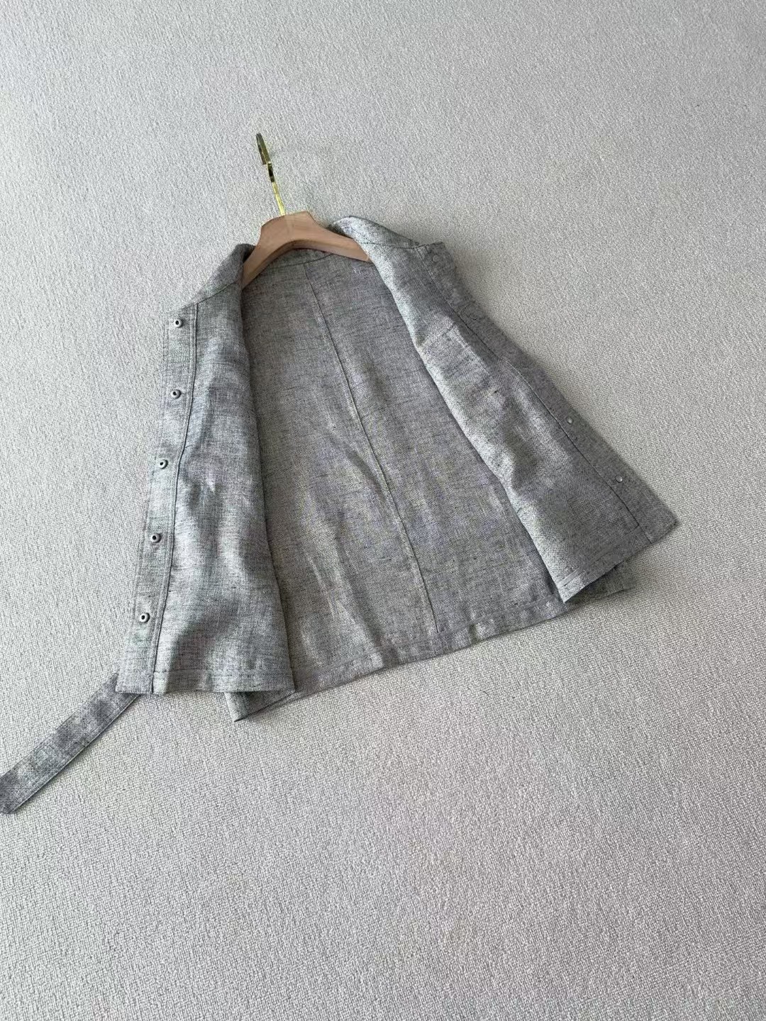 LP*重工亚麻+金丝线无袖腰带马甲,客供进口斜纹亚麻,经过天/然的酵素水洗,织面更纤薄细腻,柔软有筋骨,亚麻纤维织品被誉为"天/然空调",舒适凉爽,天/然特性使其具有良好的吸汗透气性,值得一提的是,面料中加入金丝纱线相互交织而成,布面如繁星闪烁,视觉丰富,质感优雅且篙级,亚麻本身自带的老钱风属性与亮丝的华丽相碰撞 成衣呈现肉眼可见的高奢质感。上身效果chao好看。