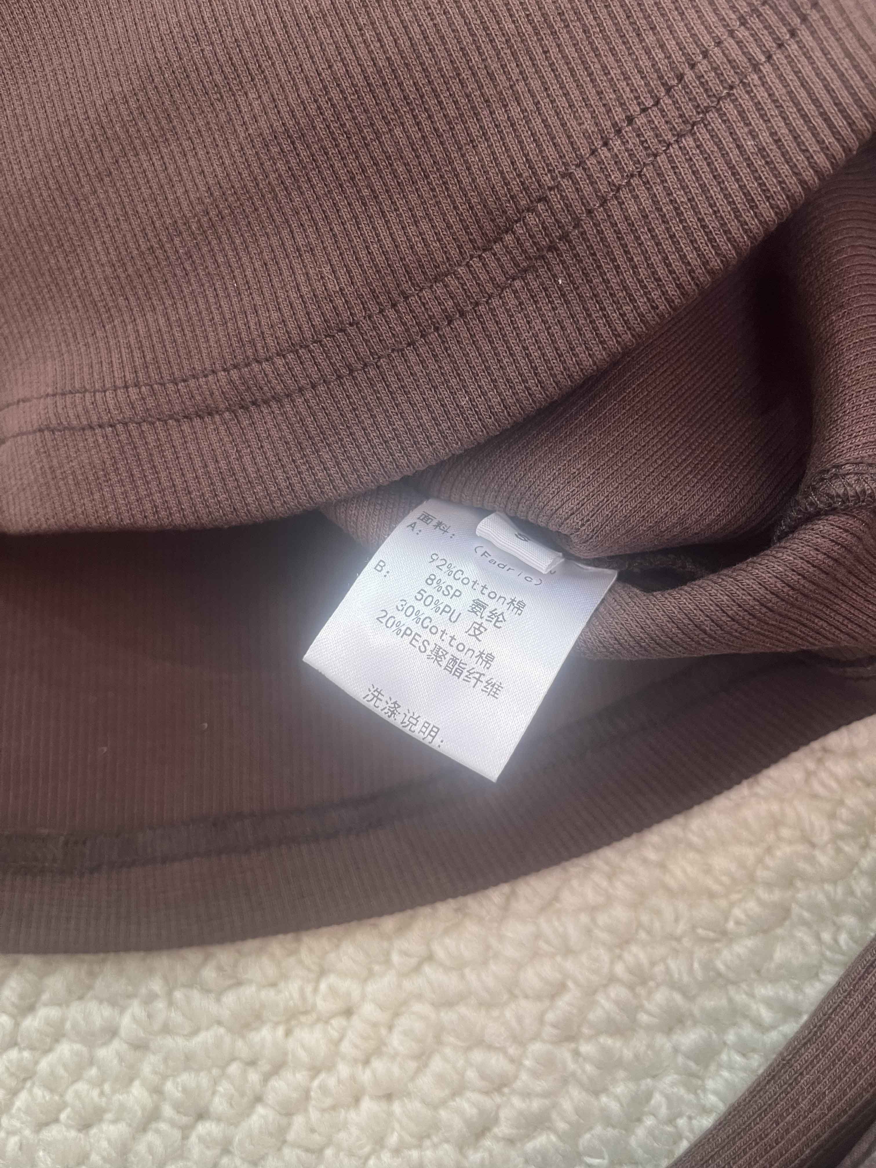 面料A:92%棉 8%氨纶 面料B:50%PU皮30%棉20%聚酯纤维