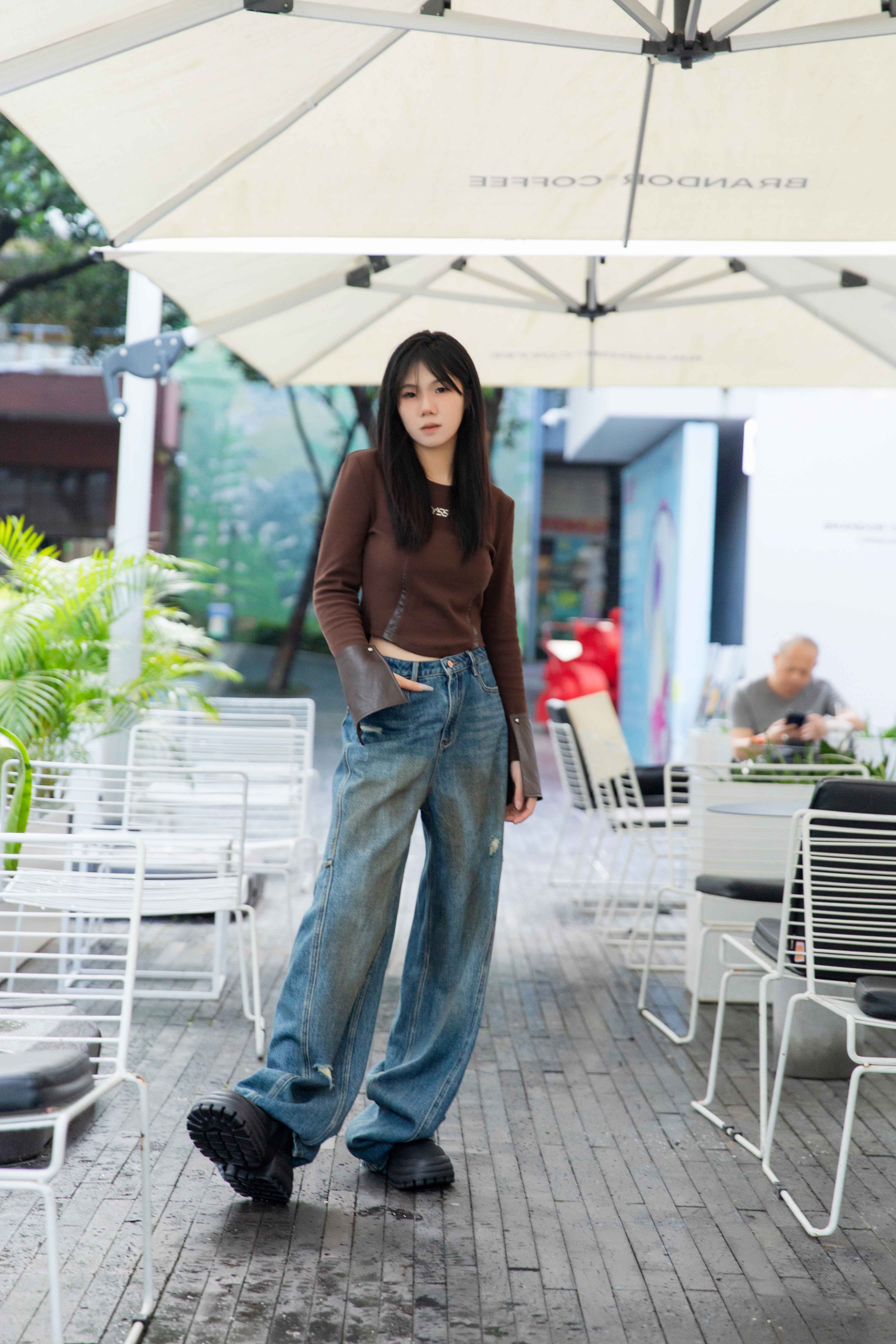 拼皮坑条针织上衣——时尚酷girl,pick这件上衣,是时候换种风格了