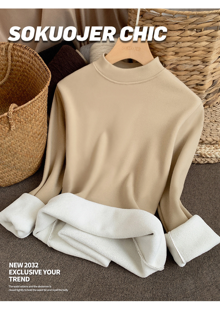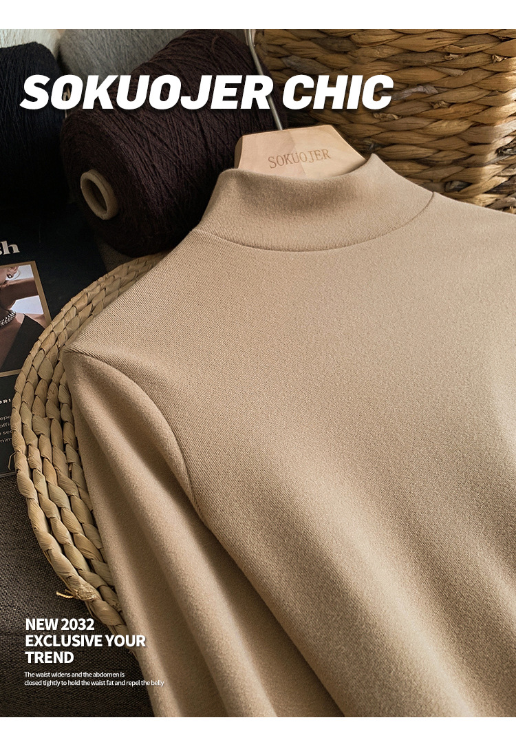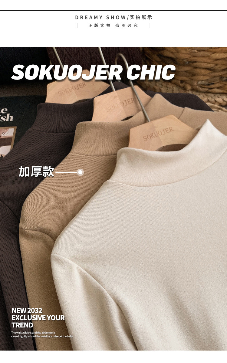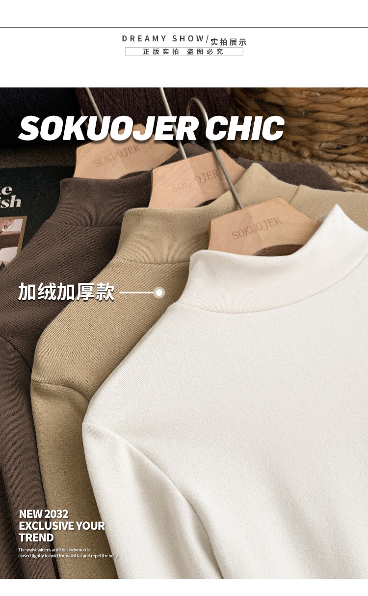 【双面磨毛!柔软舒适】高品质软糯半高领打底衫女秋冬修身显瘦长袖t恤内搭上衣。ha