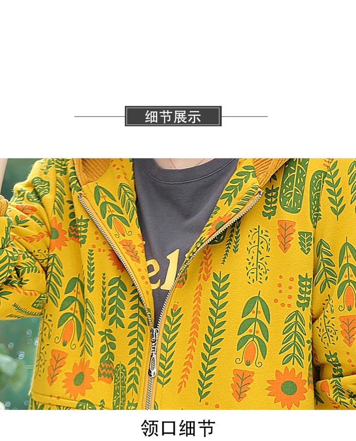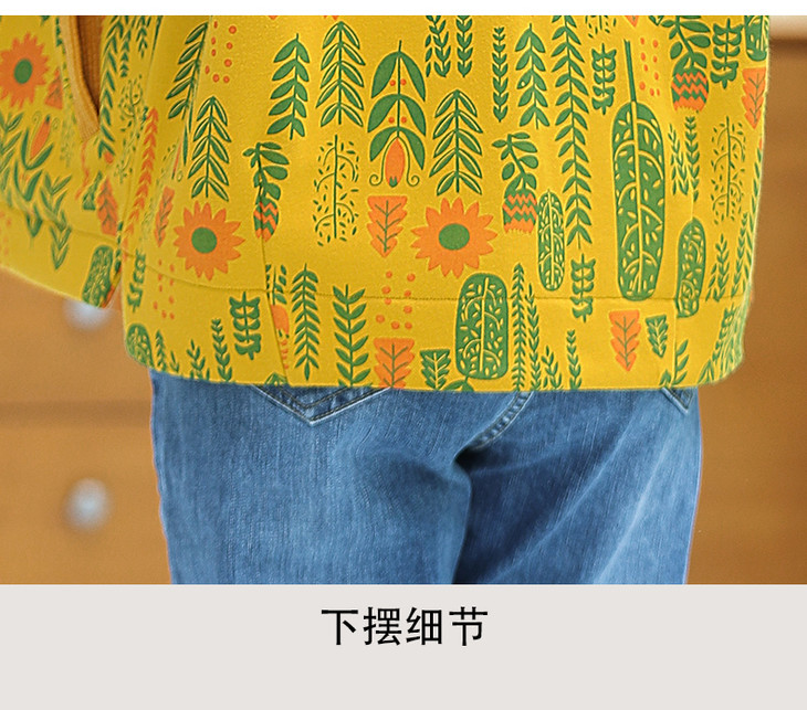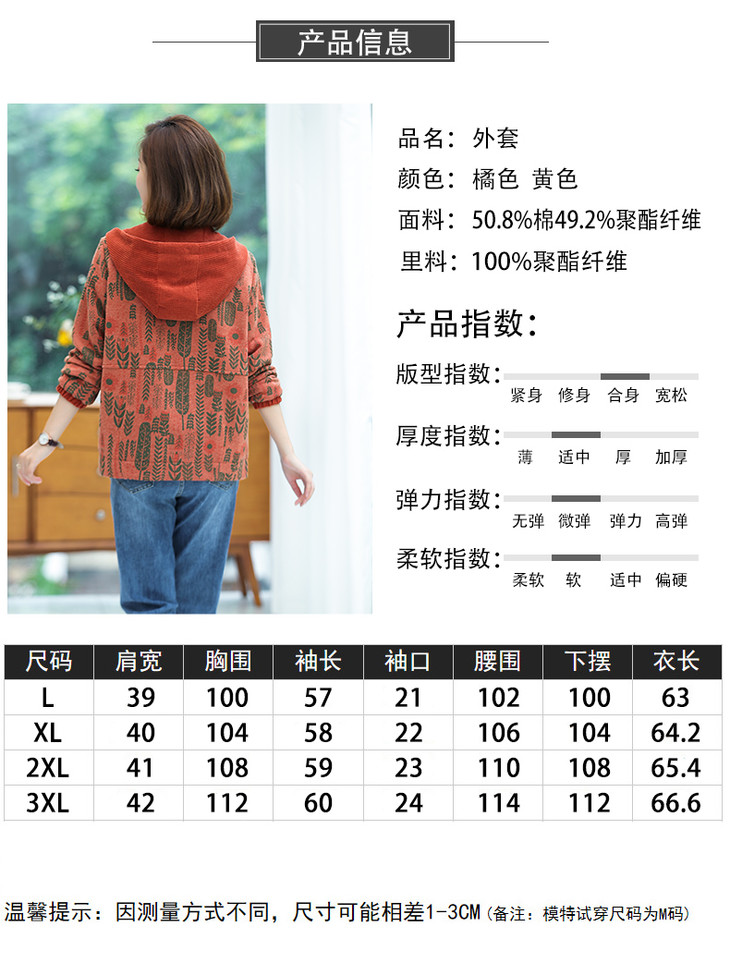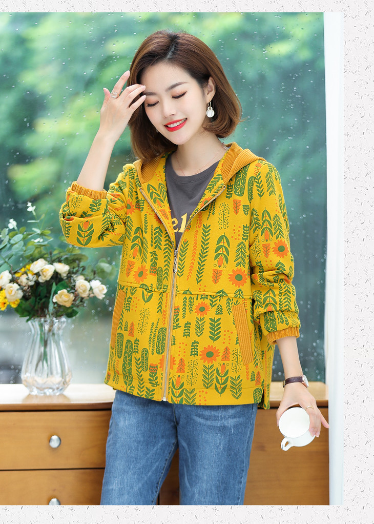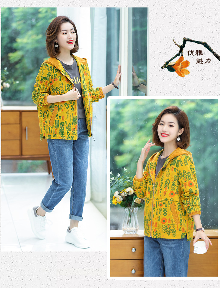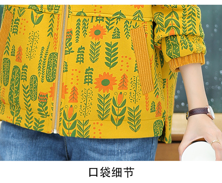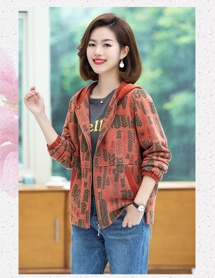 JS22A花色外套女春秋新款大码宽松休闲针织拼接连帽中老年洋气卫衣