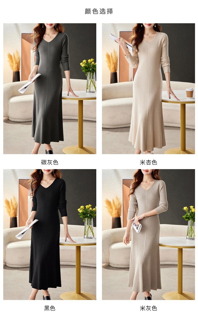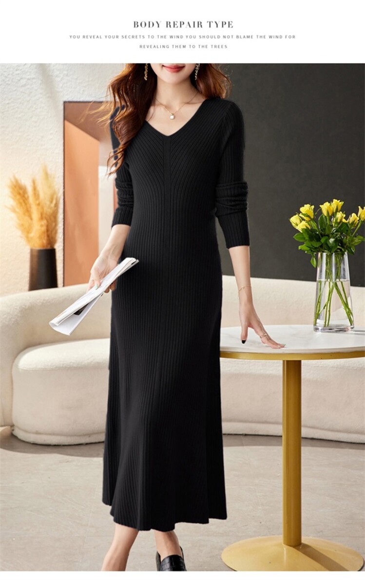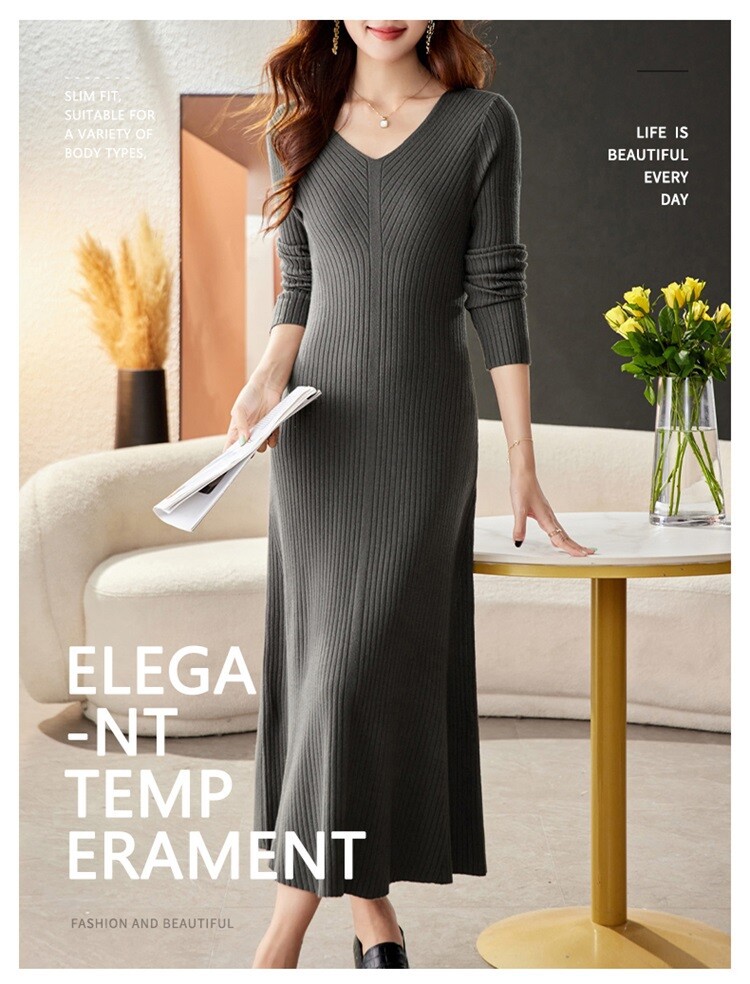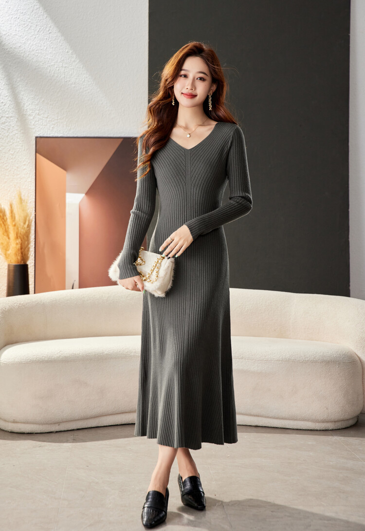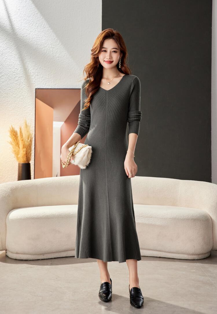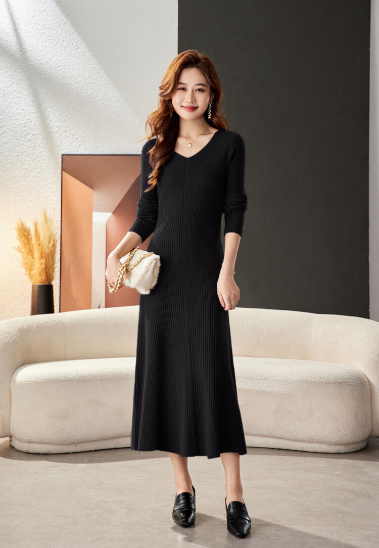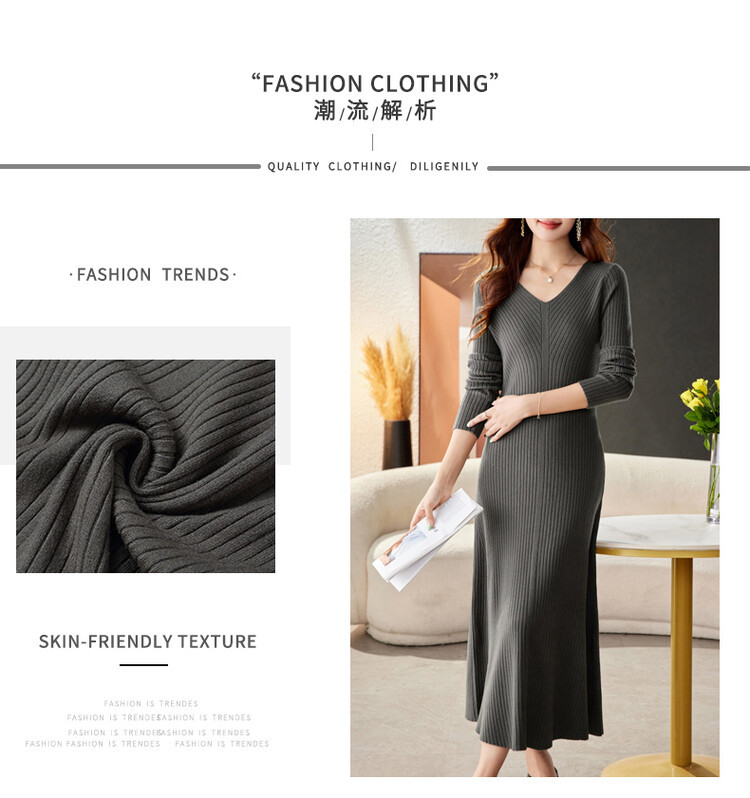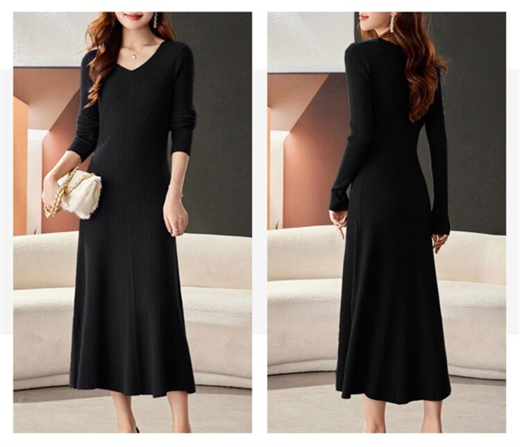 QY 9176针织连衣裙秋冬长款2024新款修身淑女长裙毛衣裙