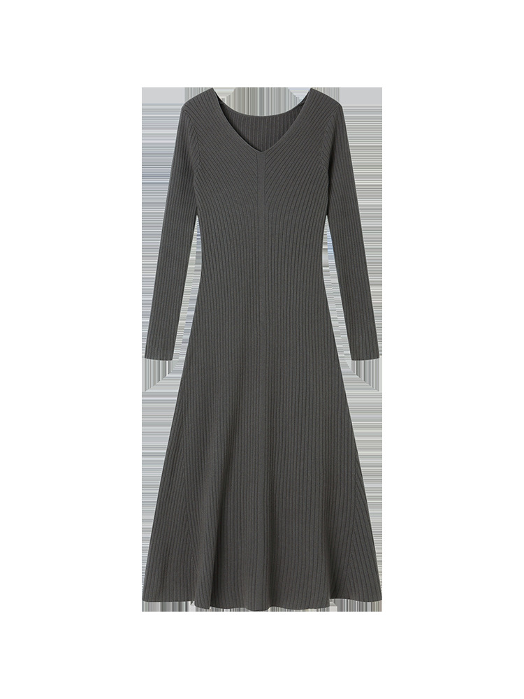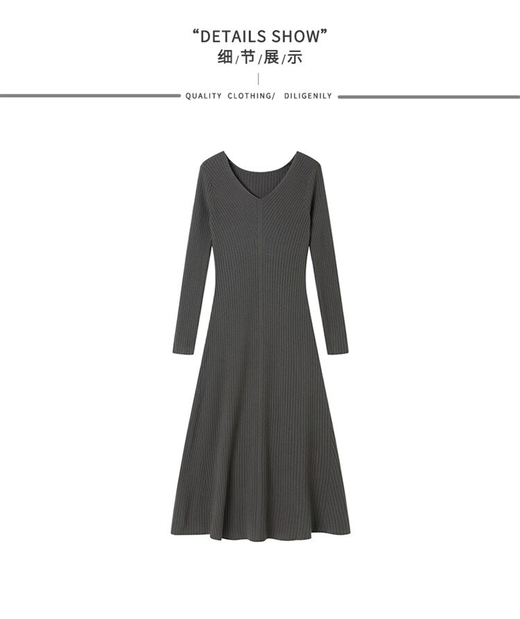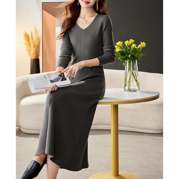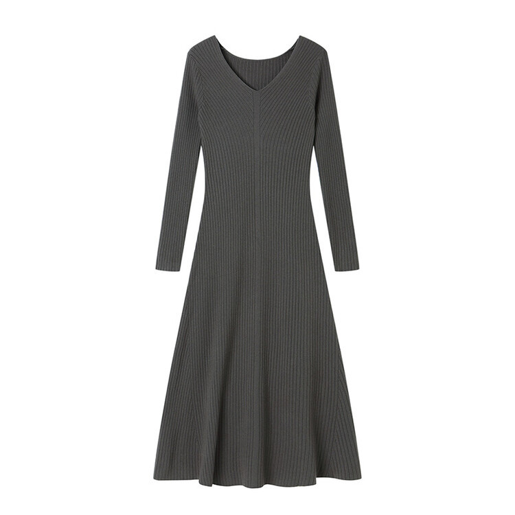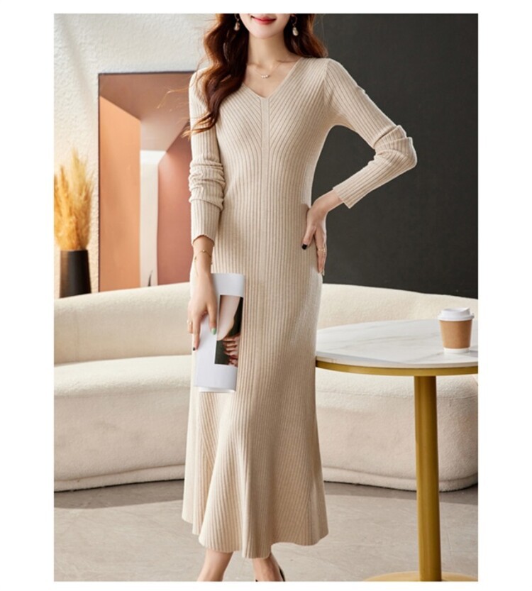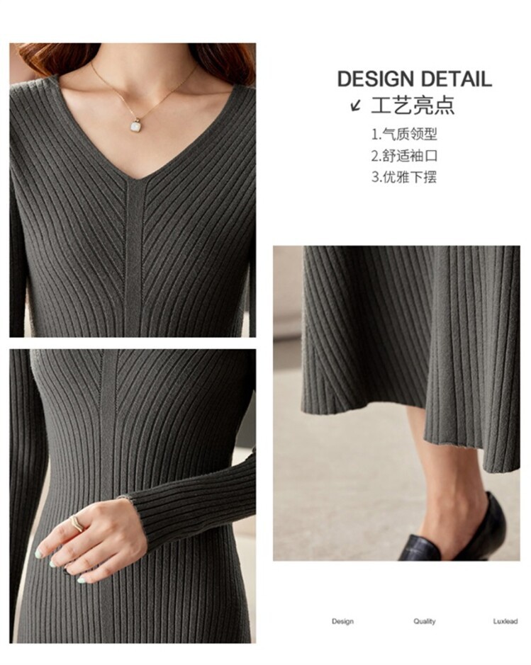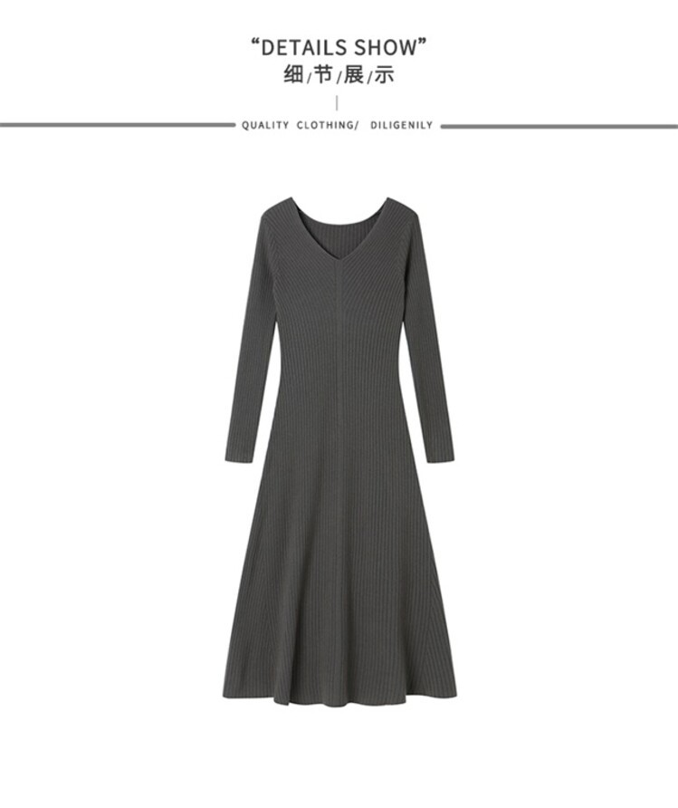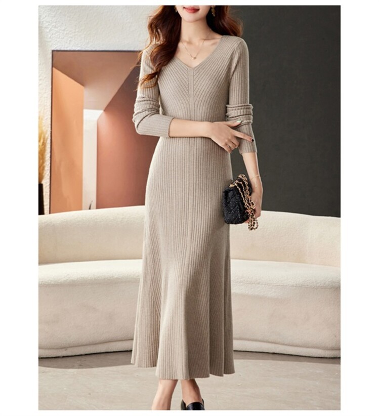 QY 9176针织连衣裙秋冬长款2024新款修身淑女长裙毛衣裙