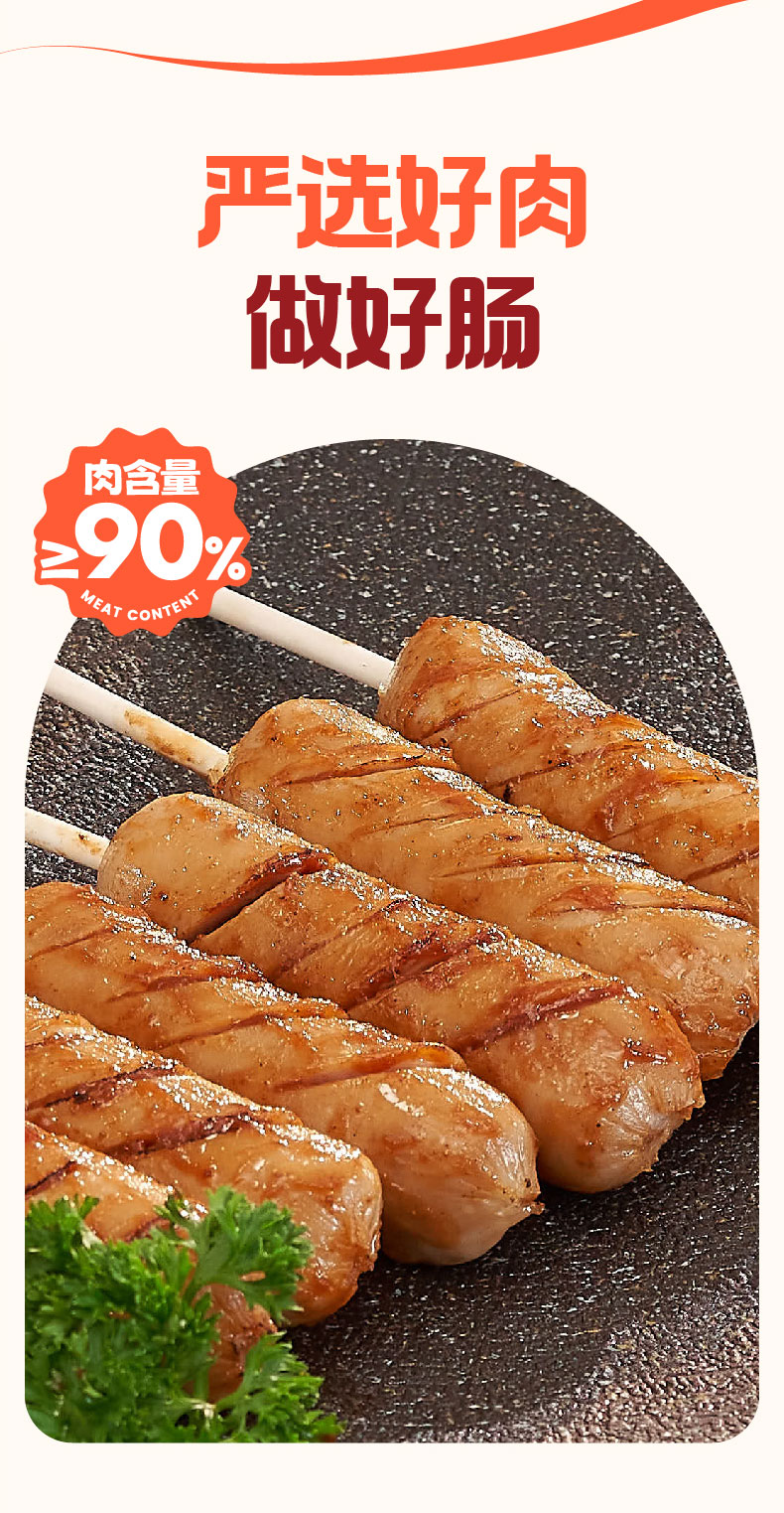 3. 肉含量高,肉含量≥86%,肥瘦比1:9,肉量足,不油腻