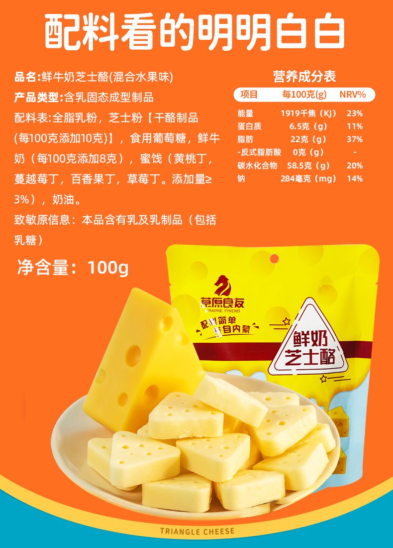 鲜牛奶芝士酪 添加牛奶+芝士 芝士浓香 口感软糯不腻 每100g添加10克芝士粉