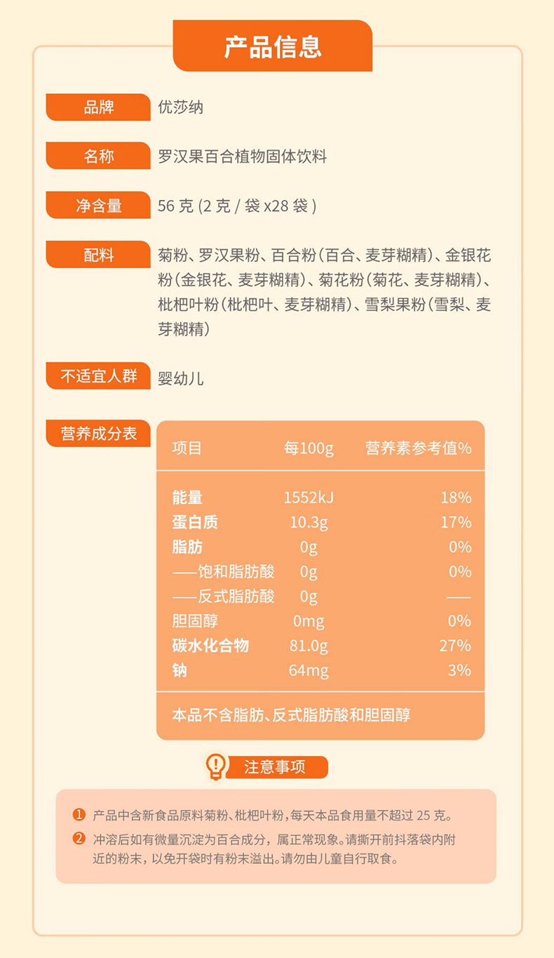 优莎纳罗汉果百合植物固体饮料56克(2g*28袋)