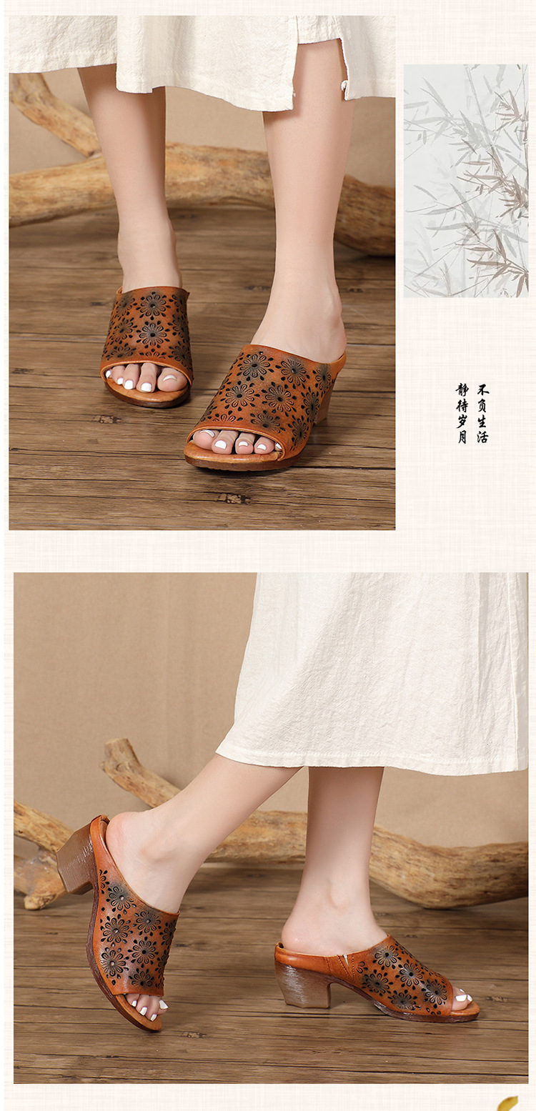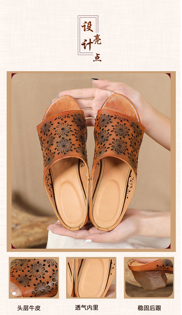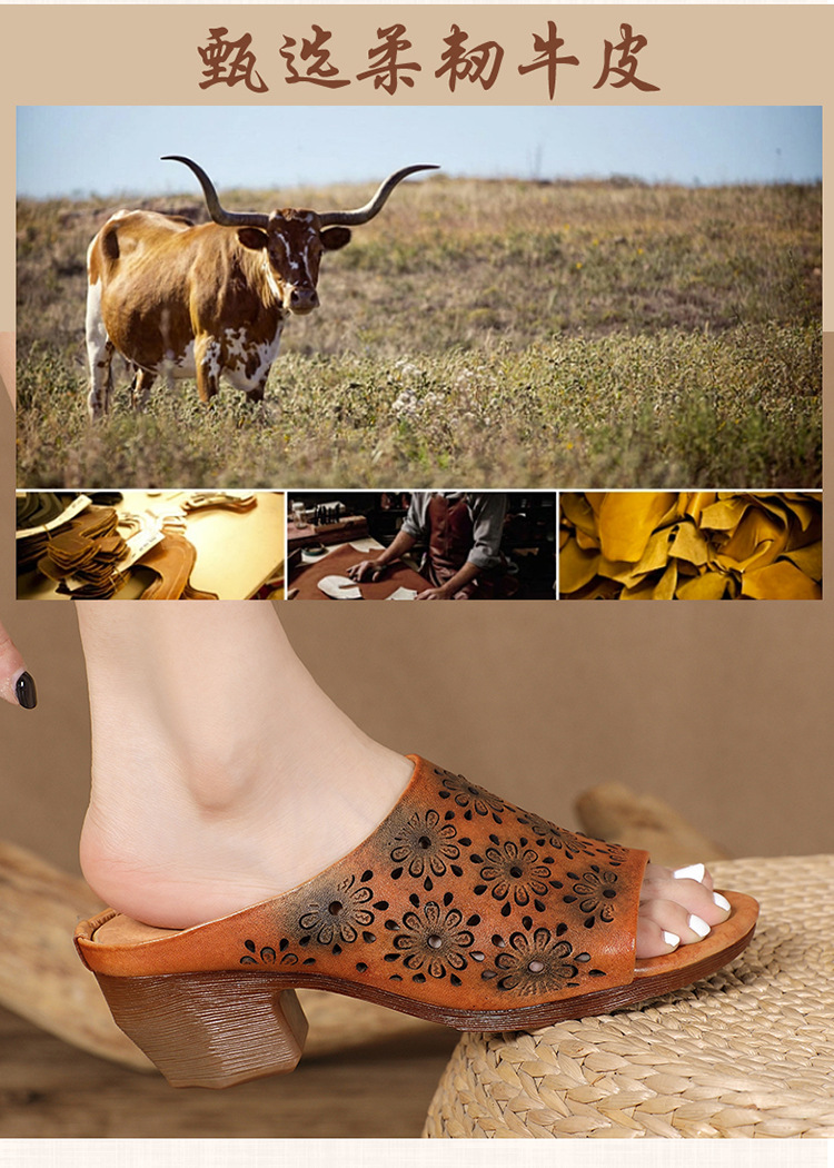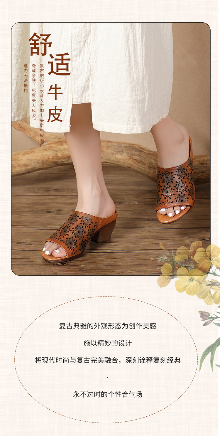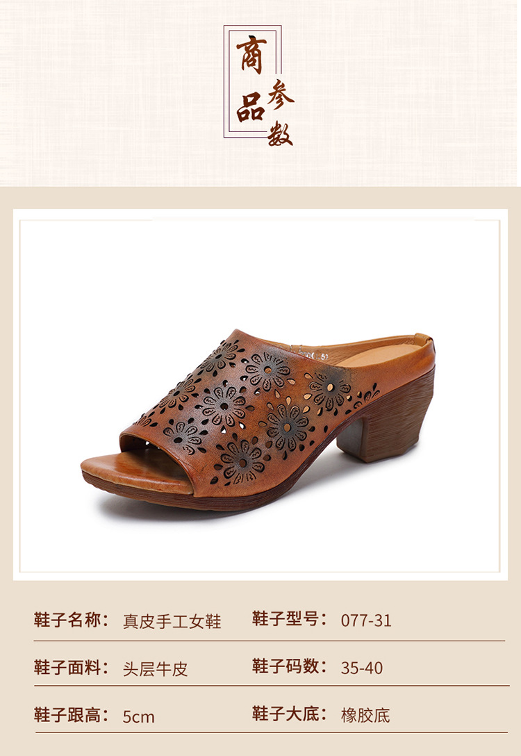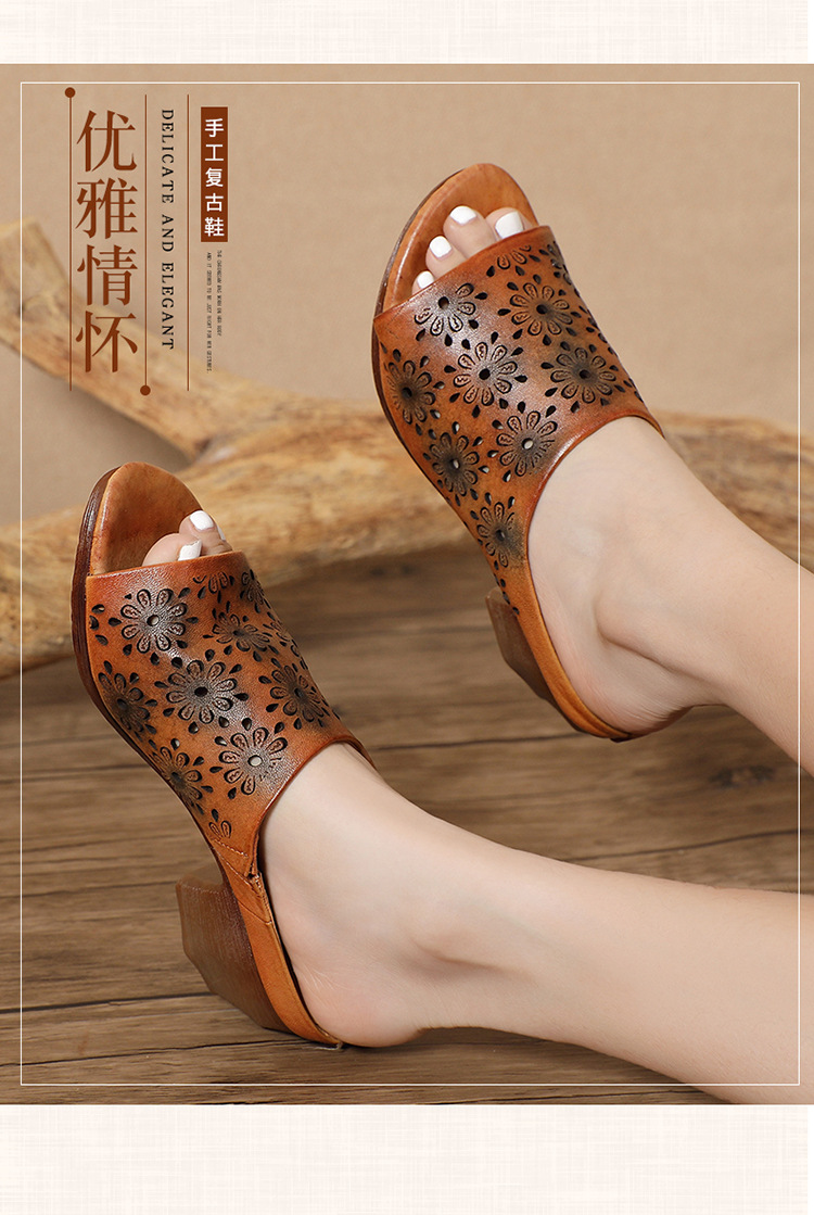 手工女鞋高跟鱼嘴拖鞋,民族风镂空真皮拖鞋BC-038-36