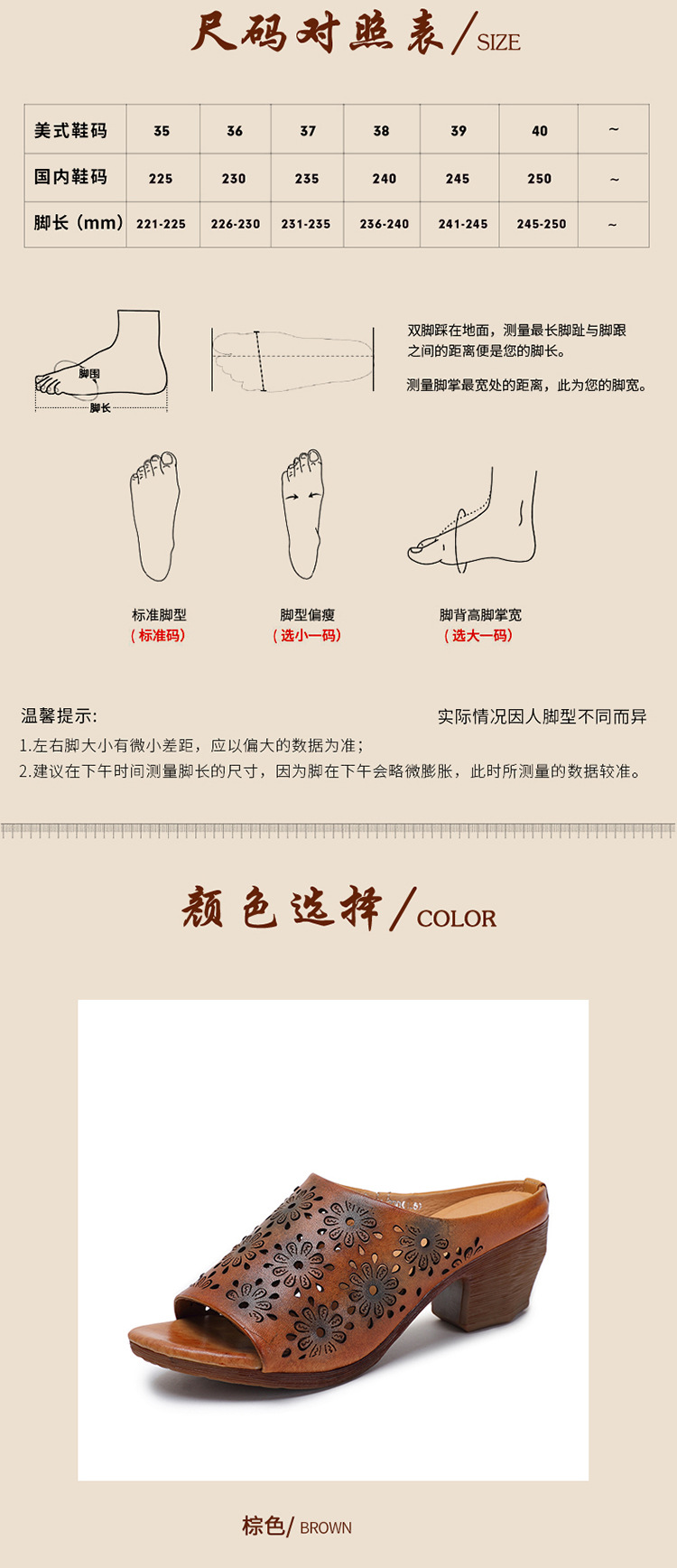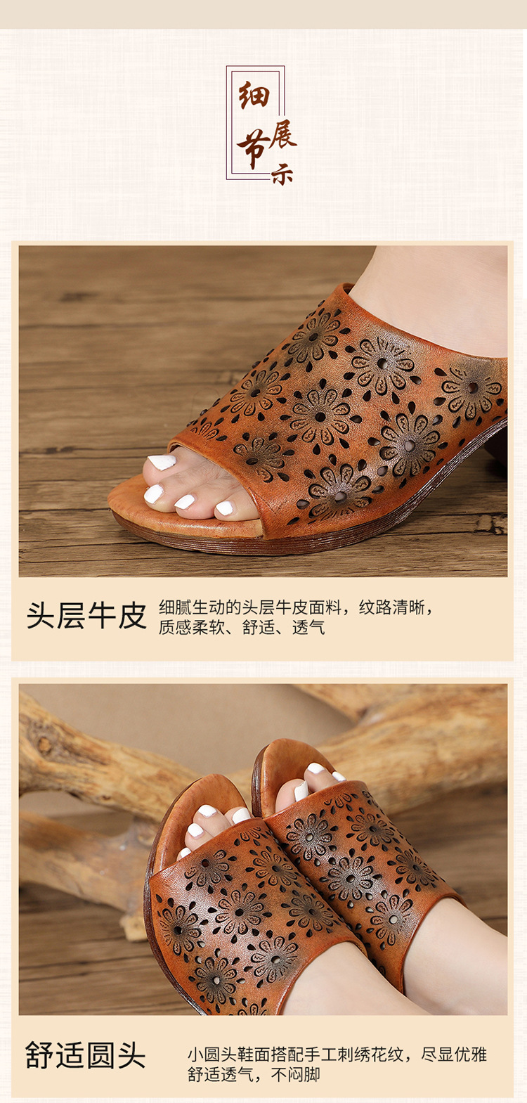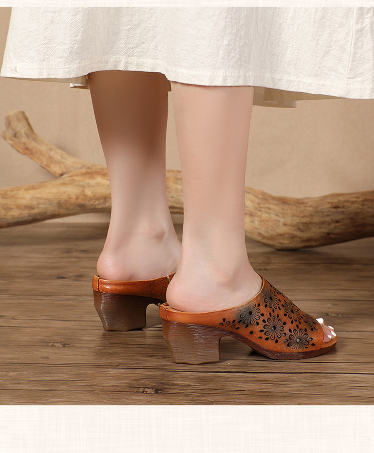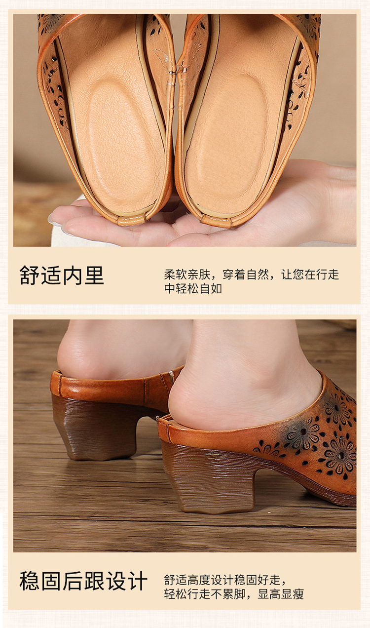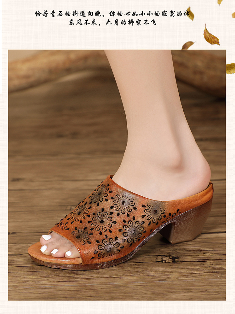 手工女鞋高跟鱼嘴拖鞋,民族风镂空真皮拖鞋BC-038-36