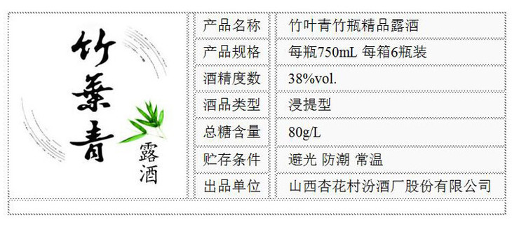 【推荐】竹叶青 38度精品露酒 750mL 山西杏花村汾酒白酒