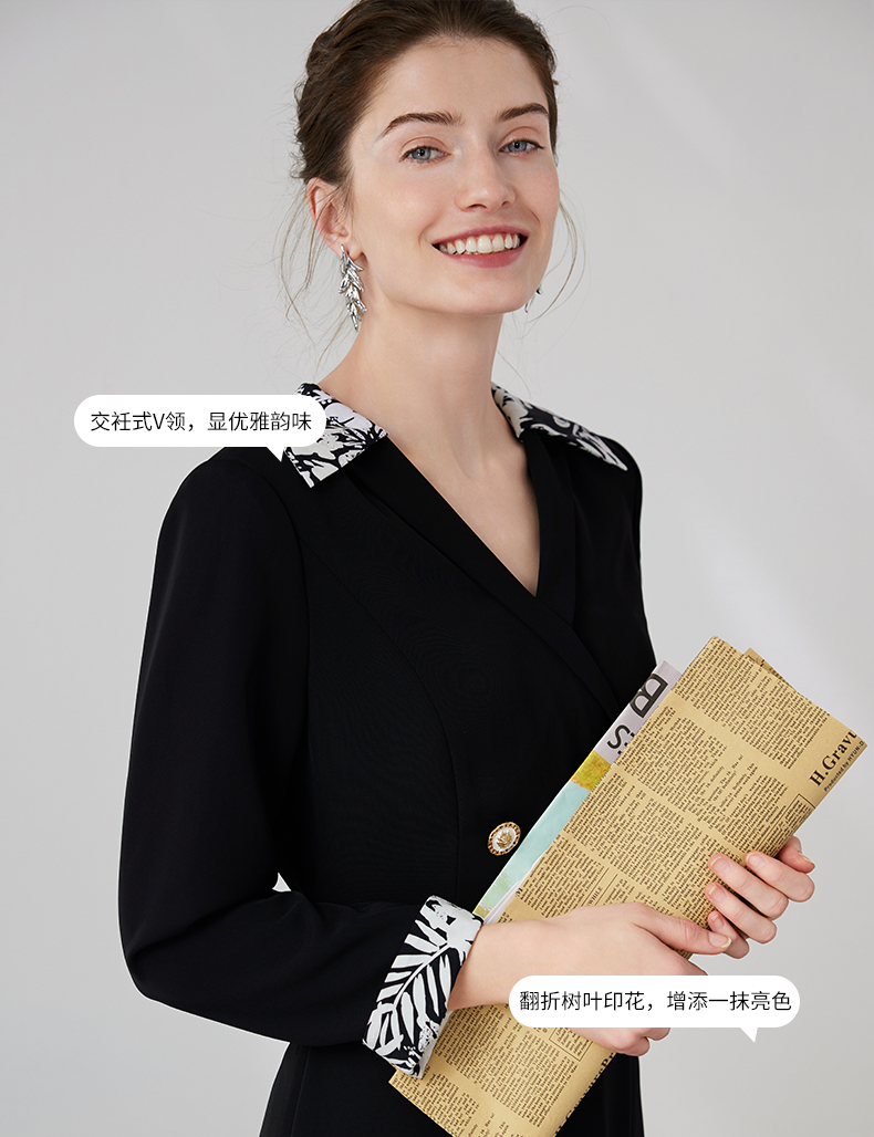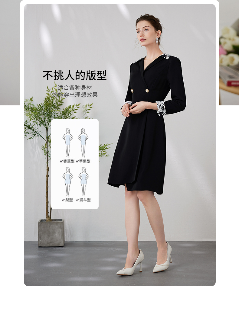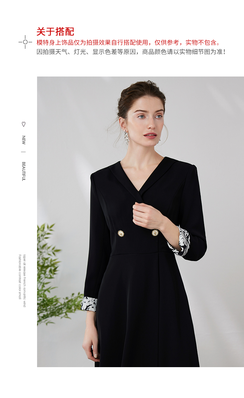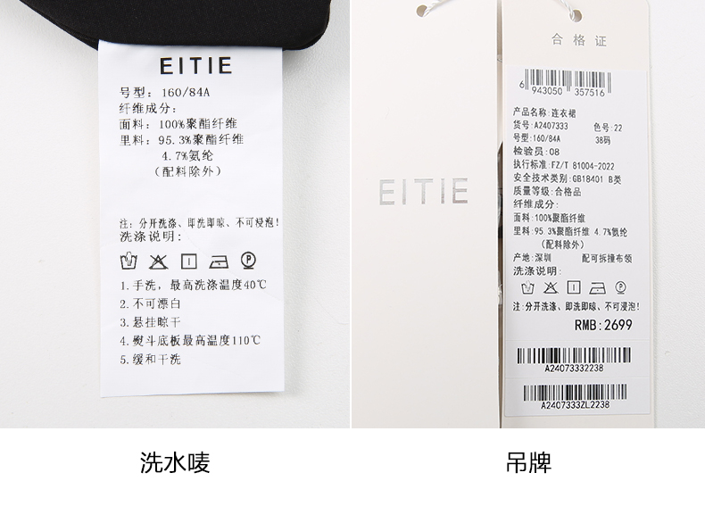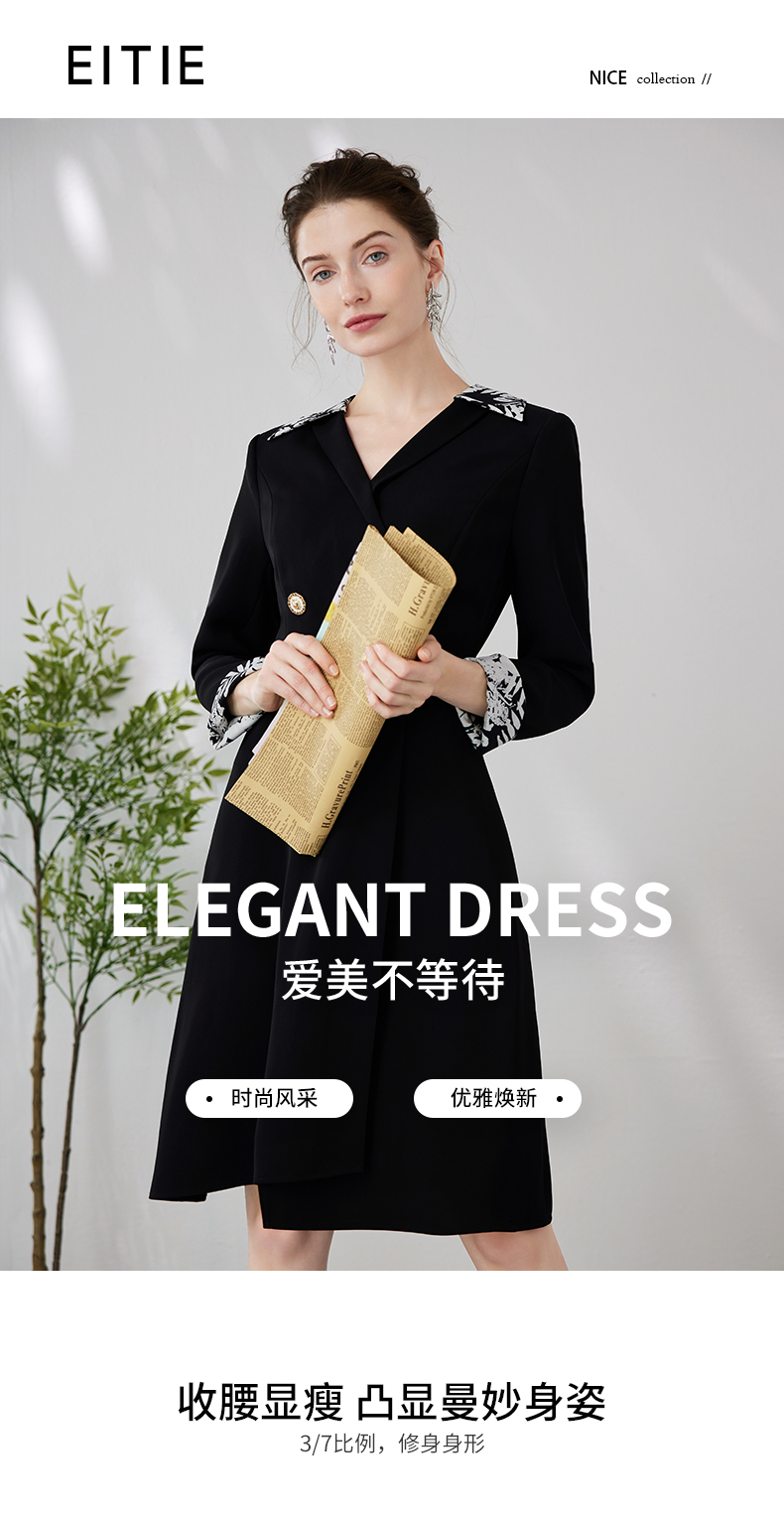 EITIE爱特爱春季新款气质时尚通勤高腰拼接连衣裙A2407333