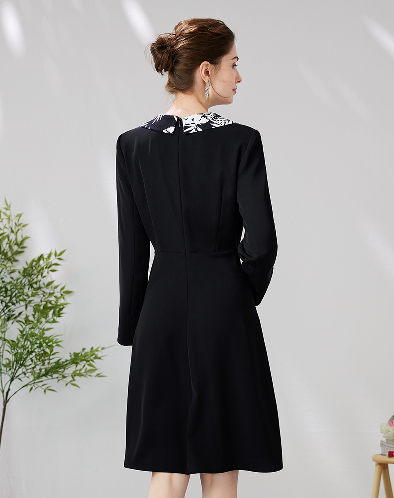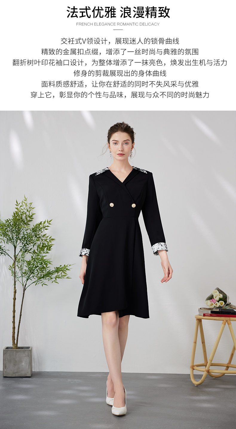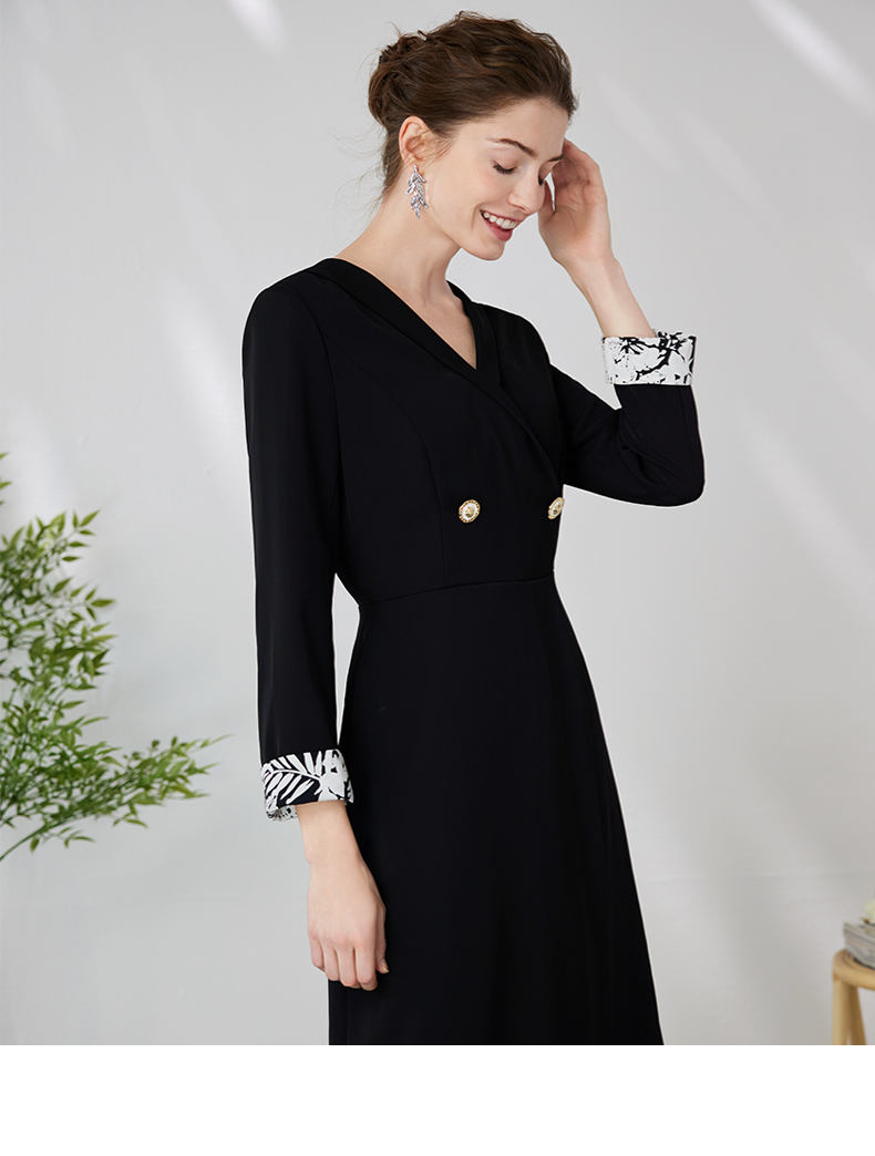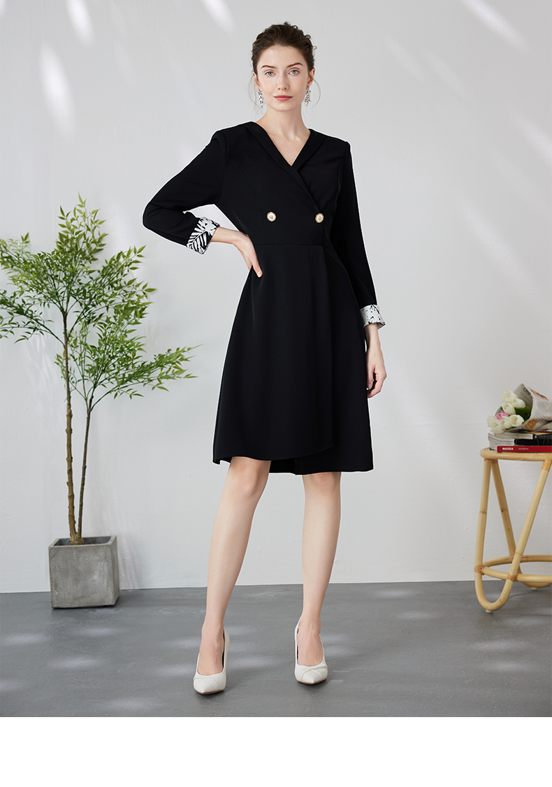 EITIE爱特爱春季新款气质时尚通勤高腰拼接连衣裙A2407333