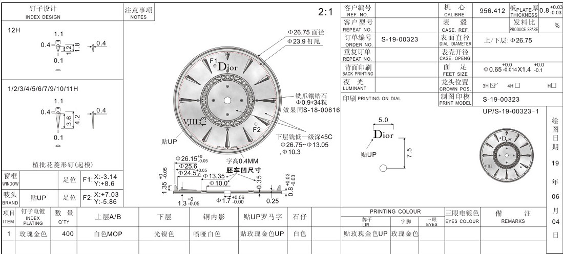 💰2590 D家钻石贝母表 价格不便宜,但是这个不是假货或者什么版本的,划重点,这是如假包退的zheng品!可以随便去表行,或者什么支持你验货的zheng品机芯。里面都是贝母材质,很高级,配合着真钻,正如品牌定位一般,这块表很Di奥 十分的名媛!手表最重要的还是机芯 瑞士956.412机芯、你不懂没关系,收到以后找个懂的人去验就行了🧐来吧,细看一下细节,长短可以随意裁,去表行师傅那里调节即可。这块给人的感觉就是很大方,很贵的感觉。银色搭上贝母,清清冷冷 完全是那种性冷淡风,里面的一小圈真钻 低调却又透露着贵气。表盘内里是贝母材质、这种原装的贝母材料一块都要500来块钱,真钻的价格就更不用说了。工厂的一些制单图大家可以看一下