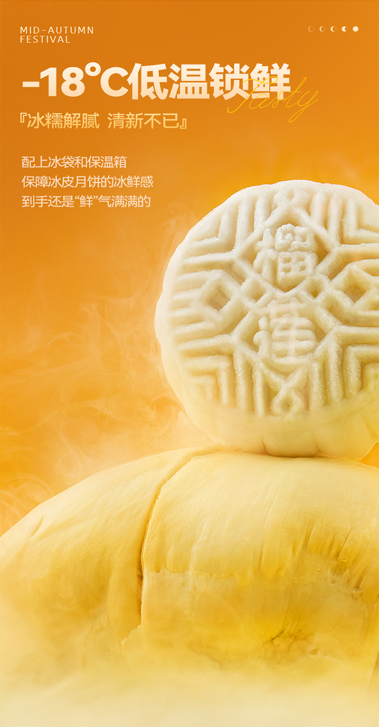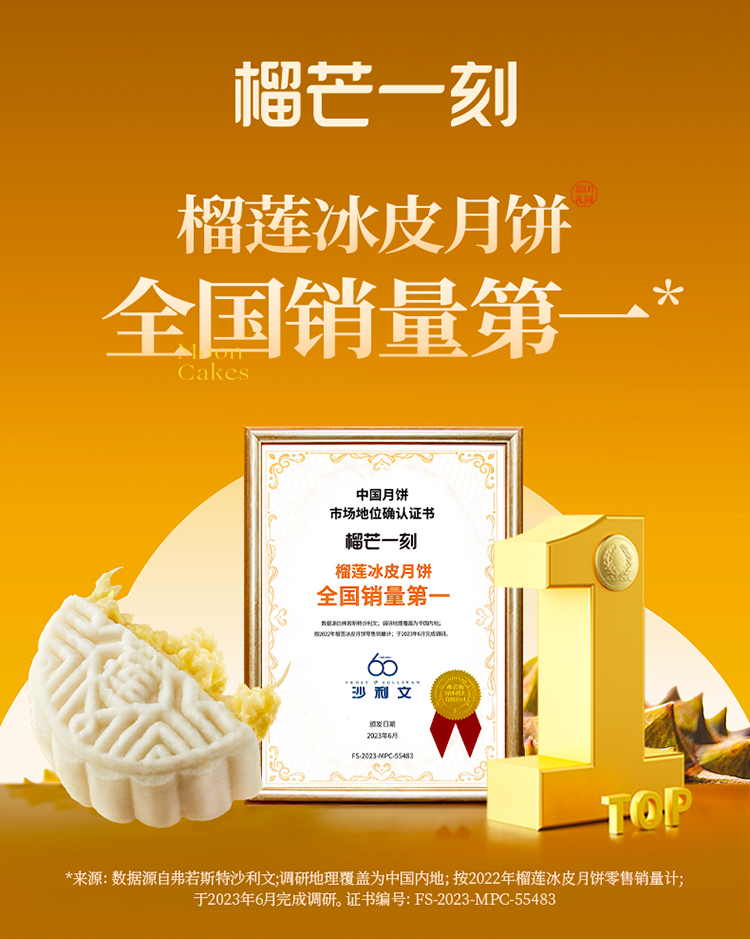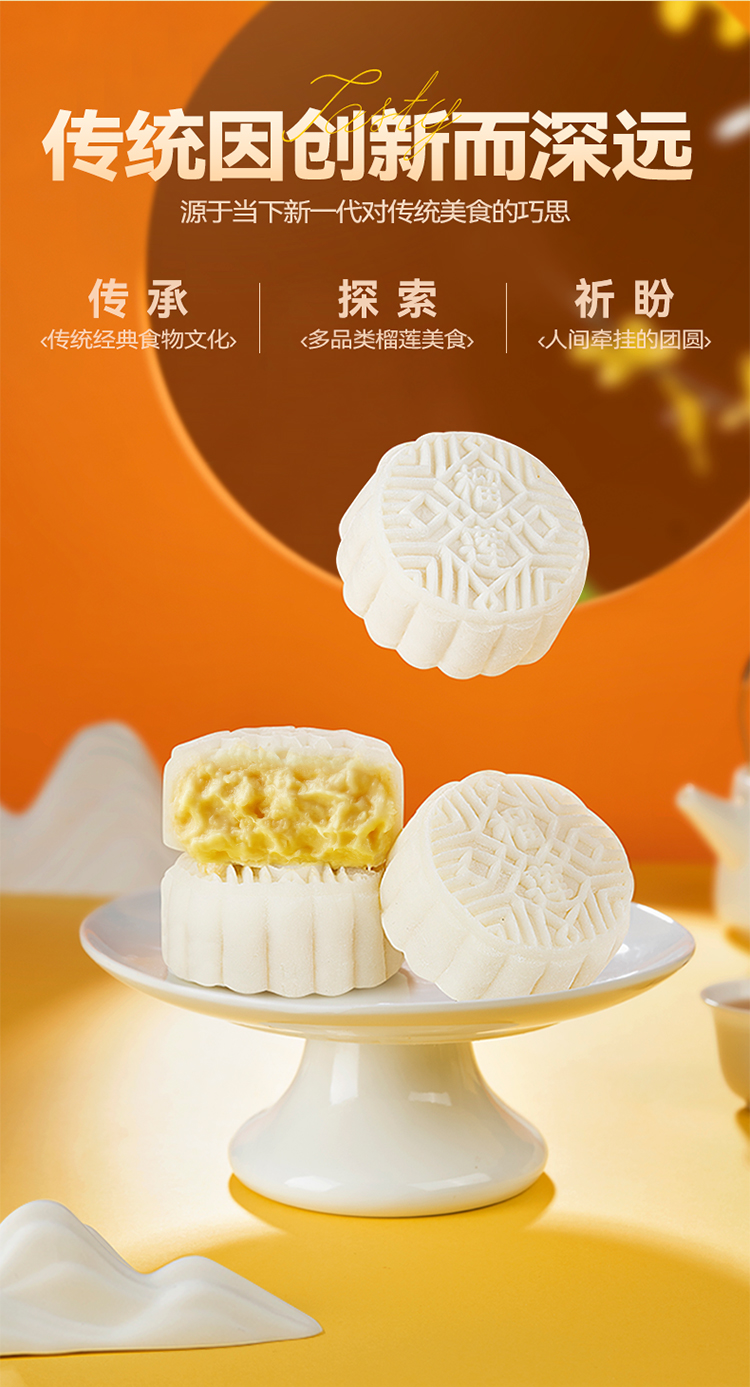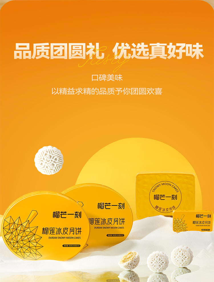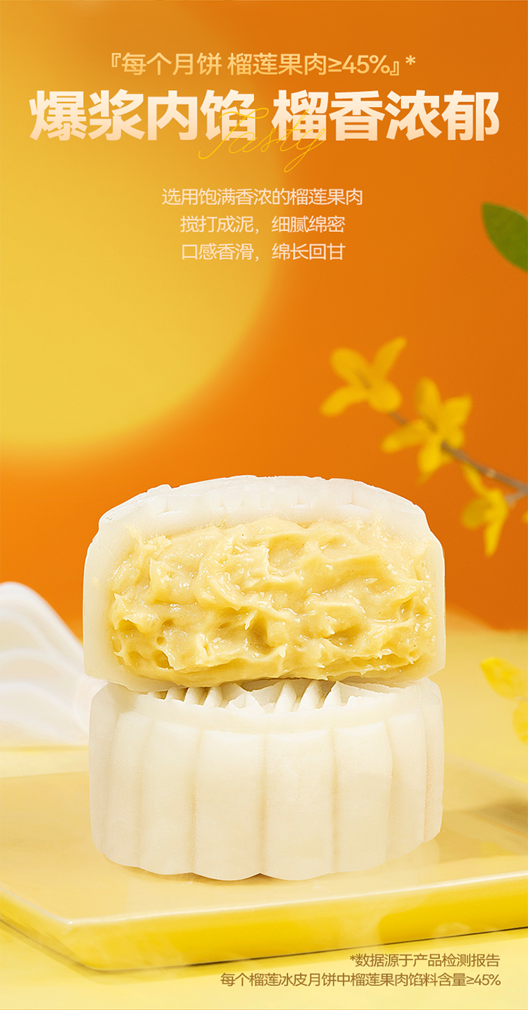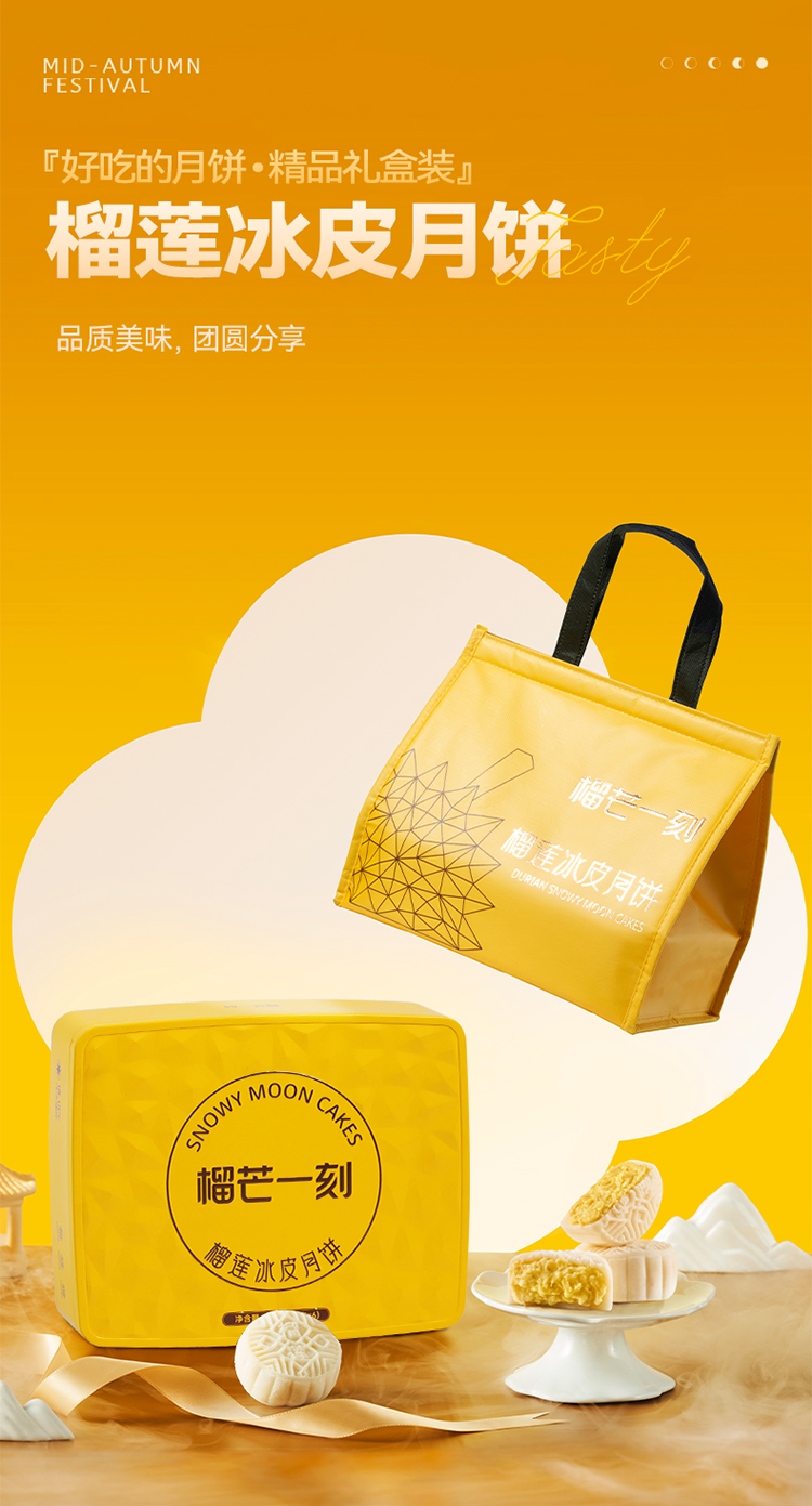 【榴芒一刻 】冰皮爆浆月饼礼盒装 榴莲冰皮月饼480克(80克*6)