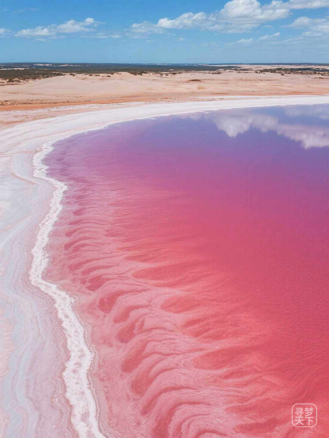 梦幻色彩:赫特粉红盐湖用无人机俯瞰粉色涟漪与盐滩纹路;玛格丽特河酒庄的葡萄藤与海岸线交织成油画般景致。