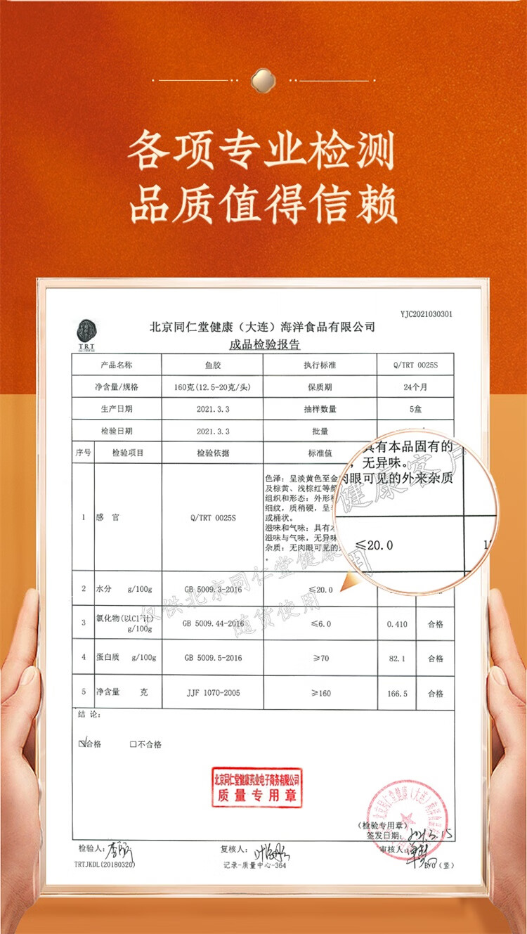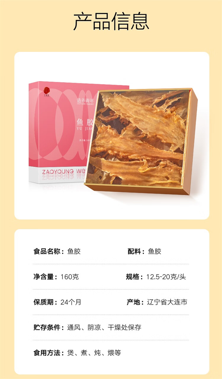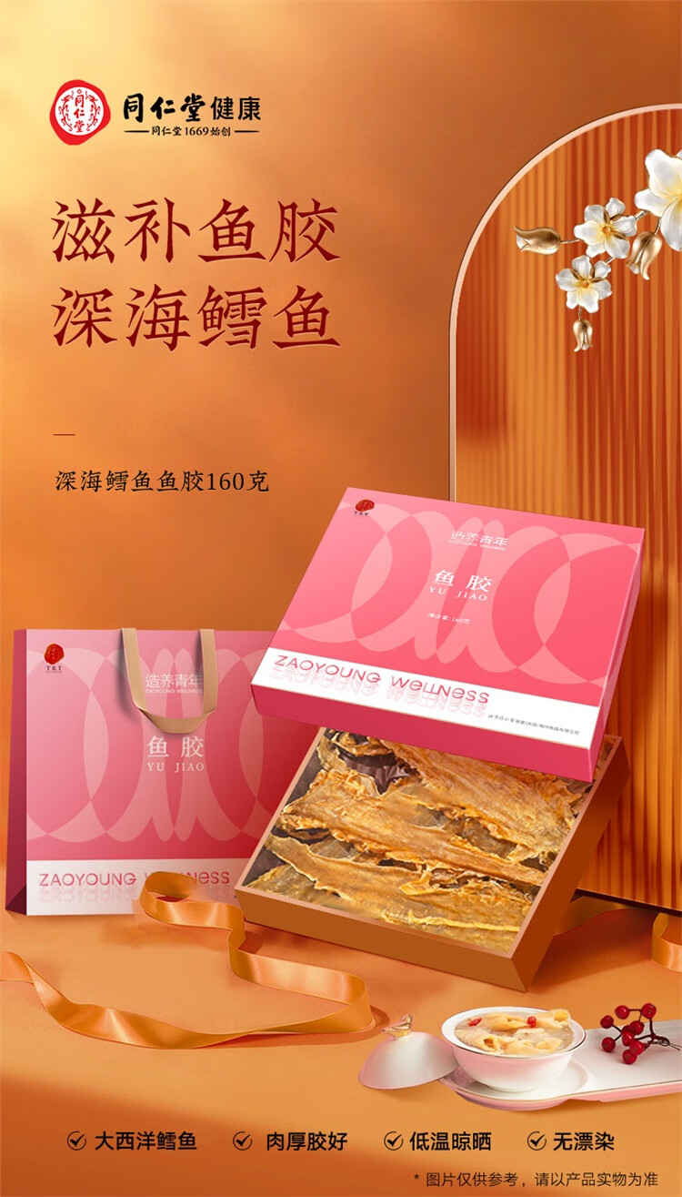 【正宗同仁堂品牌】北京同仁堂 花胶160g 礼盒装 深海鳕鱼 片状完整 充分膨胀 爽弹嫩滑 SY