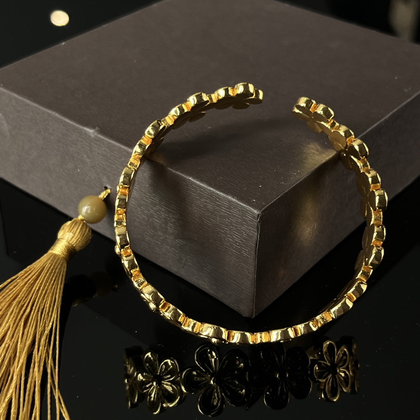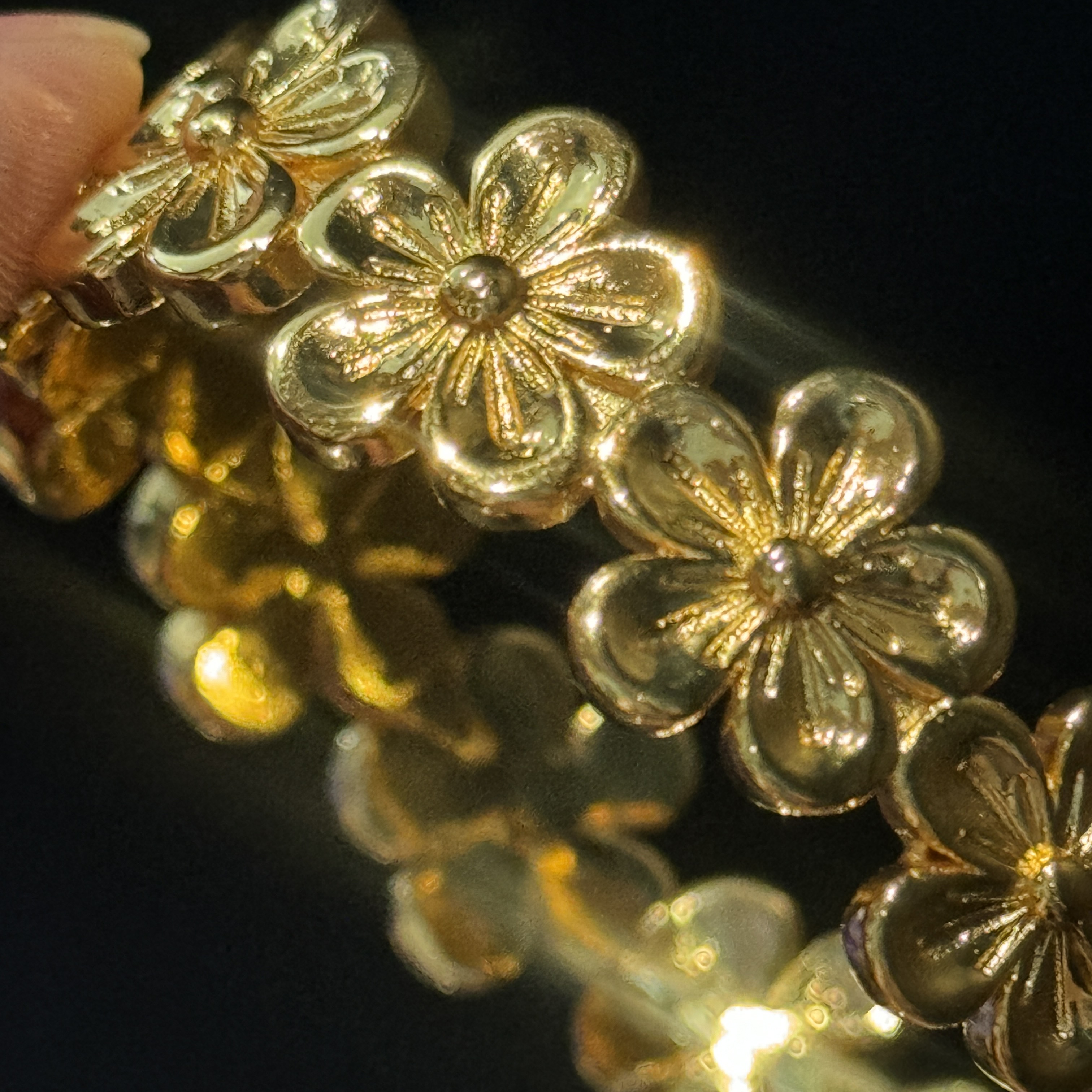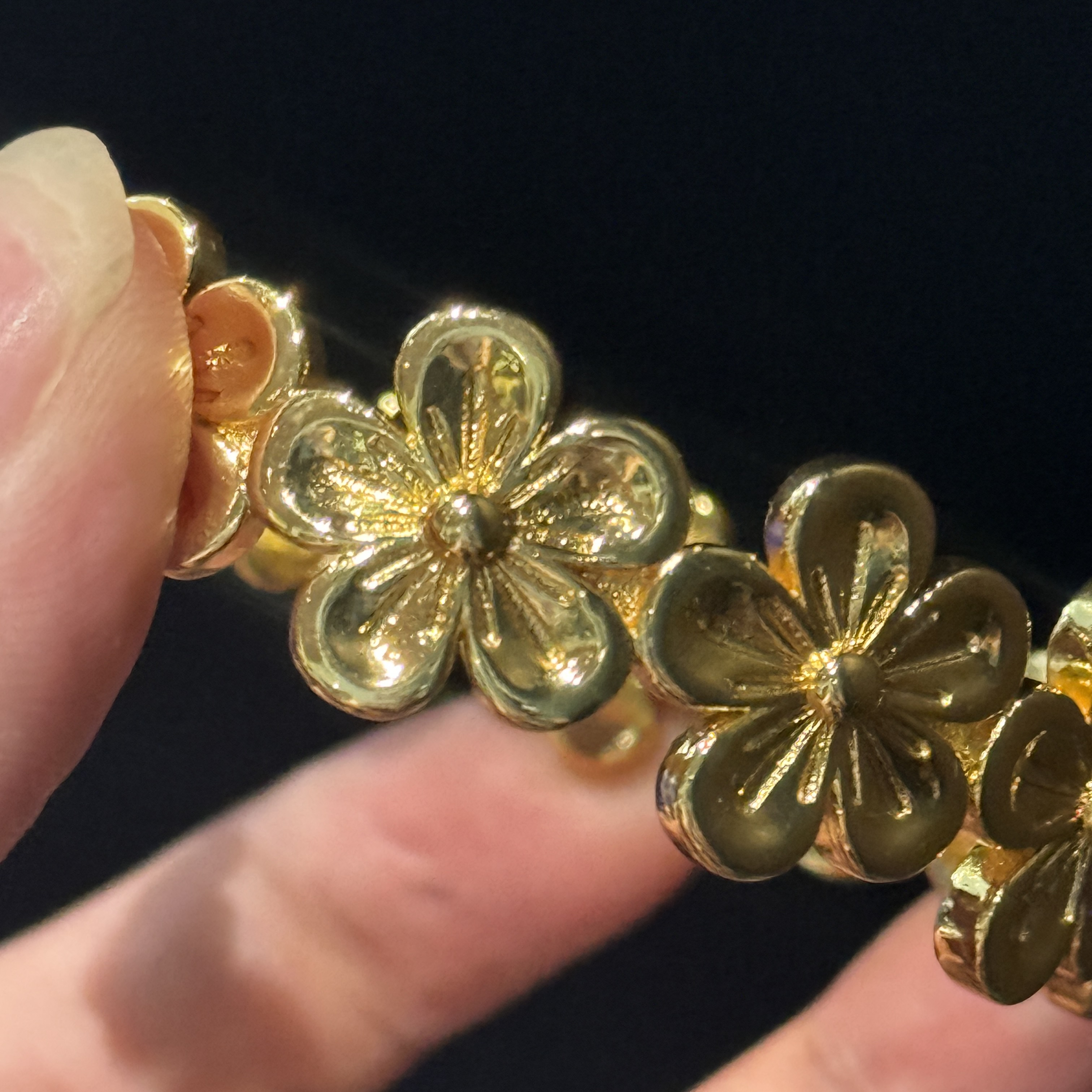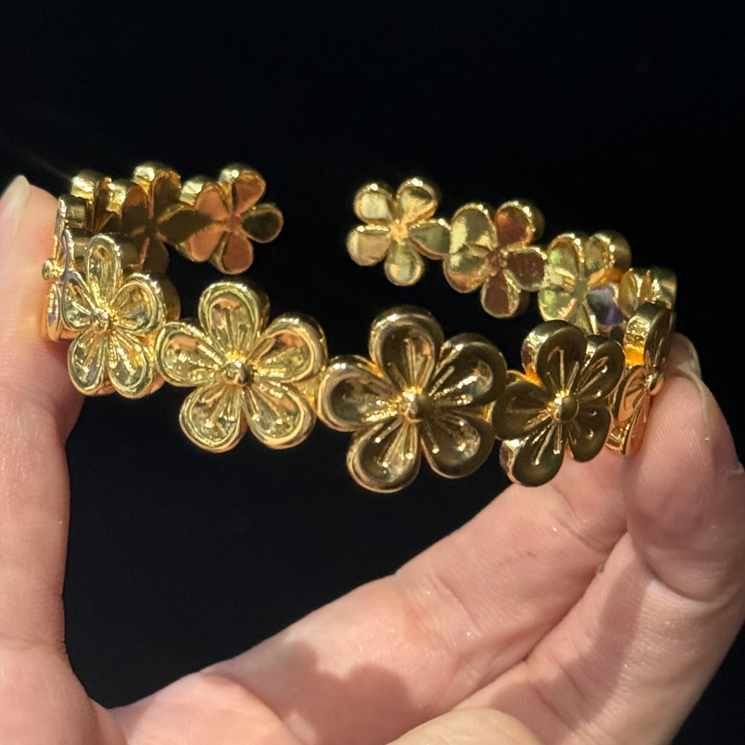 这款金色复古花朵手镯,简直让人一见倾心! 仿若花蕊般熠熠生辉,搭配金色镯圈,高级感瞬间爆棚! 无论是日常穿搭还是特殊场合,戴上它,立刻提升气场,让你成为众人瞩目的焦点。 它的设计灵感源自复古浪漫元素,小众而不失格调,适合各种手型的姐妹,因为它可以调节大小哦! 不用担心会因为尺寸问题而错过它,真正的百搭神器! 戴上它,不仅能让你的手指看起来更加纤细,还能瞬间提升整体气质,让你散发出独有的魅力。